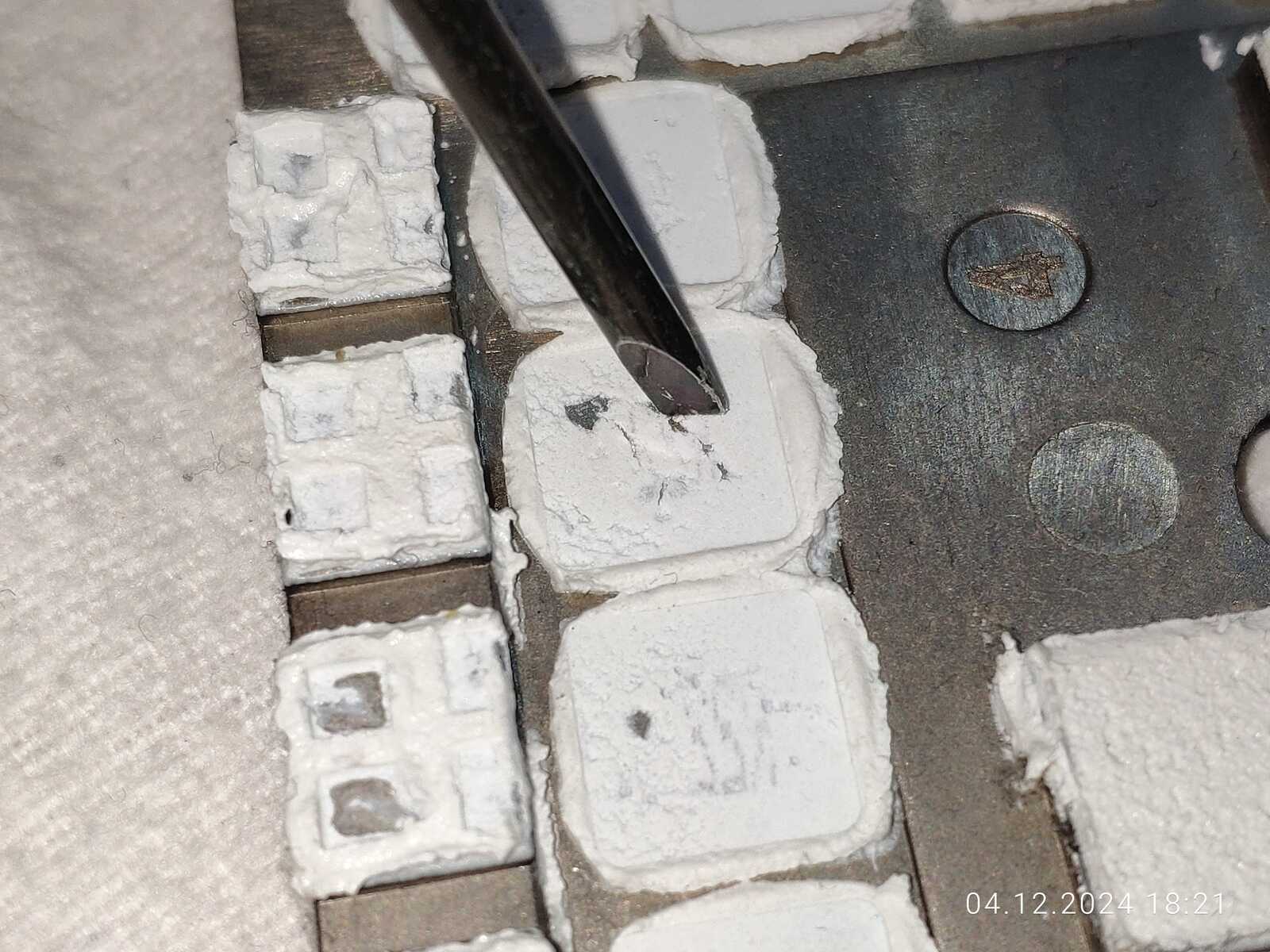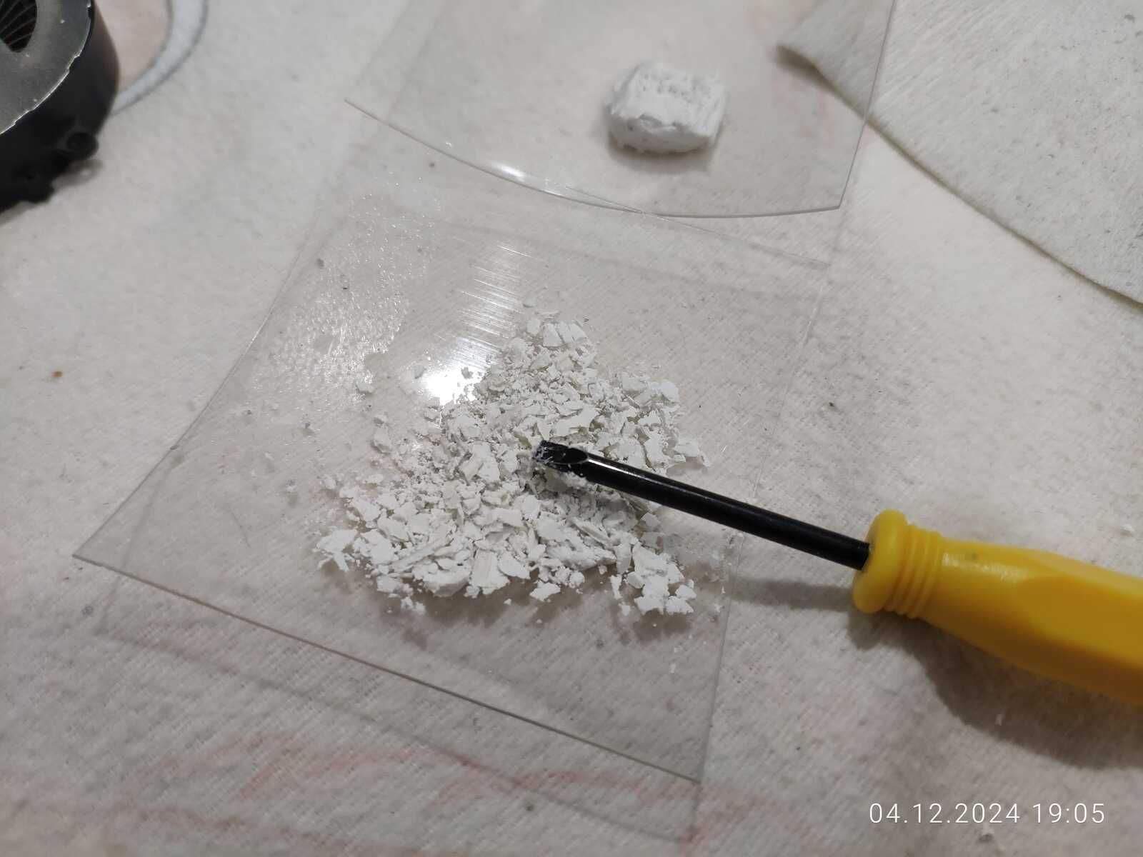 Остались только каменные отложения, их тоже было решено снять, хотя можно просто намазать свежей пасты и установить обратно систему охлаждения, но это слишком просто...