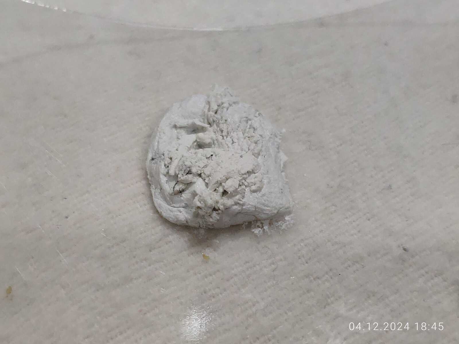 Соскребаю "прах" и смешиваю с относительно жидкой половиной.