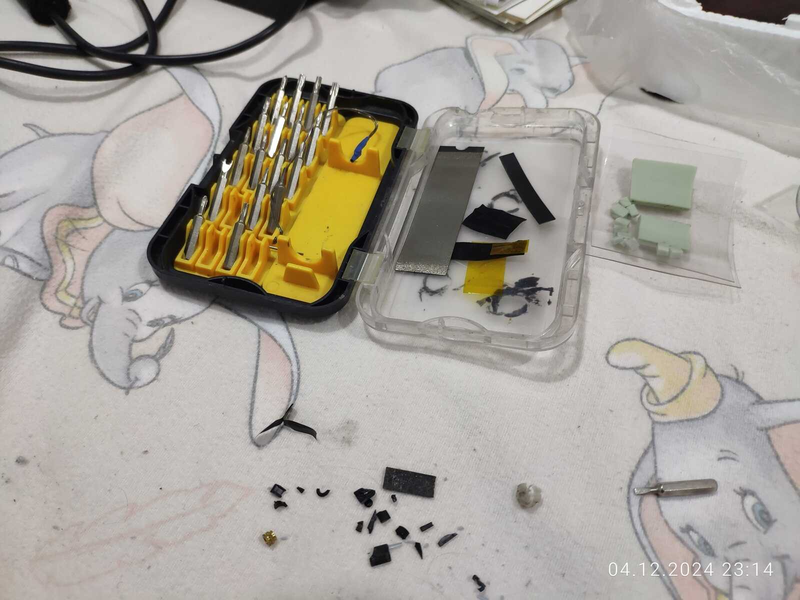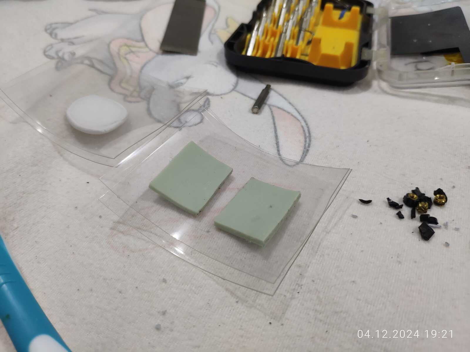 Так что меняю обычные прокладки на пластилиновые, и всё нормально собралось на этот раз, может пятно контакта с чипами памяти и не идеальное, но хотя бы без пещер, что были с завода...