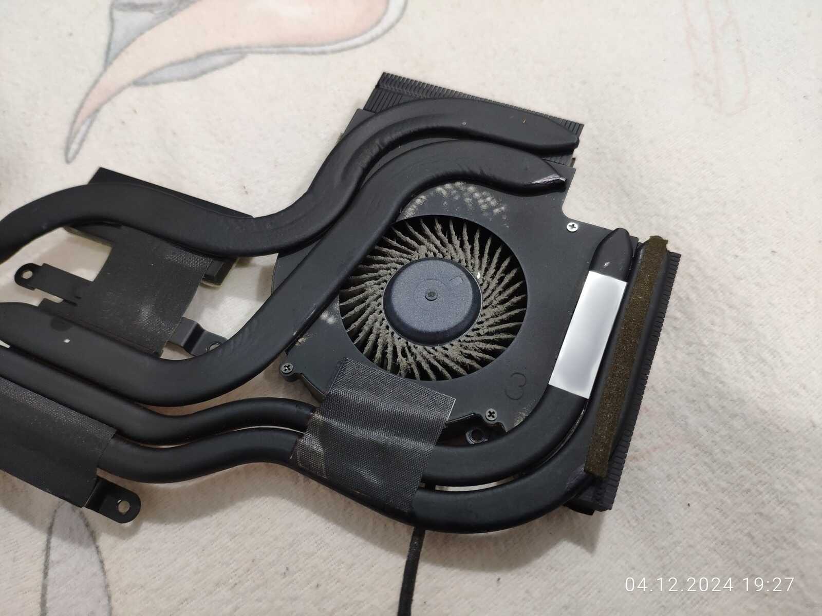 Тут сразу можно заметить, что основную работу по охлаждению выполняла только основная процессорная "турбина", на которую собственно идут практически все трубки охлаждения, а вторая, барахлящая турбина, выглядит не такой уж и засорённой, она отвечает за дополнительное охлаждение видеокарты.