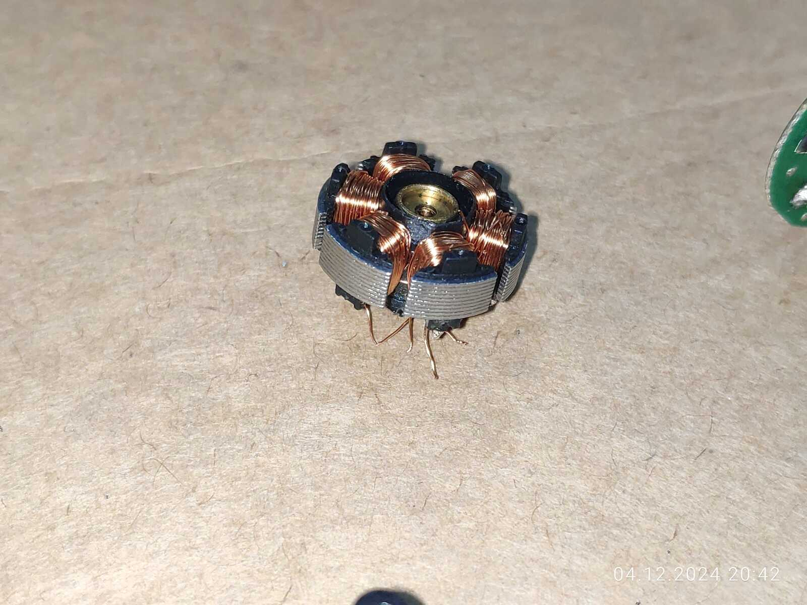 Но что-то пошло не так, и я просверлил обмотку двигателя, было уже всё равно, потому силой выдавил крыльчатку, правда погнул корпус, как собственно и ожидалось, теперь он извивается немного, что очень плохо конечно же, но уже без разницы так-то.