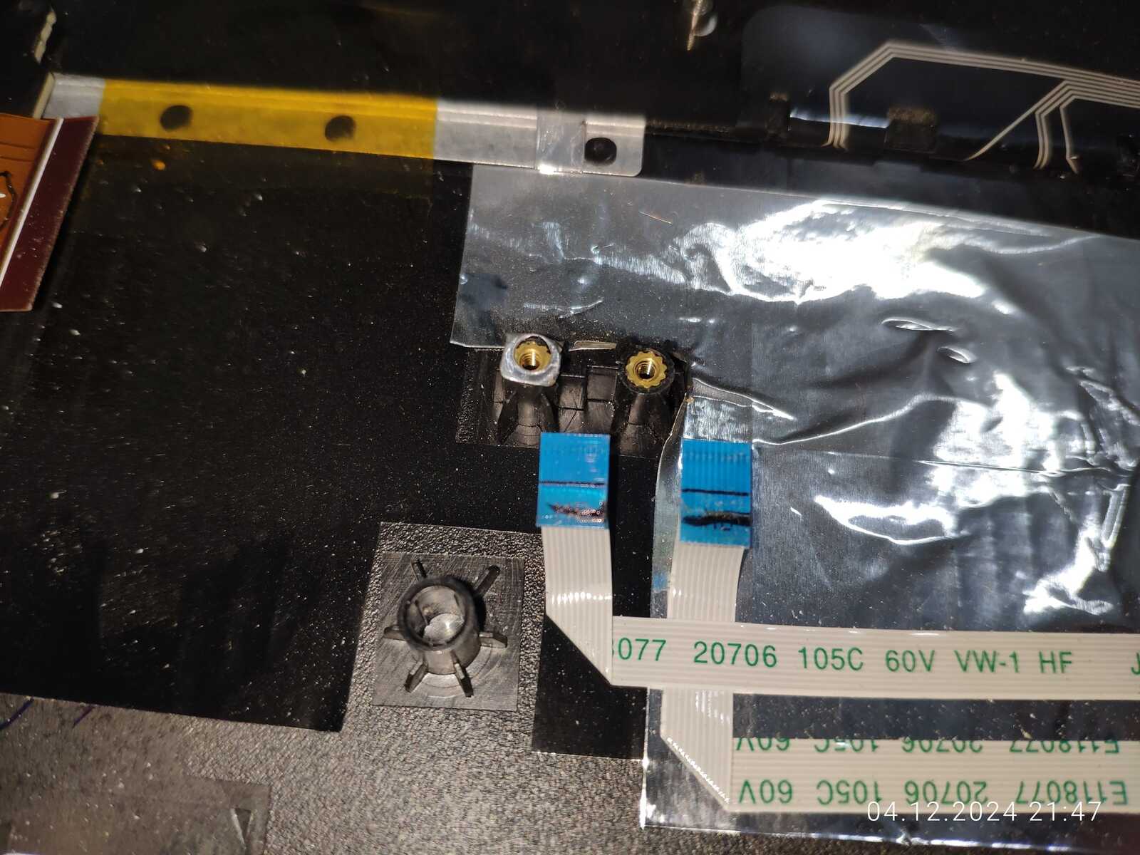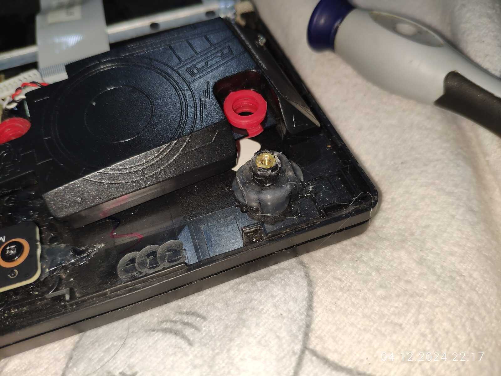 Одну втулку отремонтировать не удалось, там вообще всё рассыпалось, а втулку под динамиком конечно отремонтировал, но она возможно сломается спустя несколько разборок, но в этой зоне ничего страшного не произойдёт, даже если заклинит винт в этой втулке, и её вырвет.