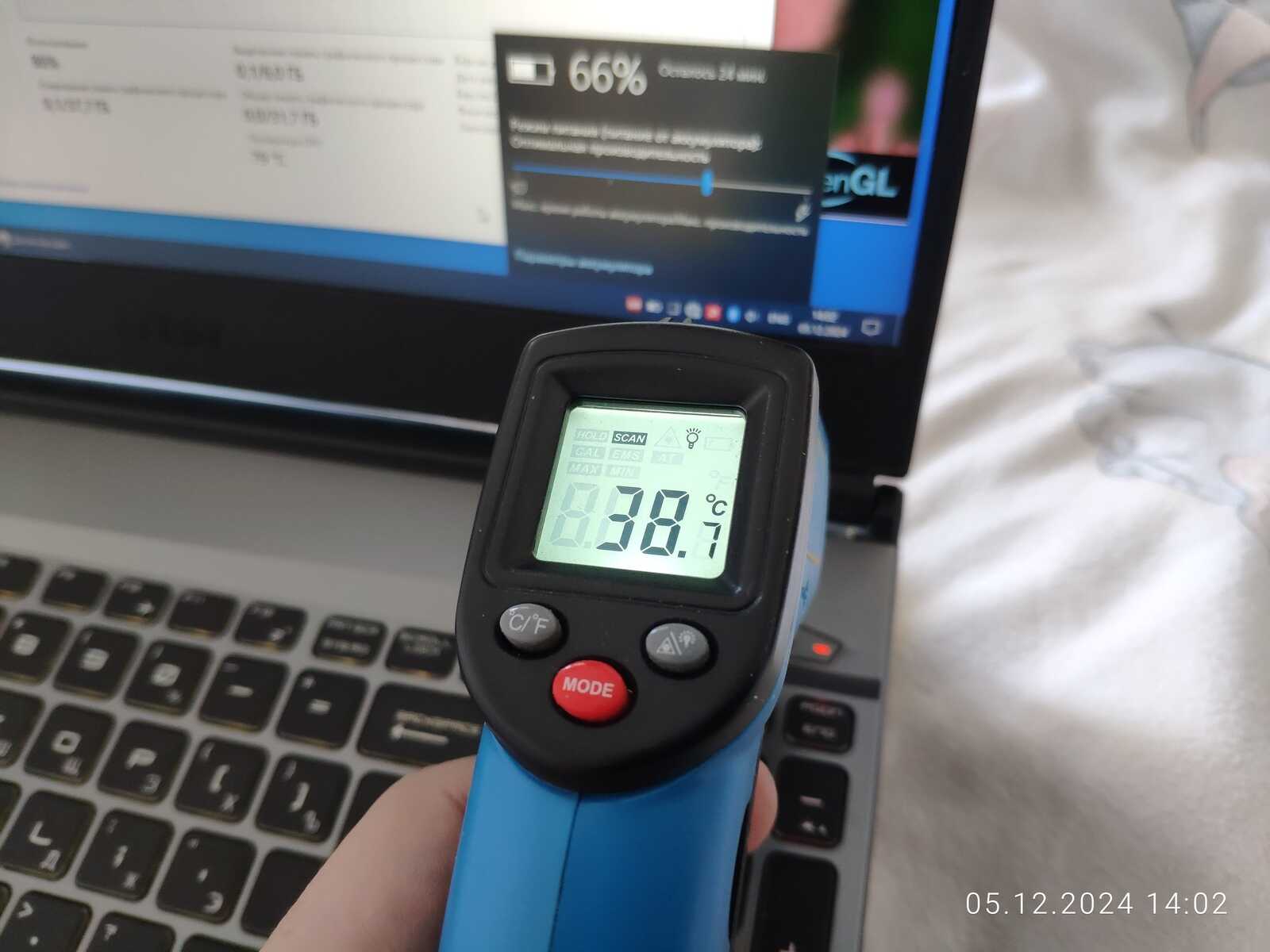 Расположен ноутбук не идеально, тем не менее - работает вполне стабильно, только температуру лучше смотреть через диспетчер задач Windows.