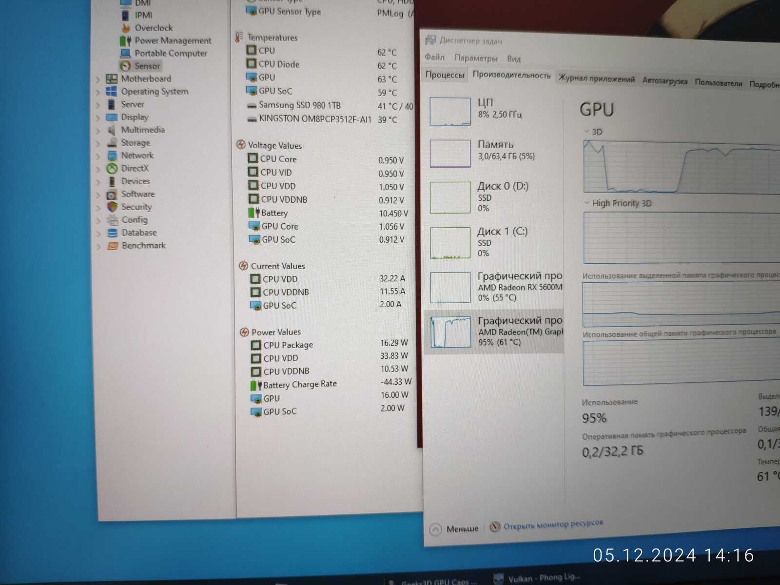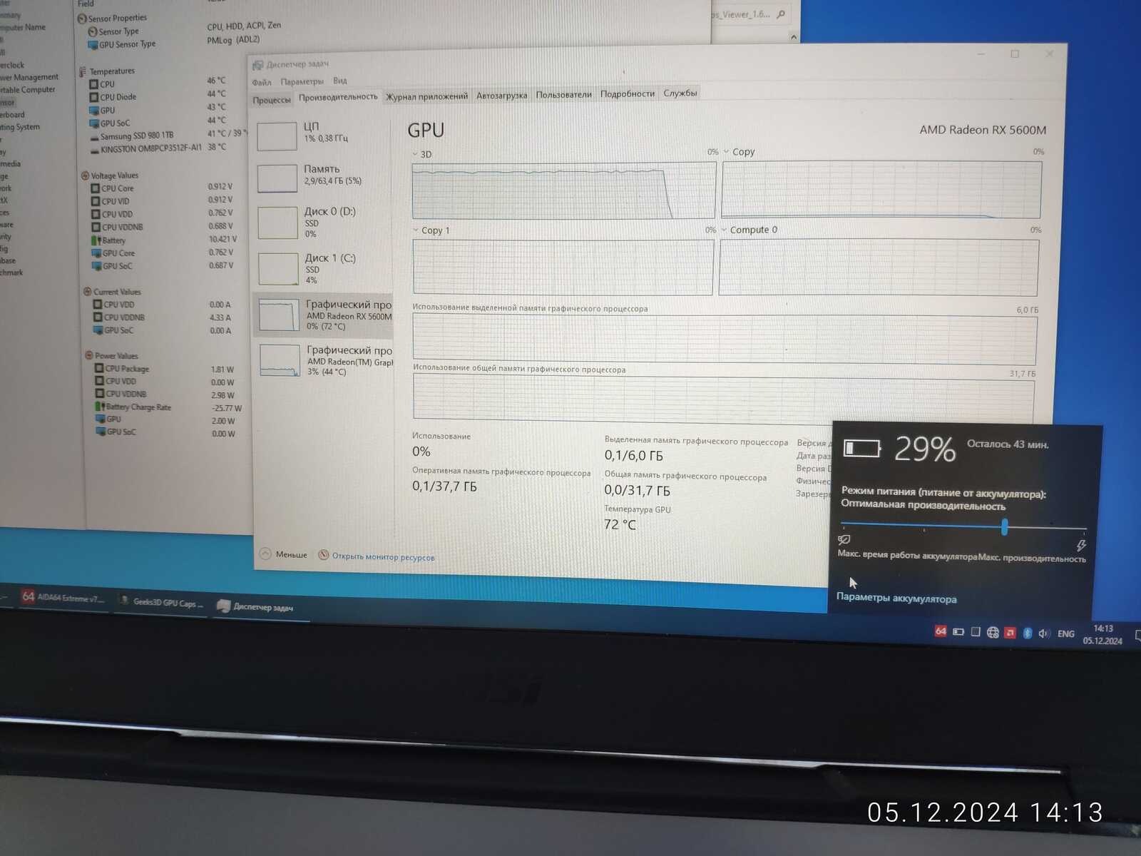 И да, в датчиках RX 5600M не отображается, но ничего удивительного, у AMD всегда были, есть и наверное будут проблемы с датчиками, это вам не NVIDIA.