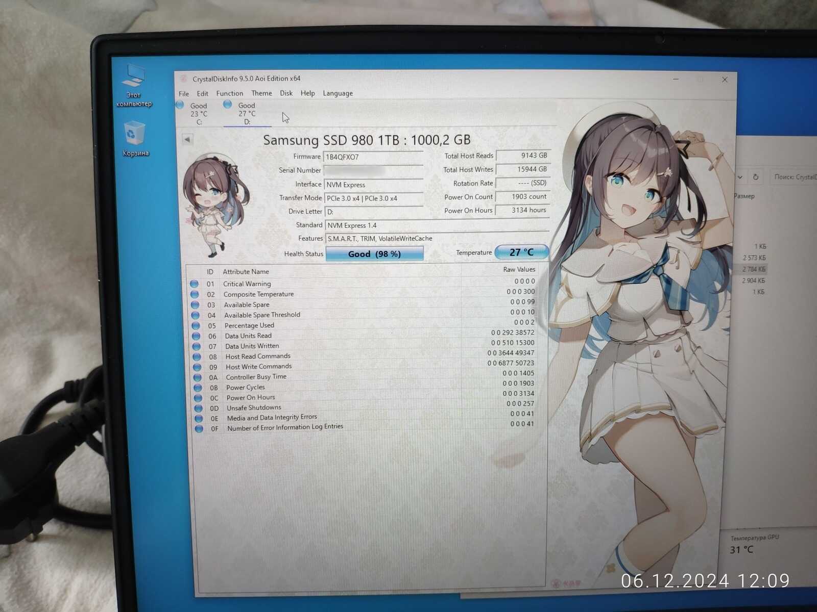 Ну короче, основной SSD от Kingston на 512 ГБ имеет ощутимый износ, всего 40 ТБ записей, а ресурса осталось 62%, думаю его следует заменить, ведь изношенные SSD довольно быстро теряют записанную информацию, хотя тут износ относительно небольшой, так что в качестве накопителя для операционной системы ещё сойдёт.
