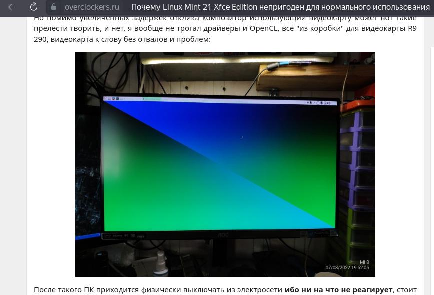 Раньше я думал, что это всё мракобесие с зависаниями внезапными с выводом артефактов происходит по вине композитора, но сейчас то понимаю, что это драйверы AMD в линуксах просто мусор...