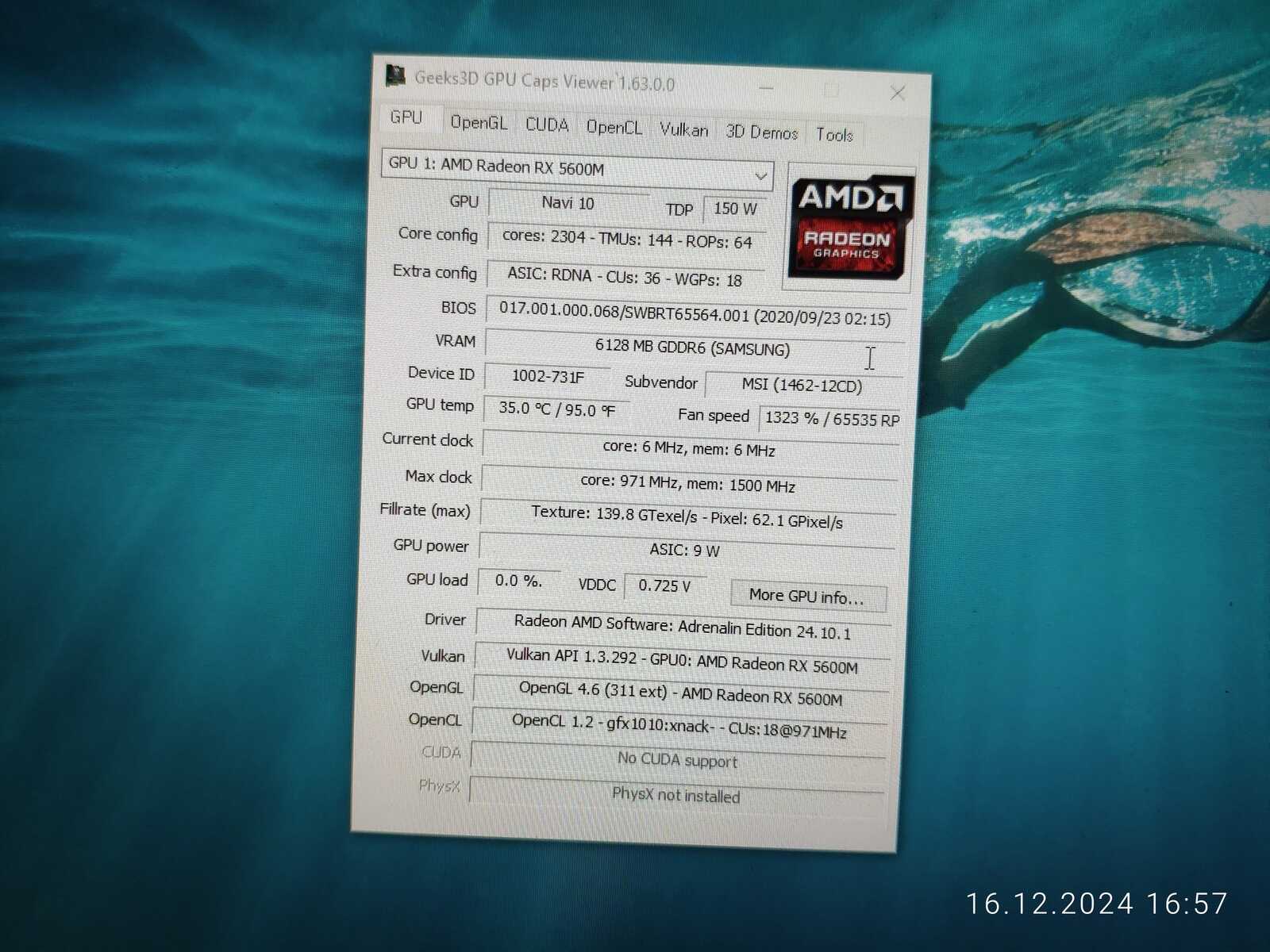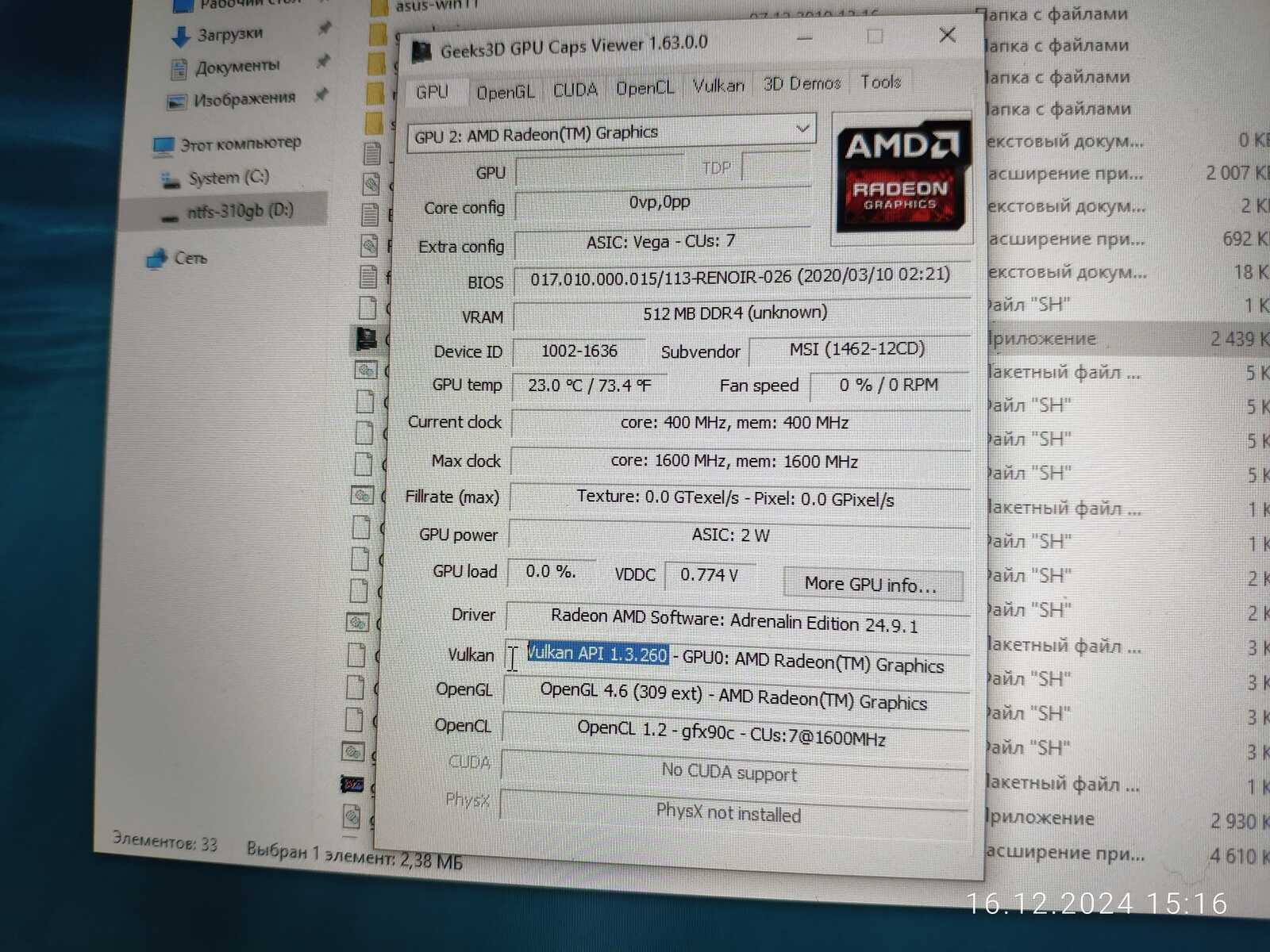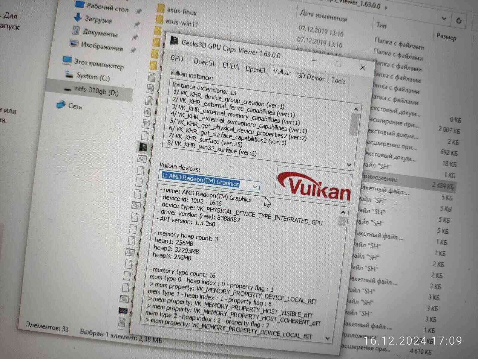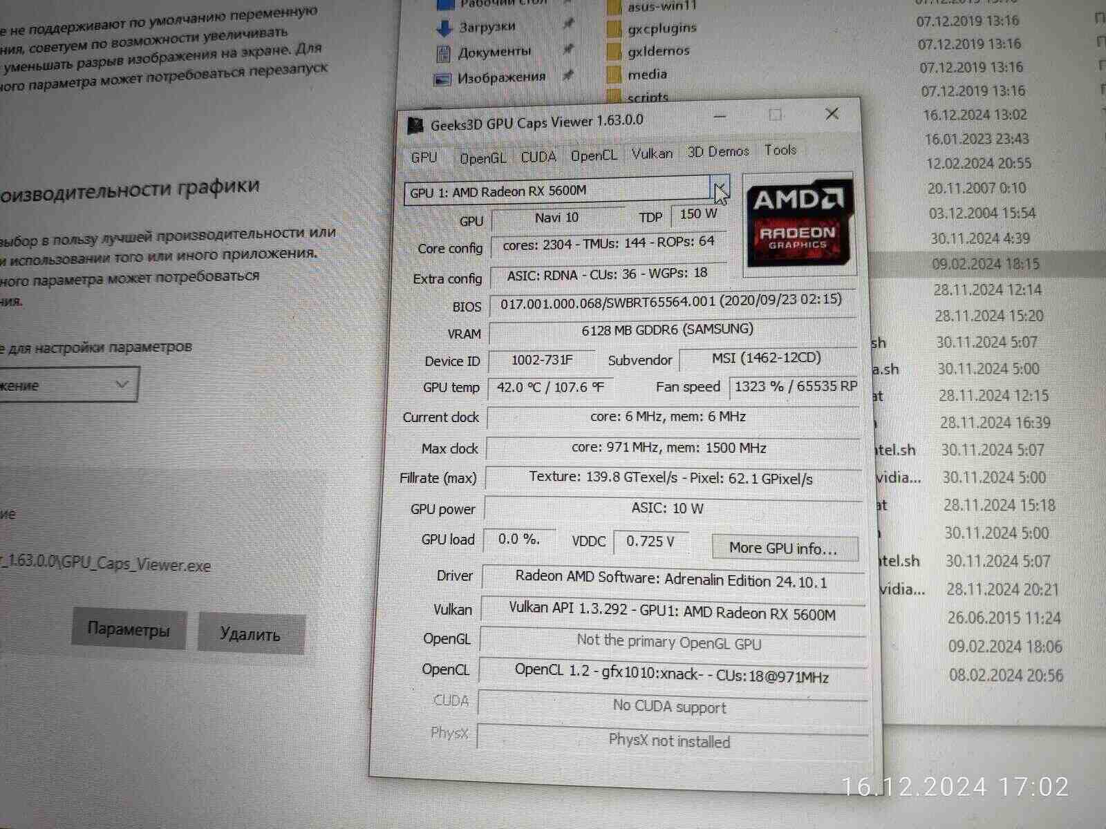 Обратите внимание на Vulkan API 1.3.260, при выборе Vega показывает драйвер 24.9.1, и 24.10.1 при выборе RX 5600M, то есть драйвер конца 2024 года, а Vulkan середины 2023 года...
