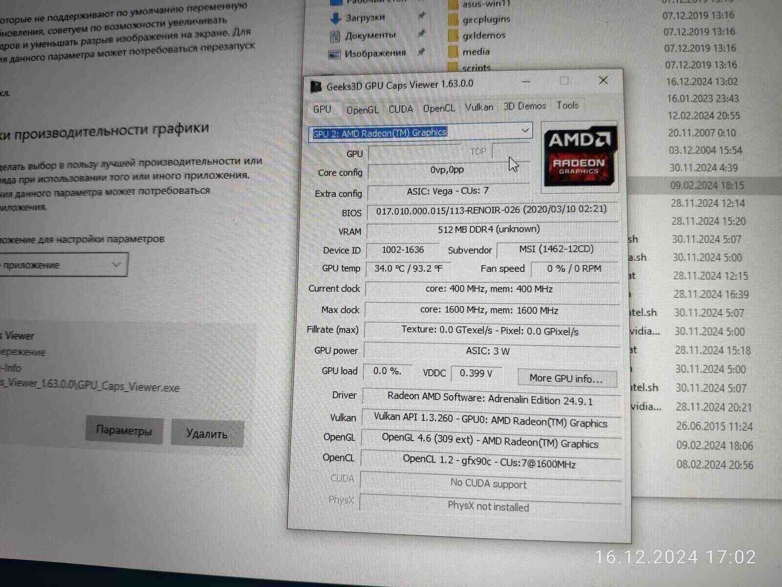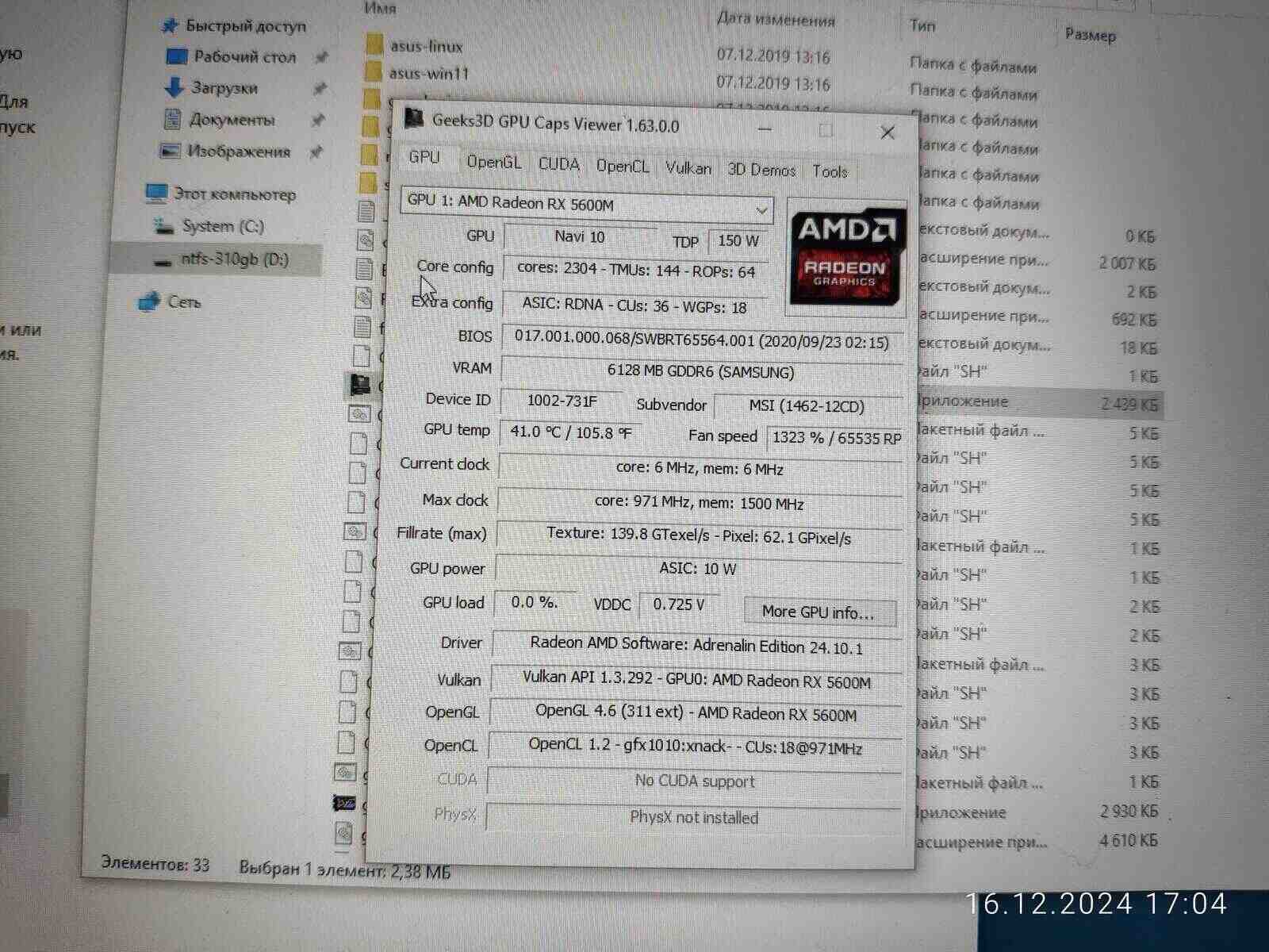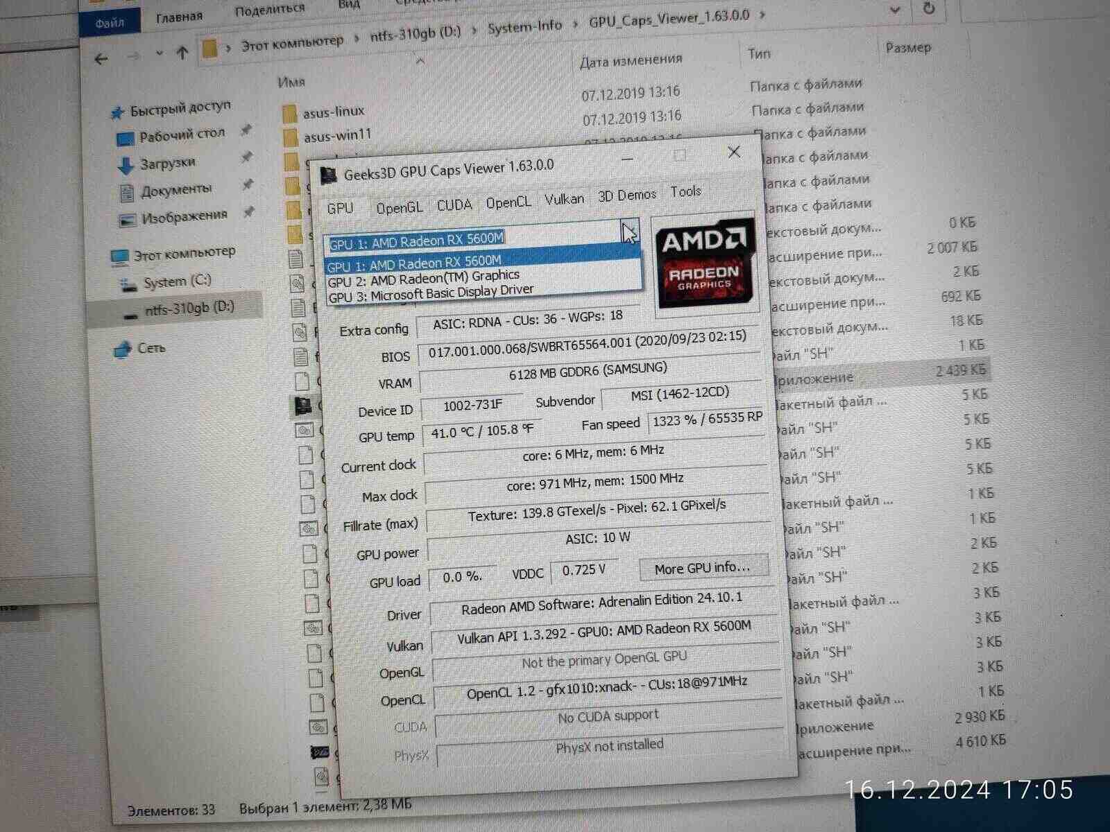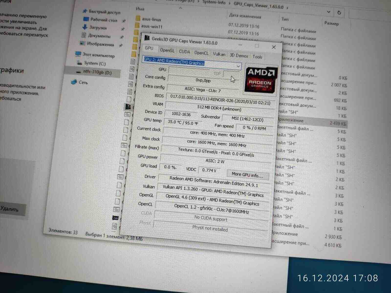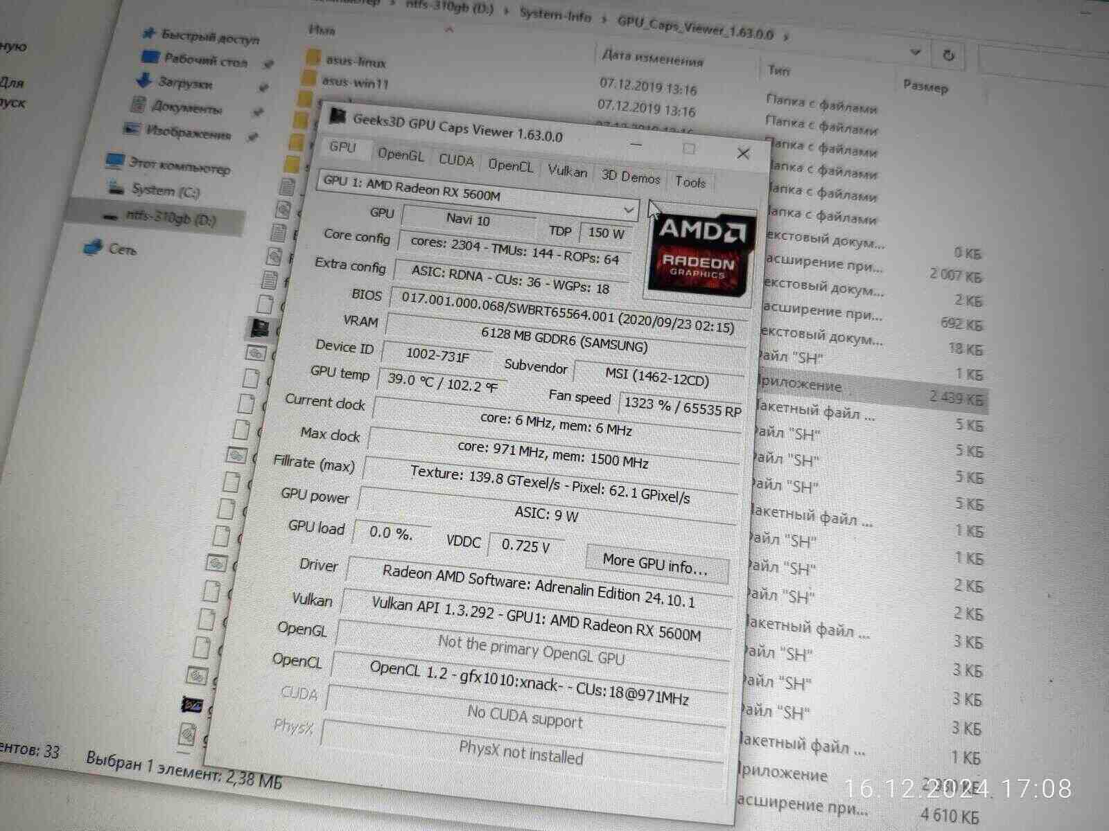 Обратите внимание на Vulkan API 1.3.260, при выборе Vega показывает драйвер 24.9.1, и 24.10.1 при выборе RX 5600M, то есть драйвер конца 2024 года, а Vulkan середины 2023 года...