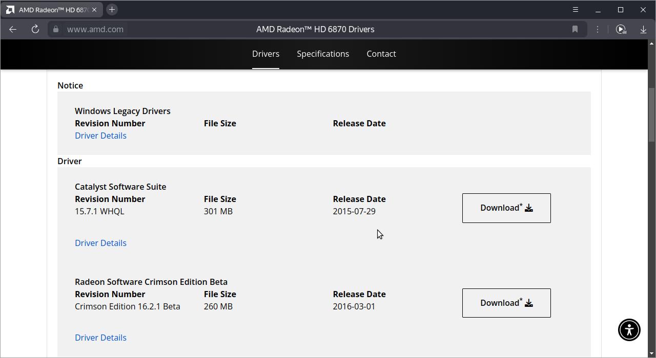 Вот у меня была как-то видеокарта Radeon HD 6870, это серия сопоставима с GeForce 400 (2010 год выпуска), только в отличие от NVIDIA, "красную" поделку поддерживали до 2015 года.