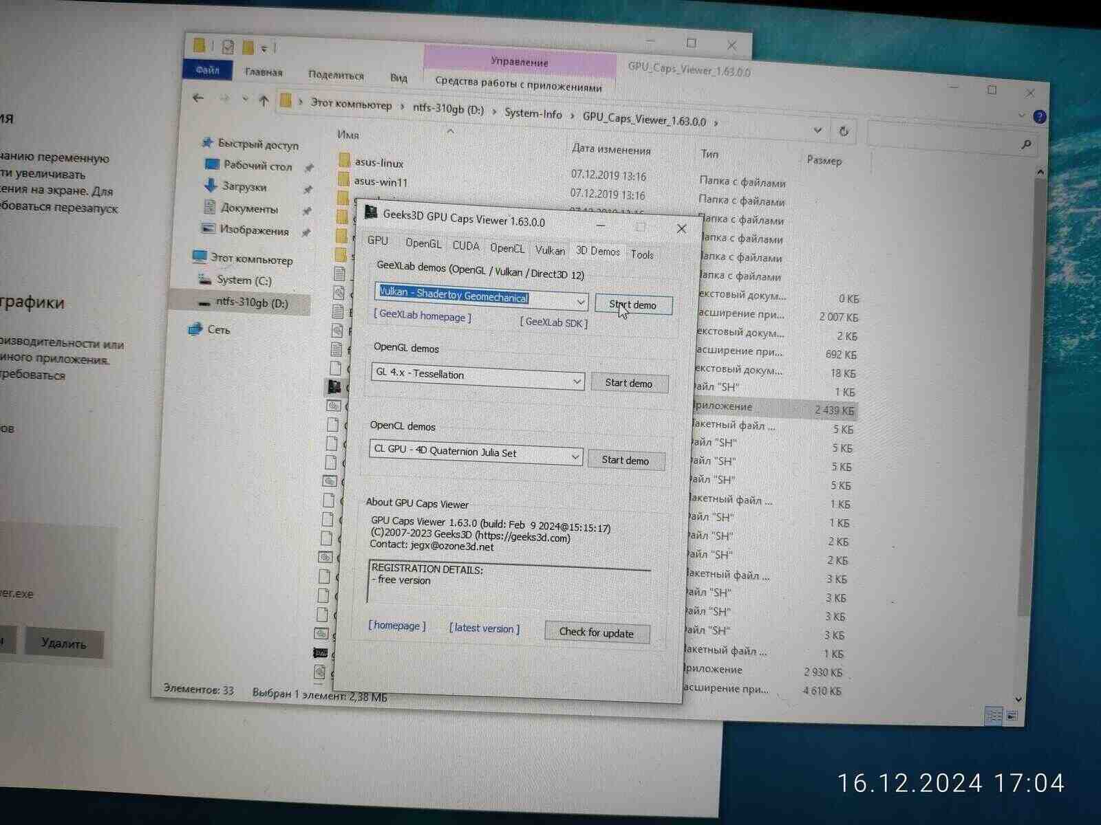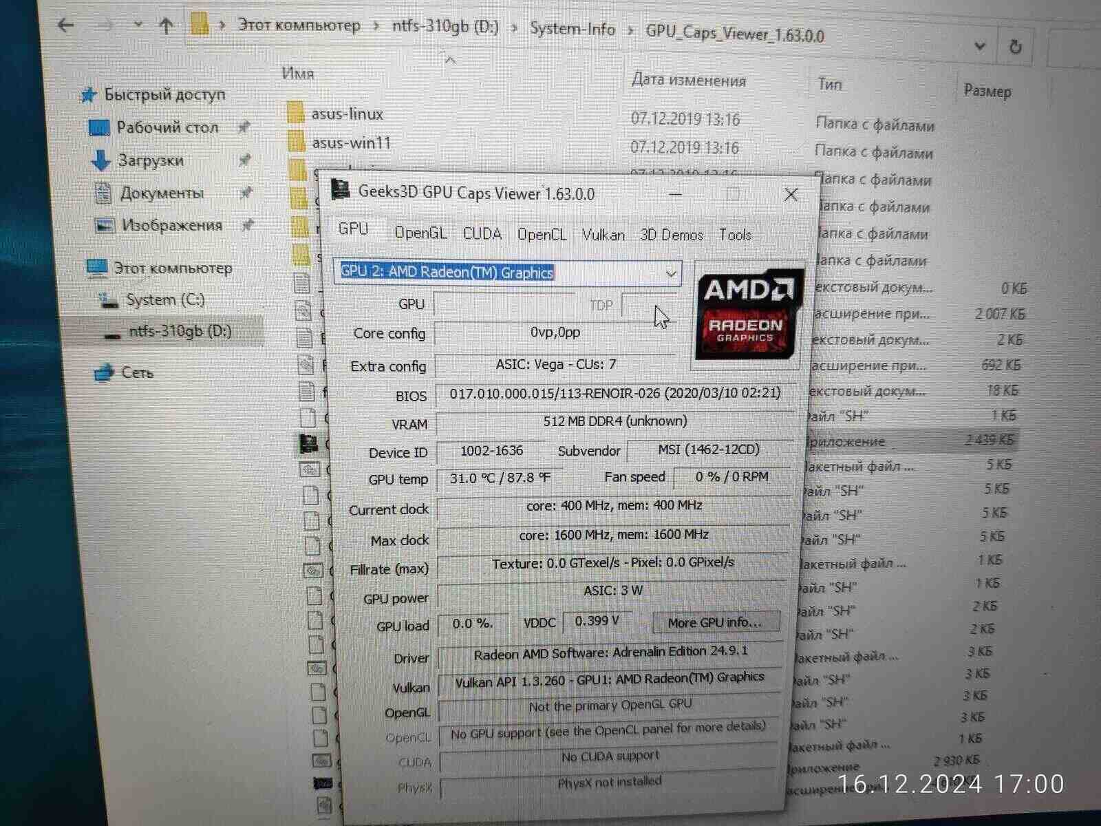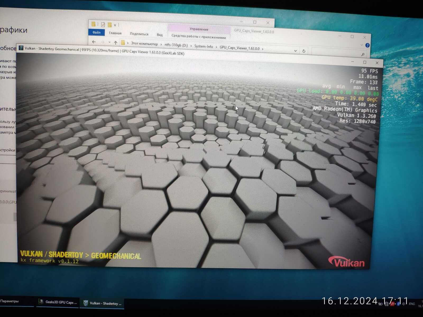 Есть конечно некоторые артефакты в тесте Vulkan, но в целом работает выбранный ГП.