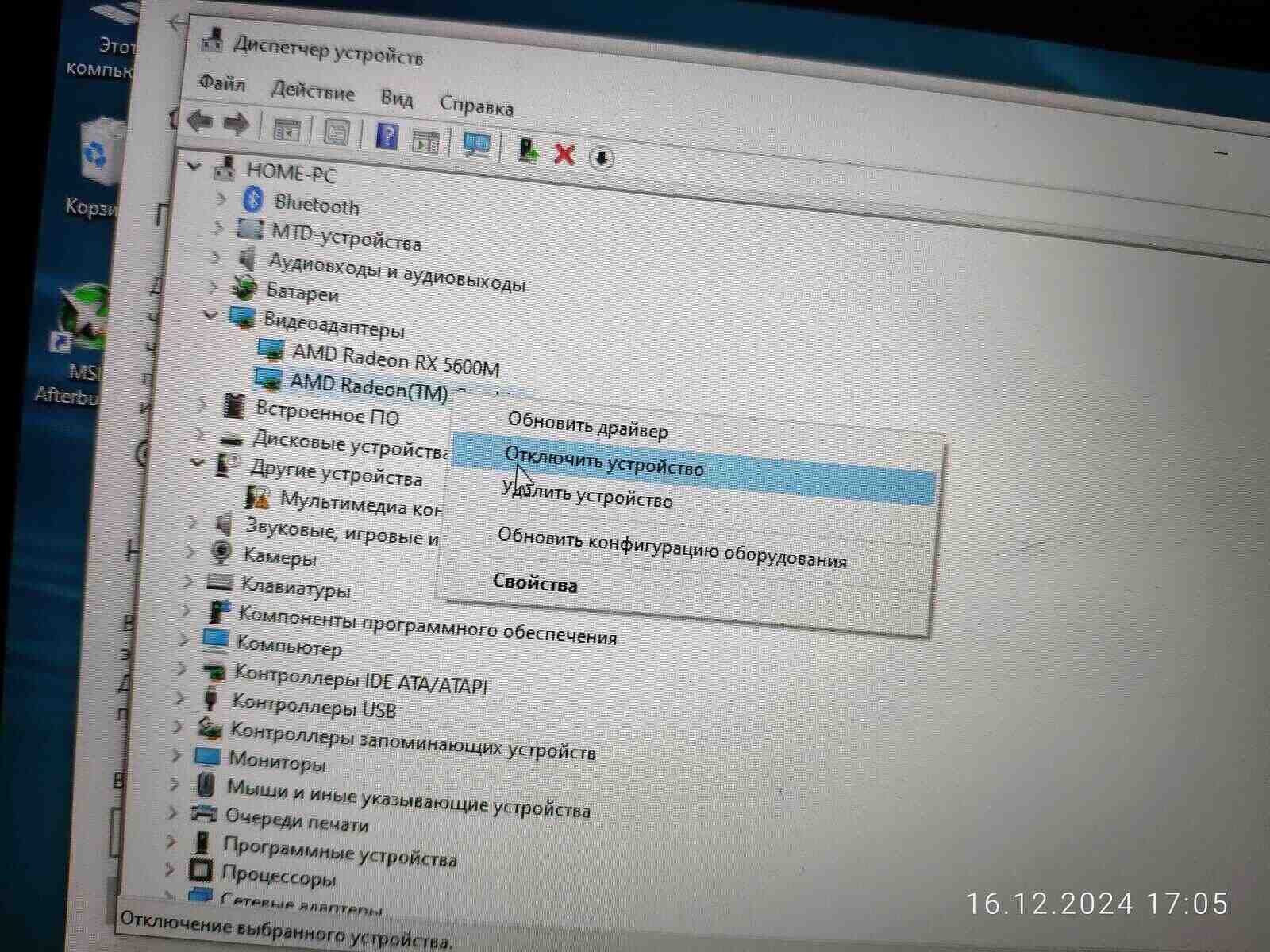 Если же принудительно отключить Radeon Vega через диспетчер устройств, то Vulkan наконец начинает работать с дискретной 5600M, однако это приводит к отвалу OpenGL драйвера и падению приложения при попытке задействовать это API...