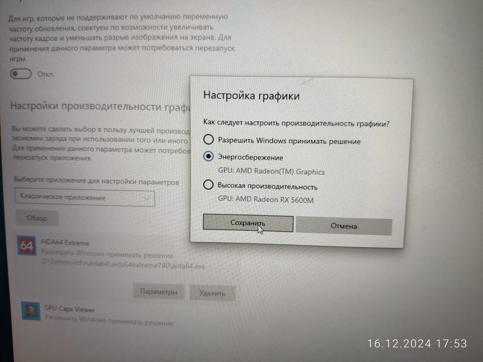 Теперь выбрана по умолчанию именно встроенная графика, как мне и нужно.