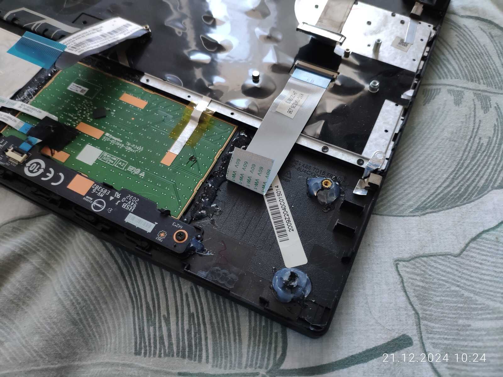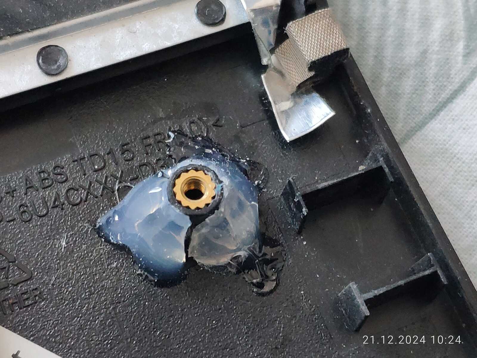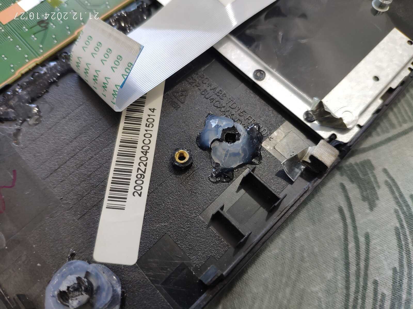 На удивление, тачпад крепко сидит на своём месте, а значит хорошо я его закрепил в прошлый раз, и не зря намазал клея даже там, где он ещё не отвалился, ибо при последнем падении он точно отвалился бы, учитывая насколько сильно рвало втулки, что аж довольно вязкий горячий клей порвало, нужно будет дополнительно усилить такие места...