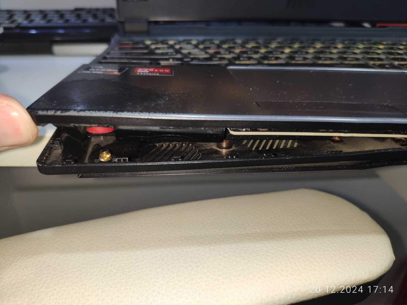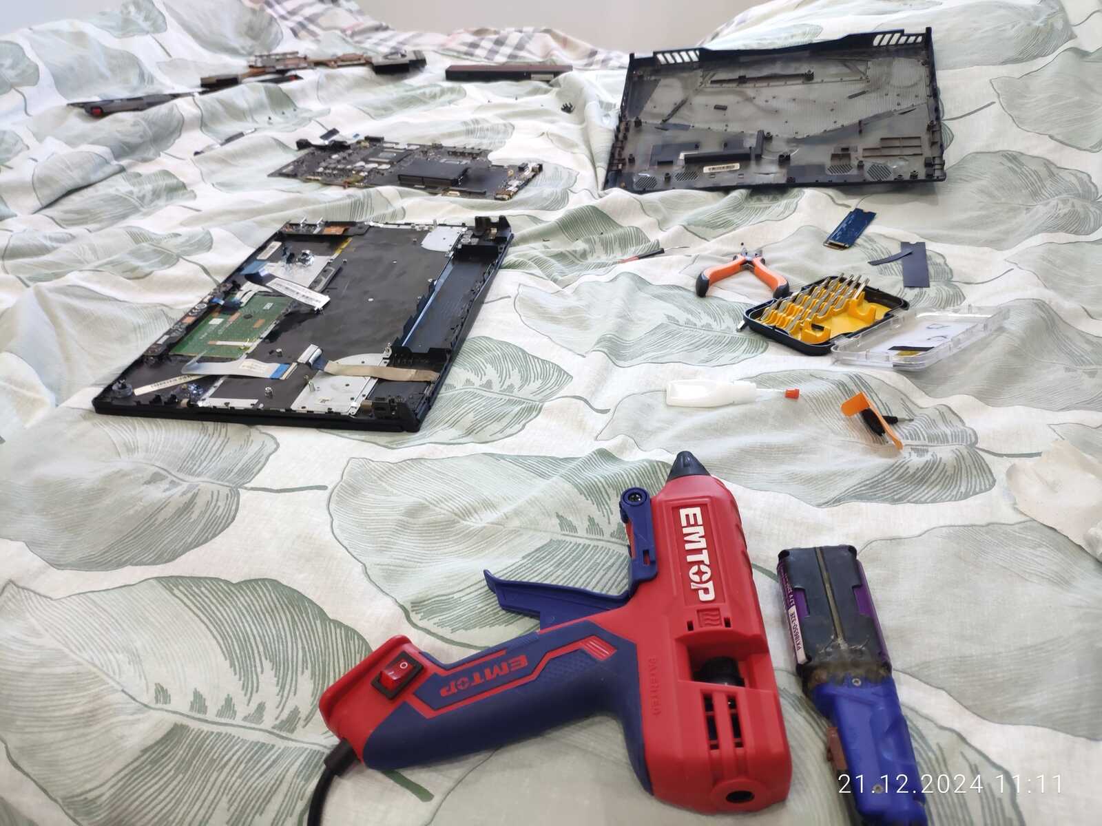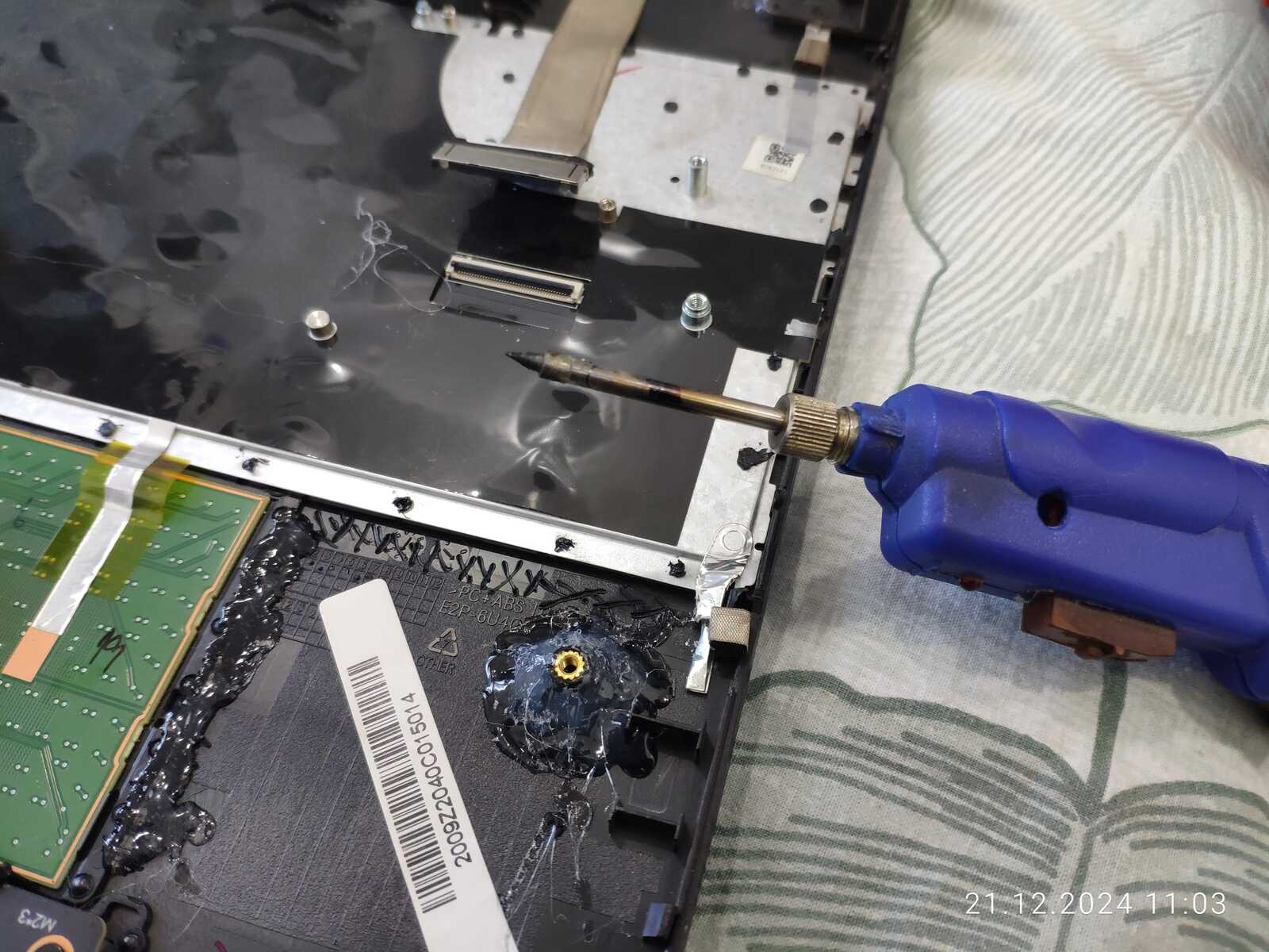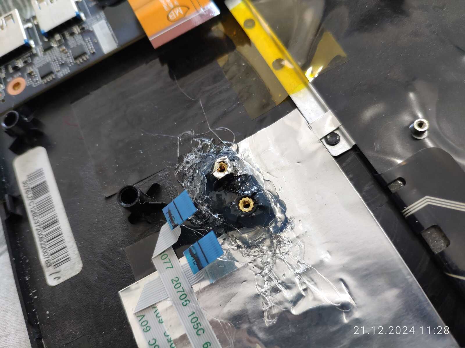 На удивление, тачпад крепко сидит на своём месте, а значит хорошо я его закрепил в прошлый раз, и не зря намазал клея даже там, где он ещё не отвалился, ибо при последнем падении он точно отвалился бы, учитывая насколько сильно рвало втулки, что аж довольно вязкий горячий клей порвало, нужно будет дополнительно усилить такие места...