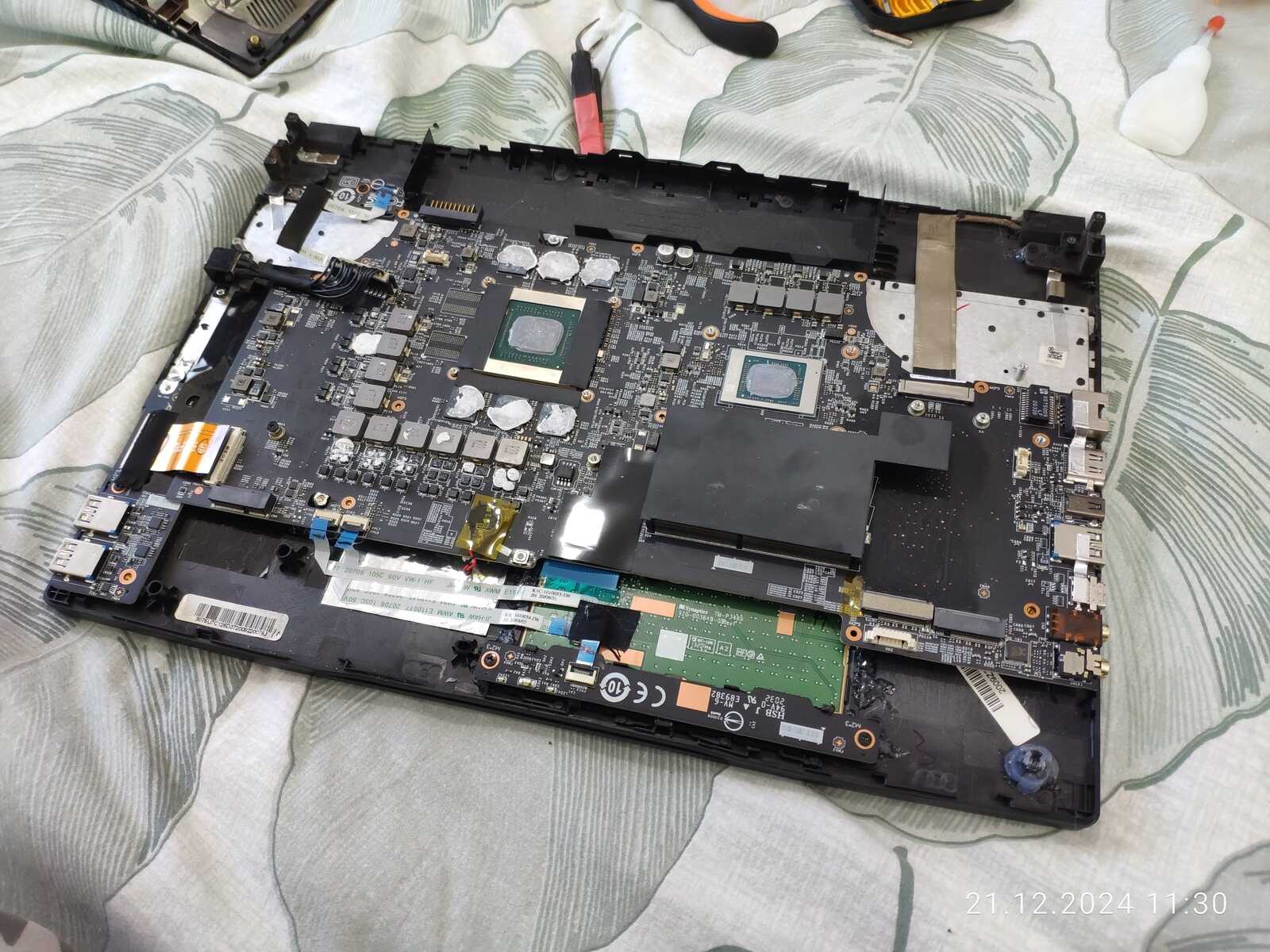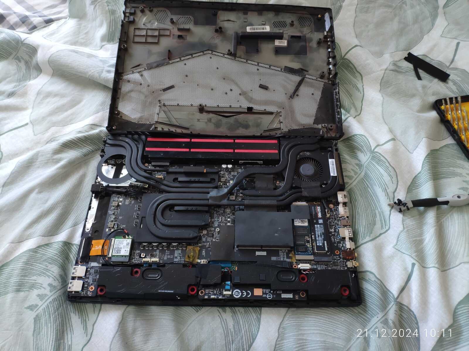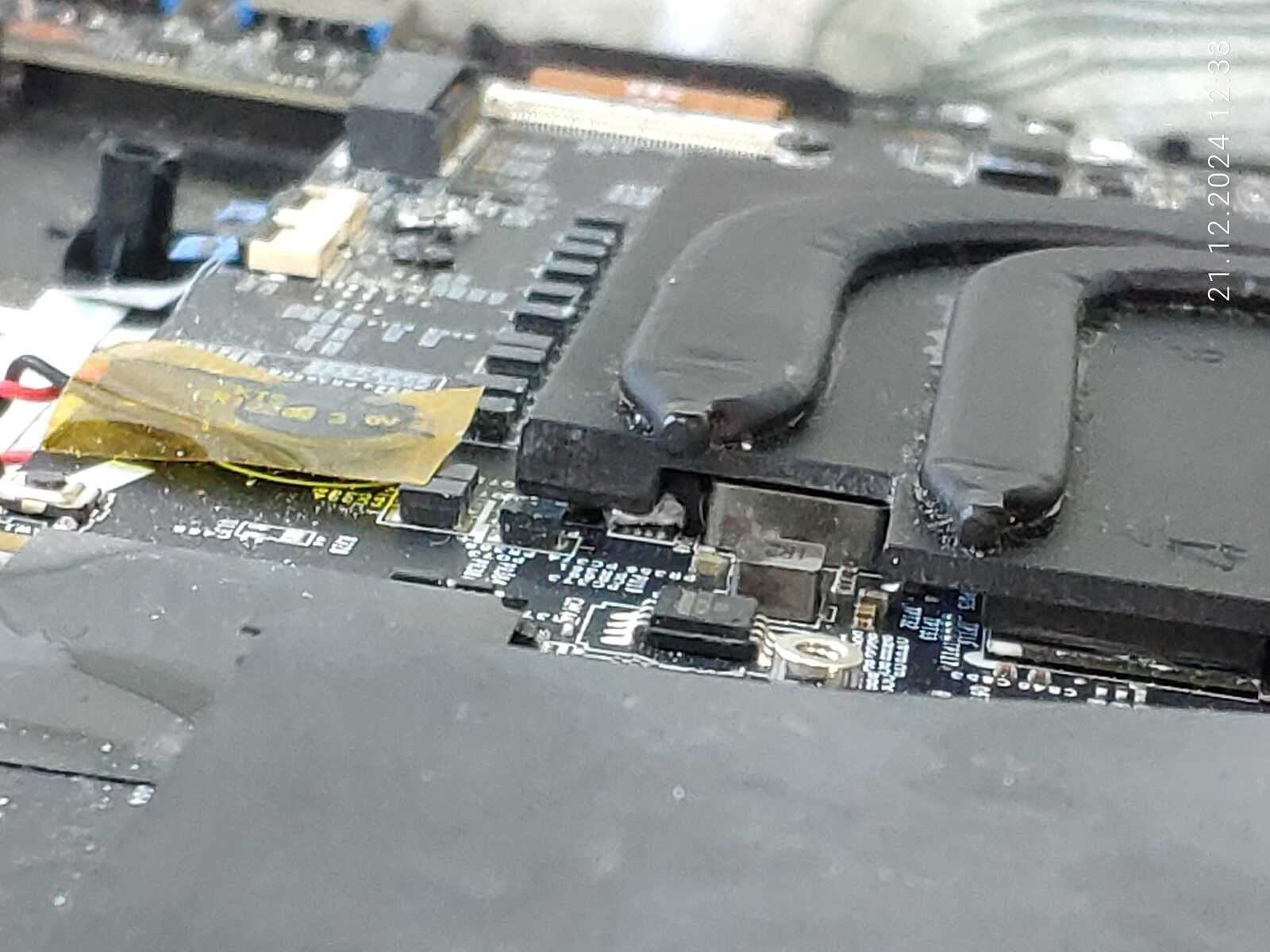 Везде валяются кусочки пластика, даже под радиатором один нашёлся, и даже внутри турбины системы охлаждения, куски пластика буквально по всему ноутбуку рассыпались, но больше всего меня напрягали "жидкие" прокладки, было ошибкой их повторно использовать в том виде, в котором они были после предыдущей разборки.