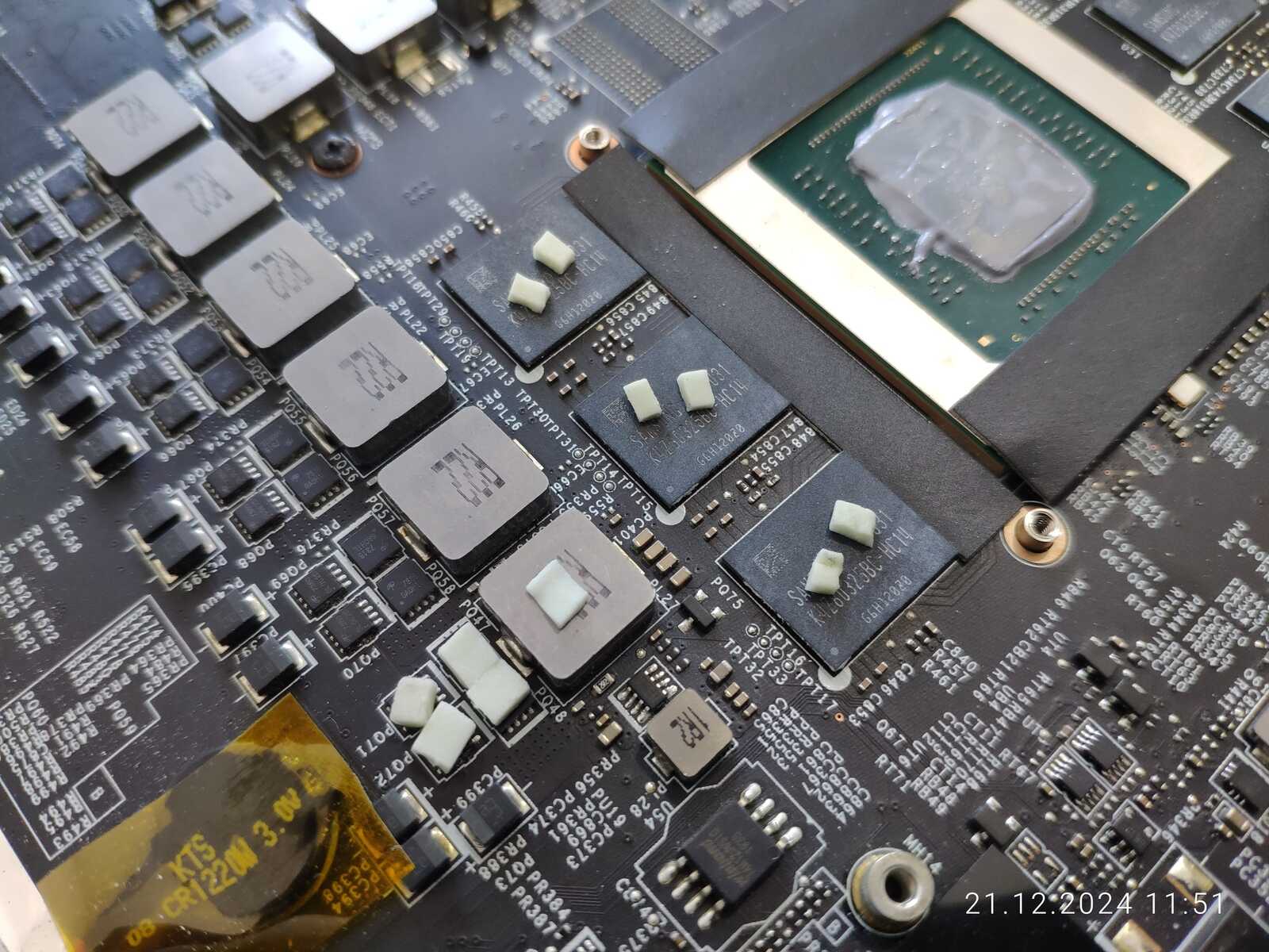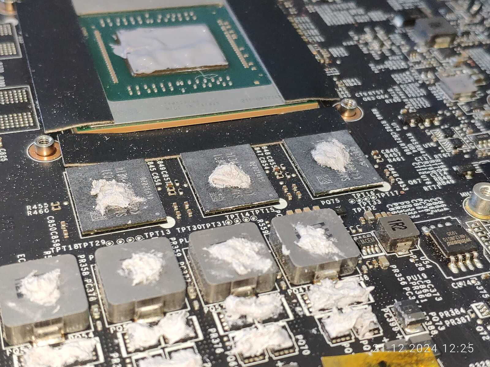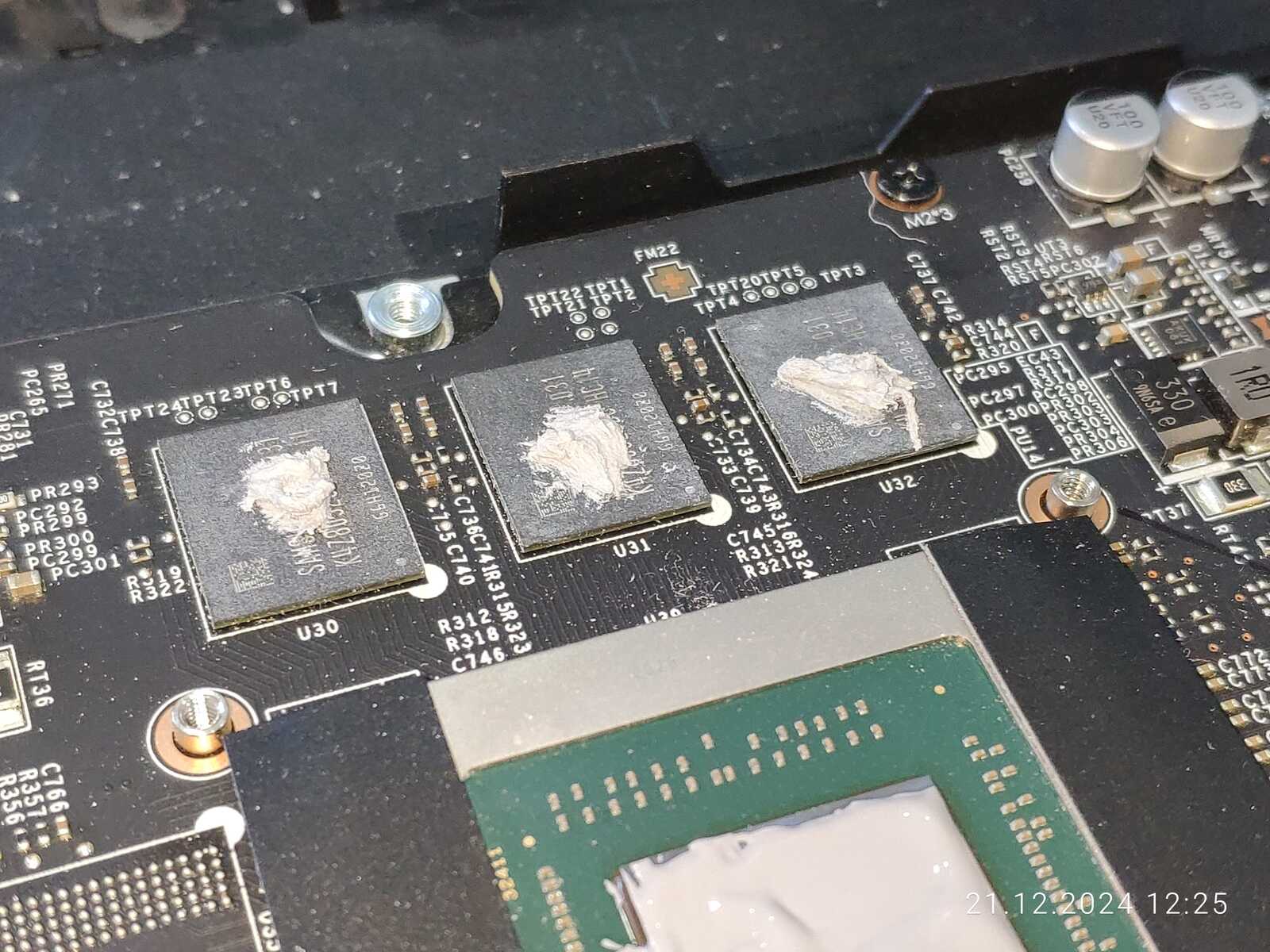 Проверяю все зазоры, так же не использованные прокладки обратно подкладываю под SSD, они конечно потекут со временем, ну да ладно, а вот на память видеокарты можно было и больше намазать, но в целом сойдёт.