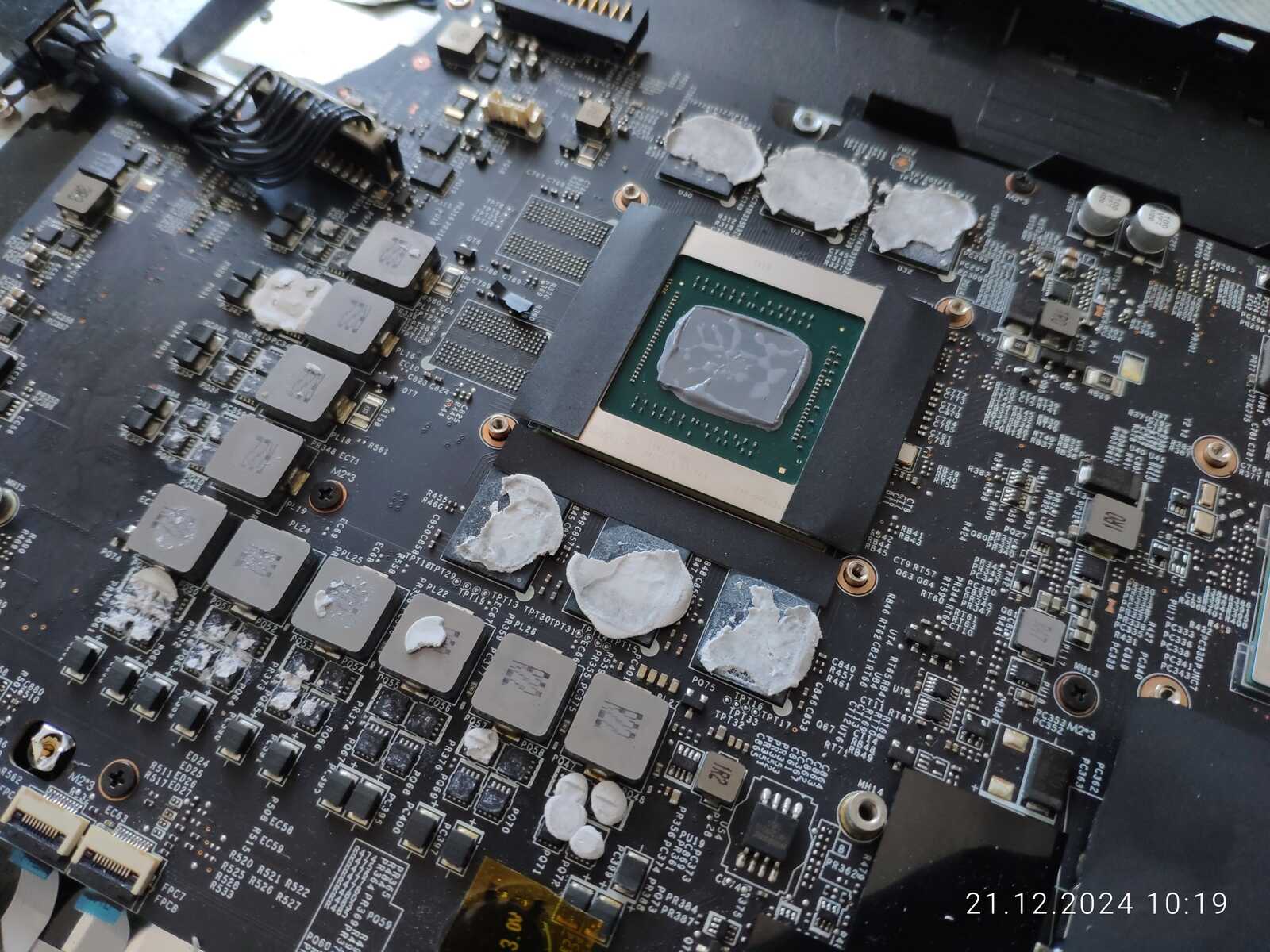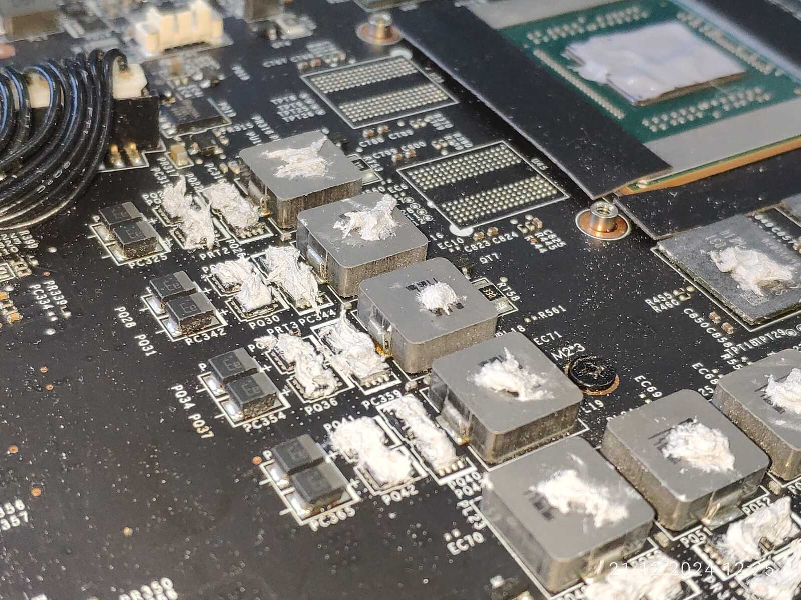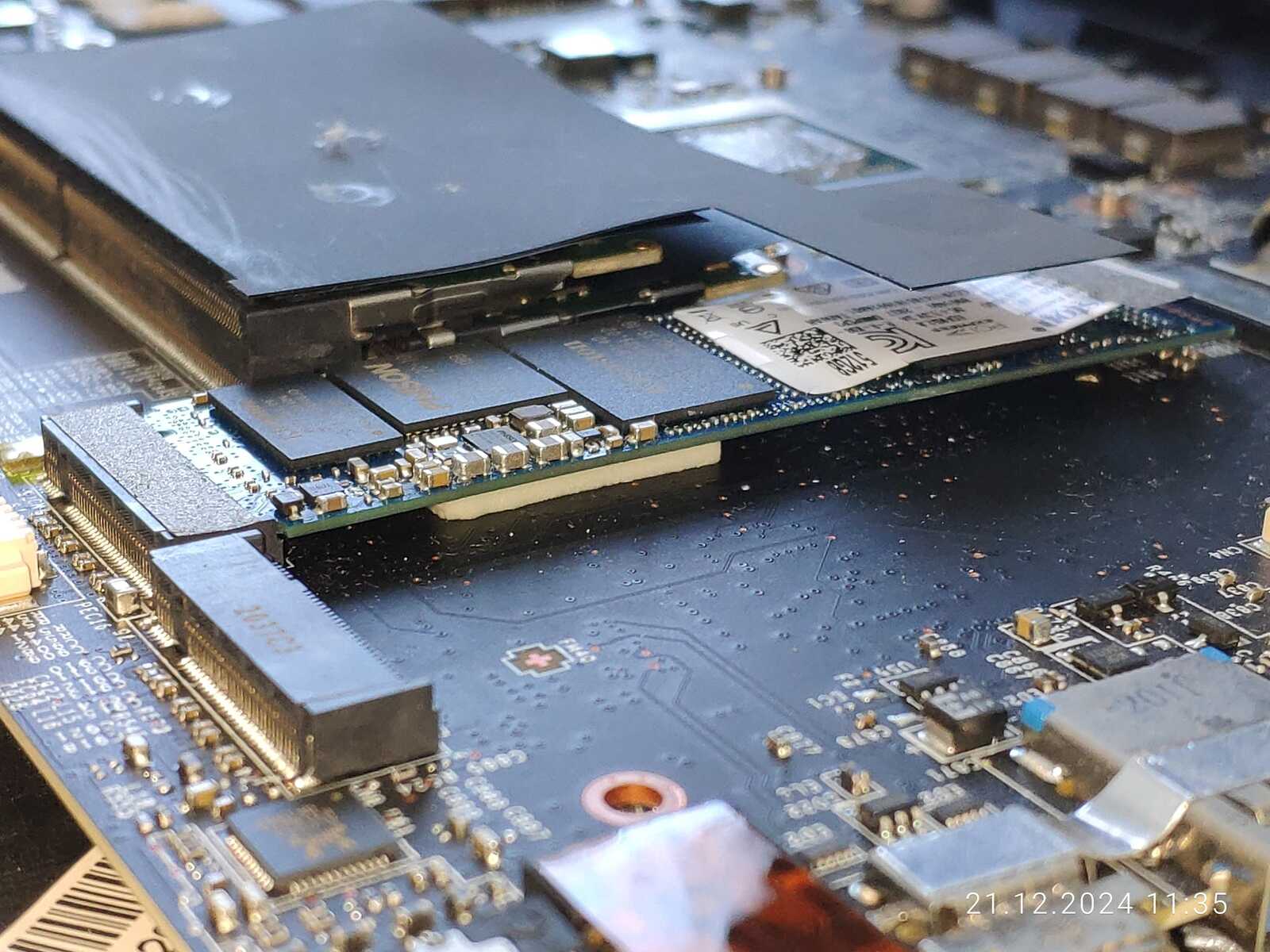 Проверяю все зазоры, так же не использованные прокладки обратно подкладываю под SSD, они конечно потекут со временем, ну да ладно, а вот на память видеокарты можно было и больше намазать, но в целом сойдёт.