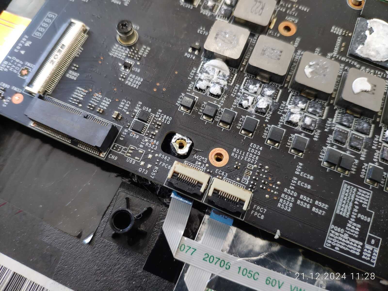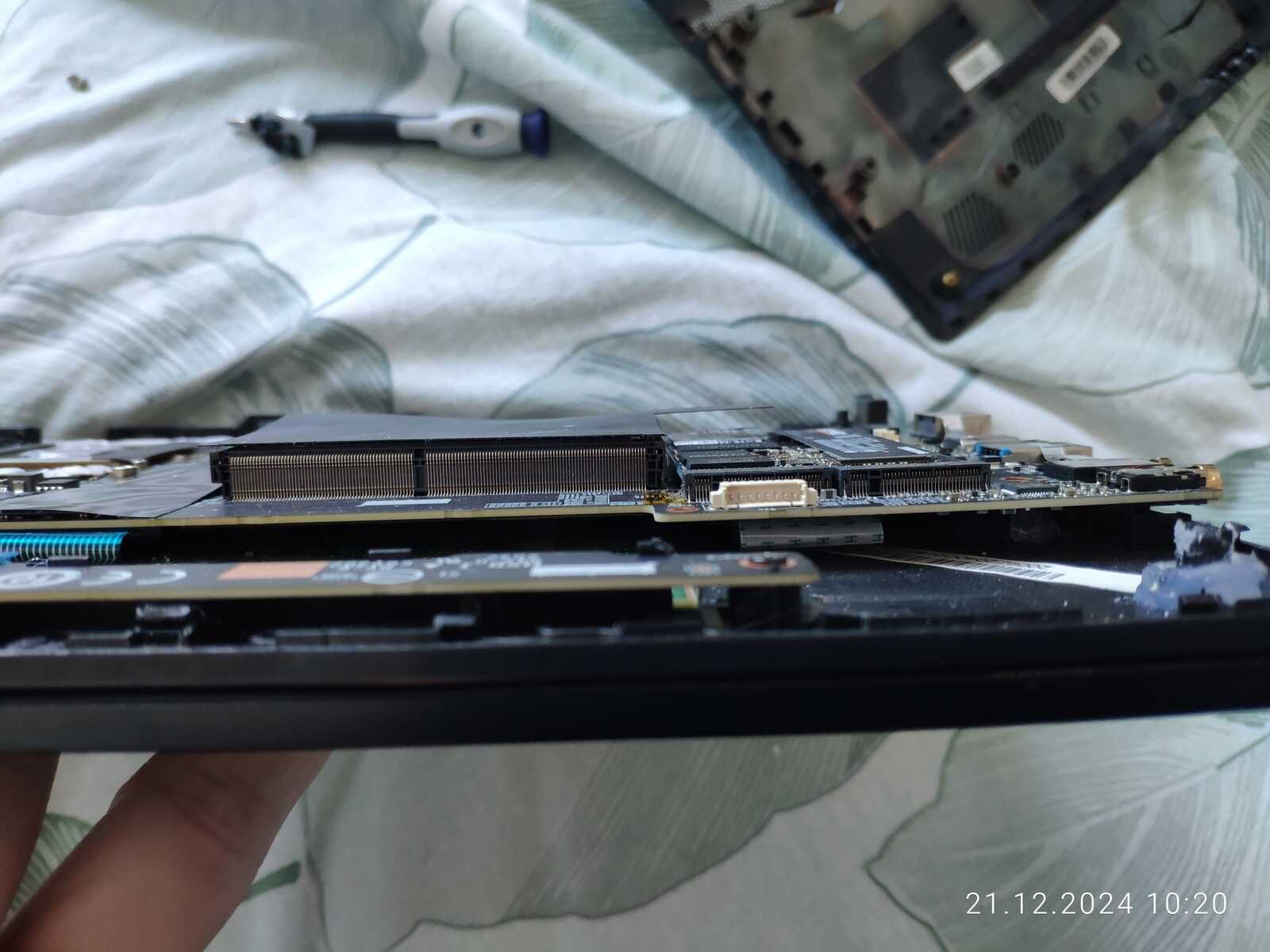 Хоть это и не очень заметно, но я обнаружил, что системная плата тоже изогнулась немного, неприятно однако, но ничего страшного, ведь в этой части нет крупных микросхем на BGA пайке.