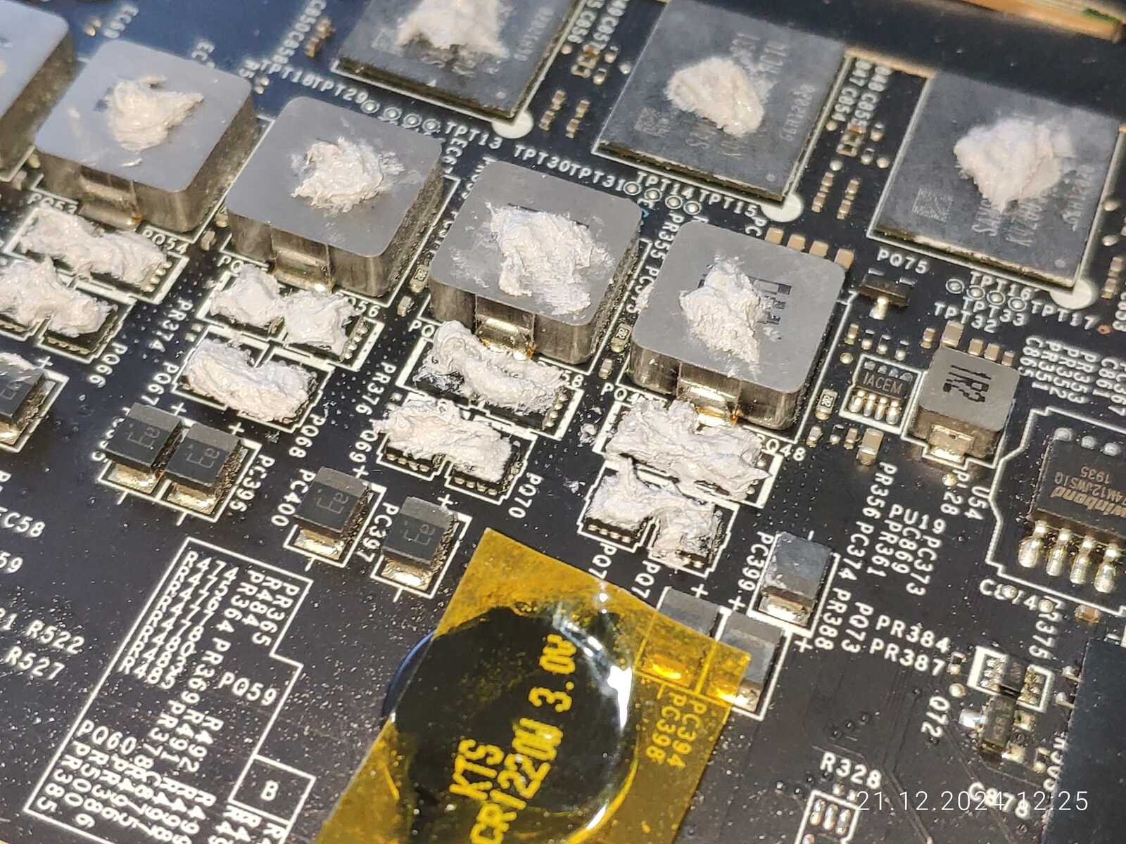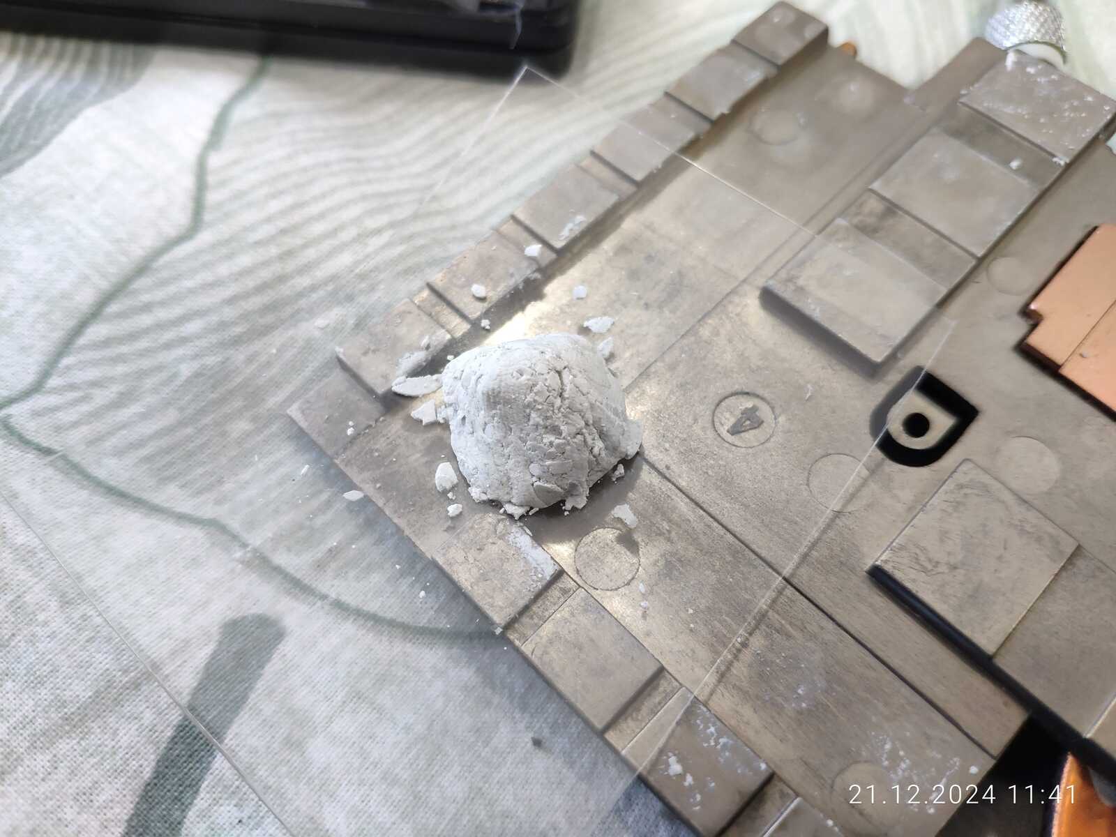 Осталось только нанести нужное количество смеси на каждый элемент требующий охлаждения, стараюсь при этом не переборщить с количеством, хотя всё равно это уже достаточно жидкая субстанция, чтобы при излишках всё равно всё встало как надо.