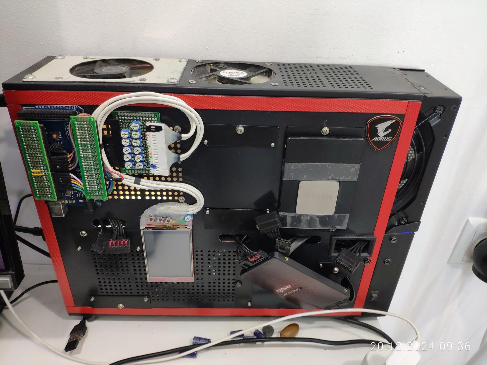 Можно и собирать, правда в одном месте переборщил с горячим клеем, но не беда, хотя именно в этом месте находятся потенциально горячие цепи питания видеокарты... Впрочем, от такого клей не должен поплыть, по крайней мере имеющийся у меня, хотя тут лучше было бы эпоксидной смолой заливать.