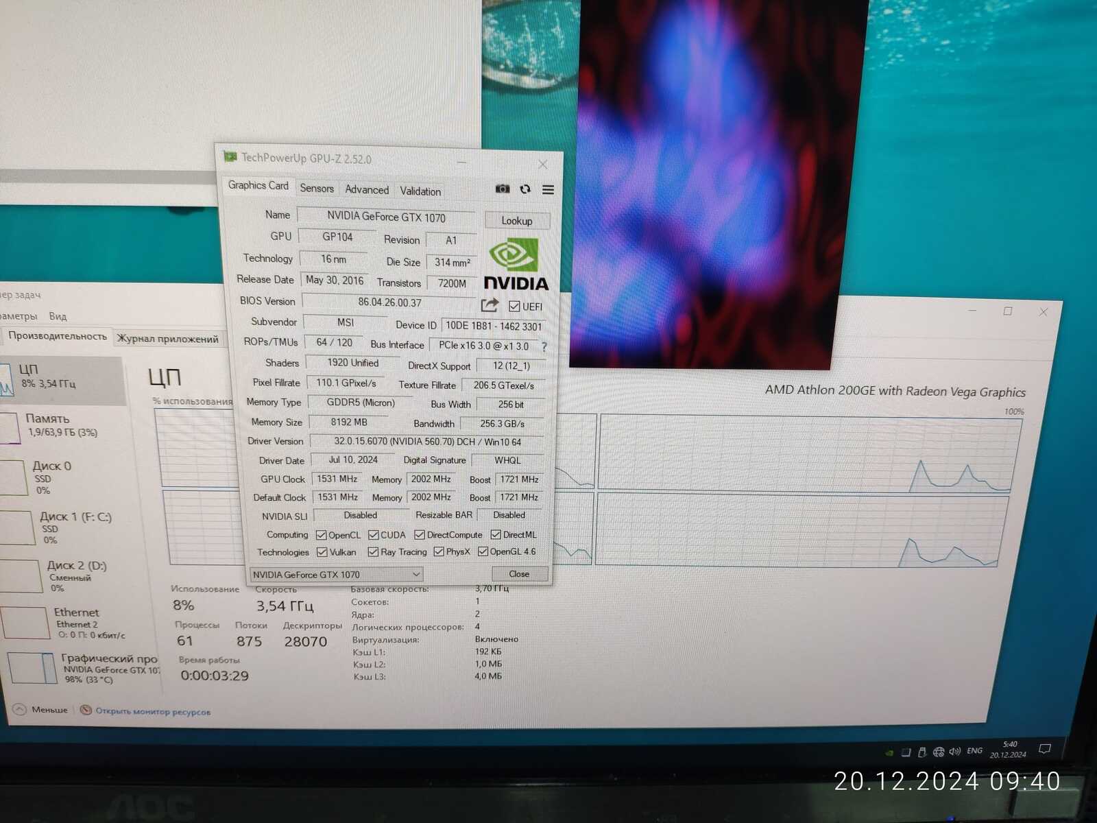 Ранее были проведены сравнительные тесты между Windows и Linux, участвовали видеокарты GeForce GTX 1070 и Radeon Vega 3, однако была проблема, и связана она с типичной для поделок AMD функциональной недостаточностью - процессор Athlon 200GE отказывался работать с видеокартой в слоте PCI-E x16 когда установлен NVMe SSD.