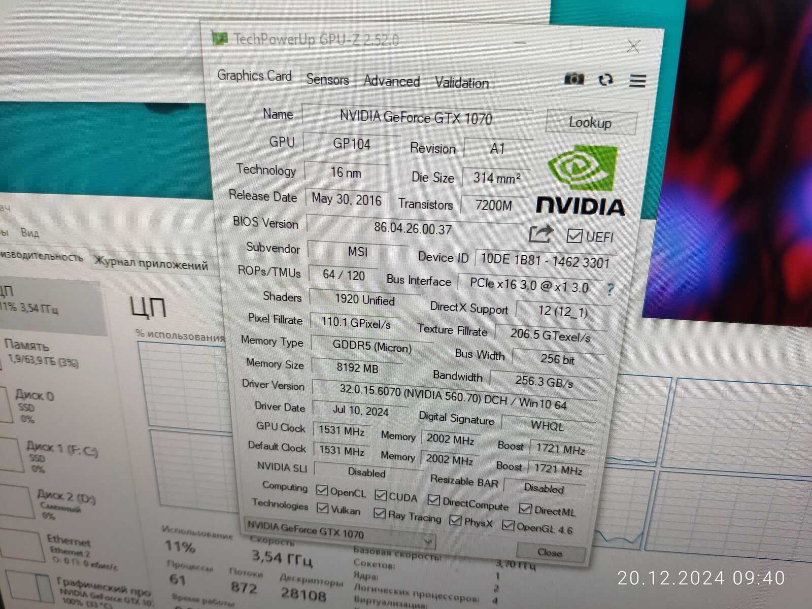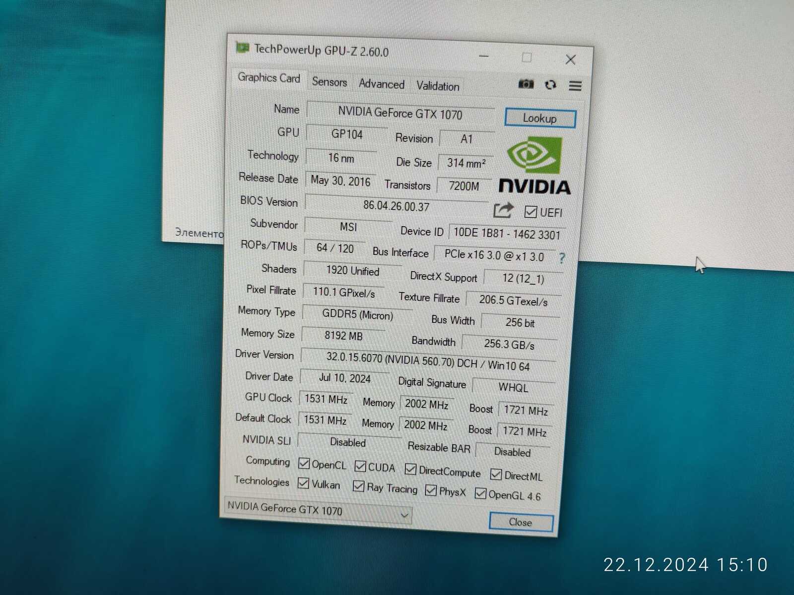 В общем, устанавливаю драйвер NVIDIA и проверяю, всё работает, правда за вывод изображения отвечает AMD Radeon сейчас, а значит при использовании GTX 1070 используется шина PCI-E для вывода изображения на монитор.