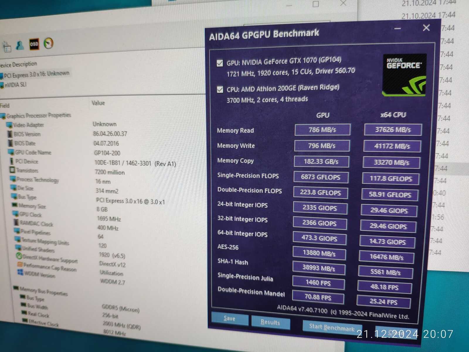 Однако, полученные результаты GTX 1070 на шине версии 2.0 x1 наверняка были не лучшими, можно было бы установить Ryzen 7 2700X вместо Athlon 200GE, но это не выйдет сделать, ведь тогда нельзя будет сравнивать новые результаты с уже имеющимися...