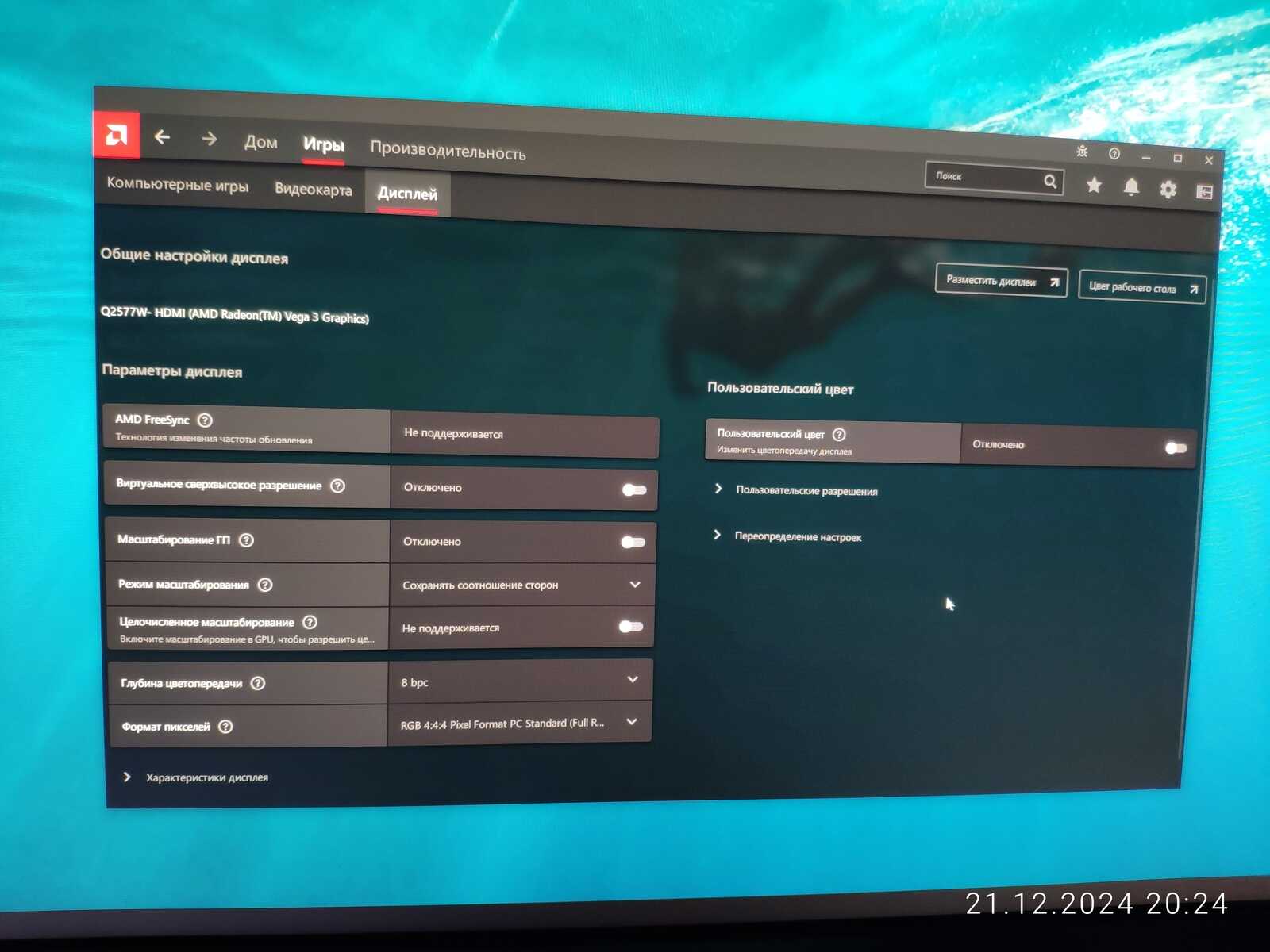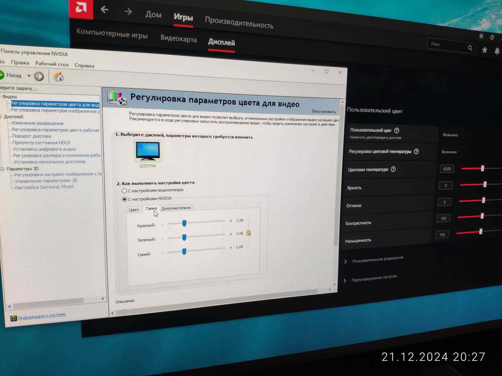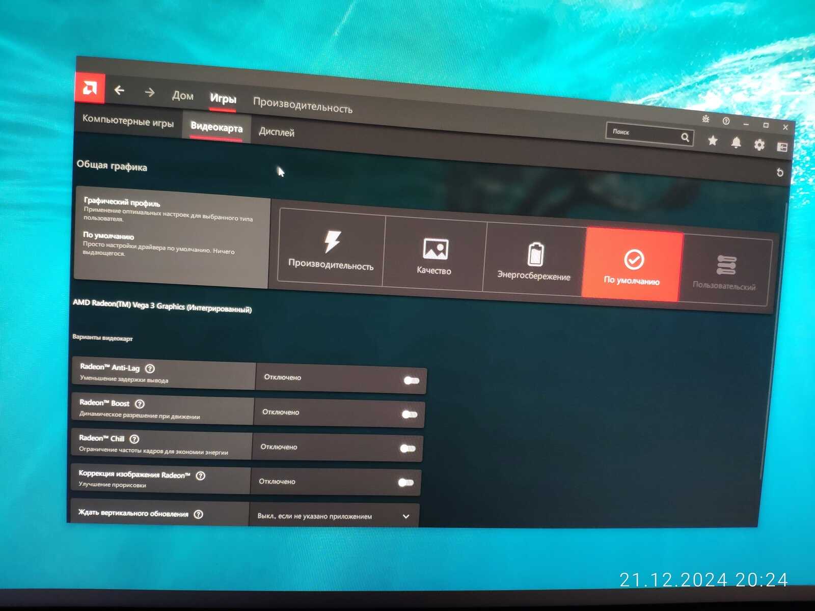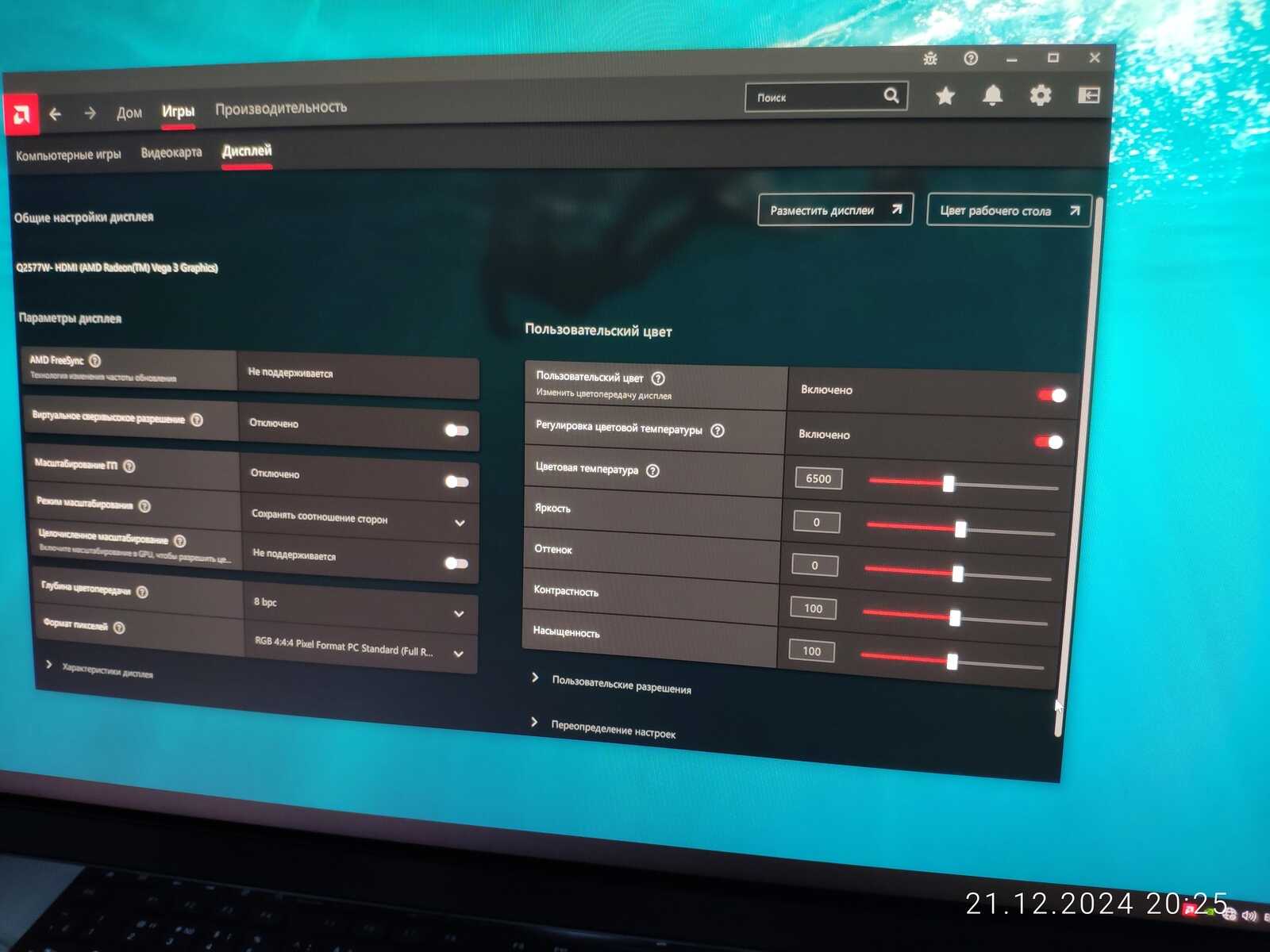 А дальше мне стало интересно, как тут с настройками цветопередачи в драйвере AMD, хотя ГП в настольном процессоре и не выдал особых проблем с цветами при подключении внешнего дисплея, тем более сейчас всё работает в среде Windows, а не Linux, но я был в недоумении, какого чёрта настройки дисплея находятся в разделе "игры"? Почему в панели драйвера на ноутбуке мне приходилось лазить в "шестерёнку", и там искать те же самые параметры, такие же скудные? Что за вакханалия вообще твориться с драйверами AMD?