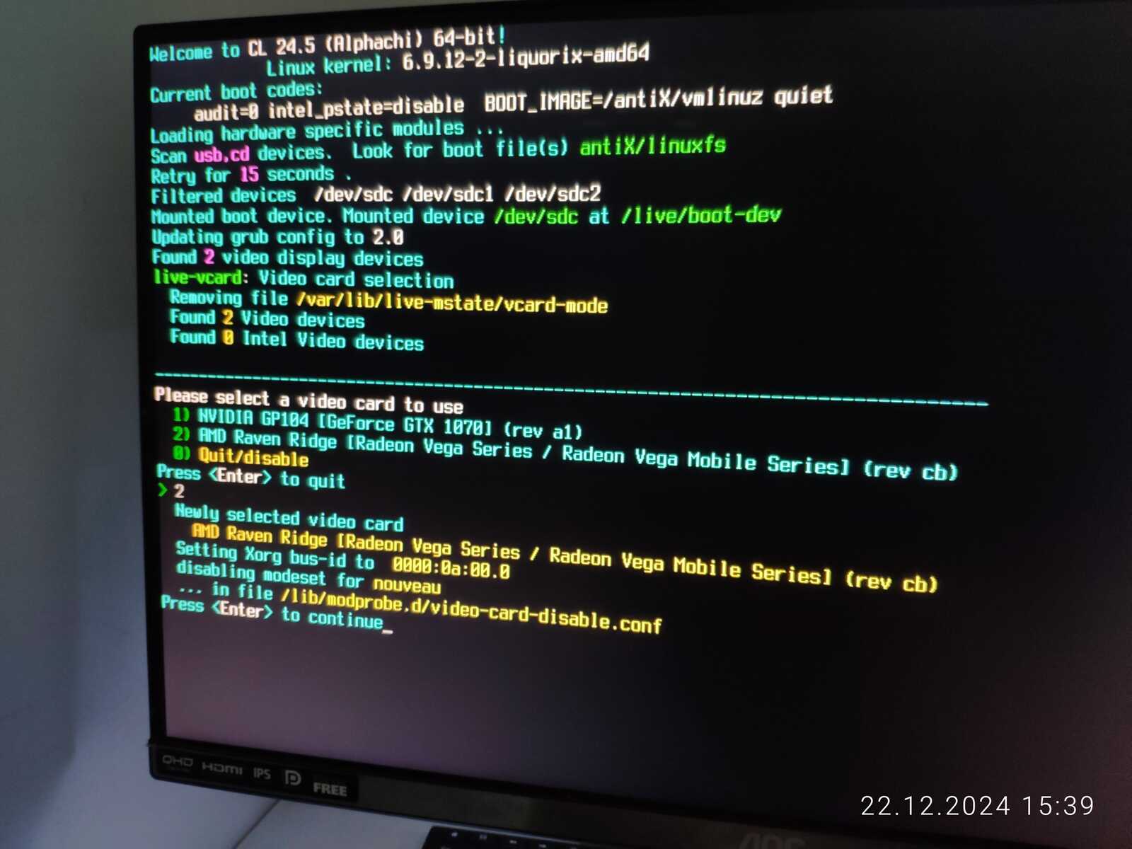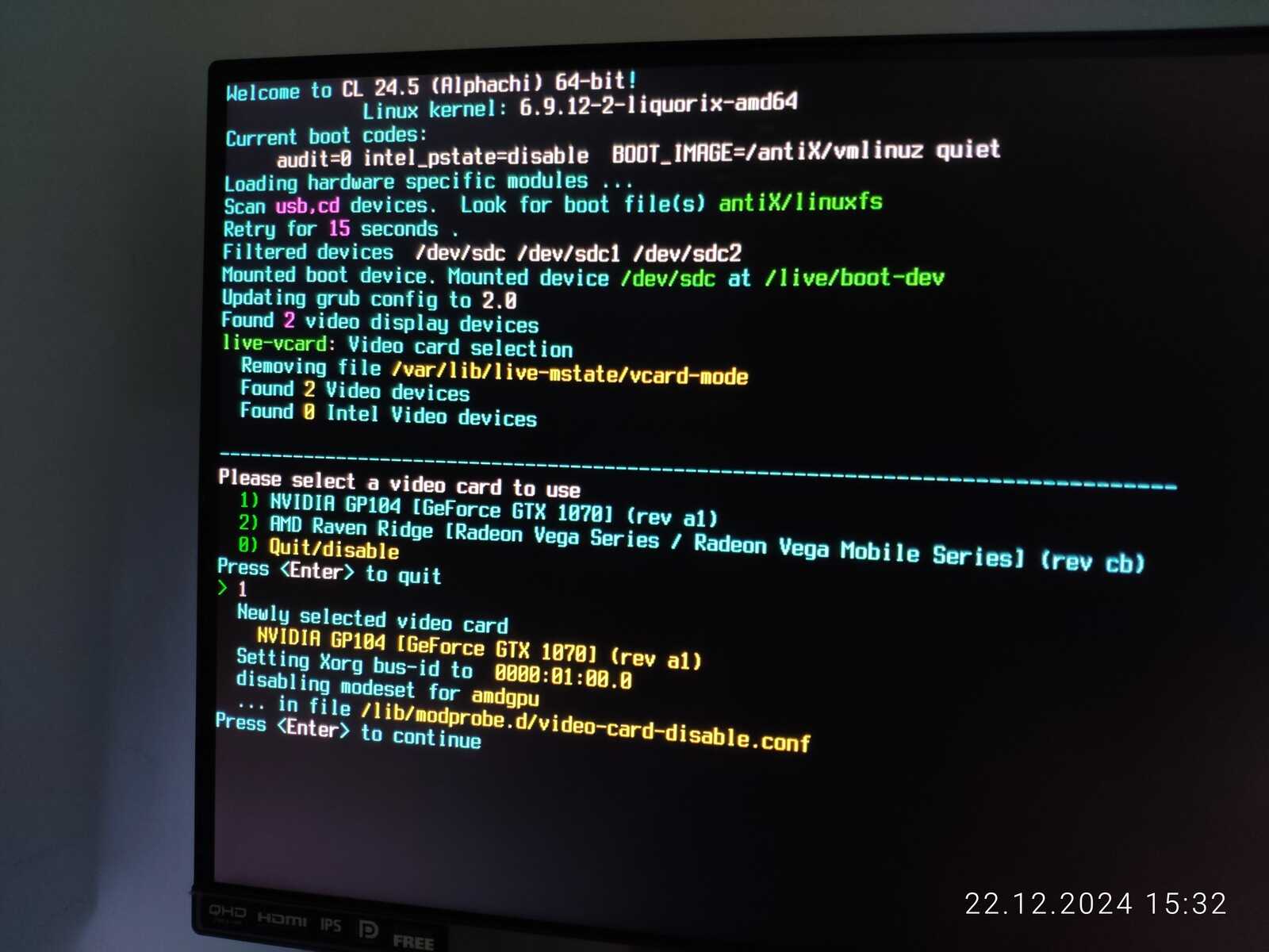 А дальше нужно было отключить встроенную графику, чтобы заставить "дряхлого пингвина" напрямую выводить изображение через GTX 1070, но что-то пошло не так, и линукс поломался. Я не удивлён, чтобы Linux, и не ломался на ровном месте...