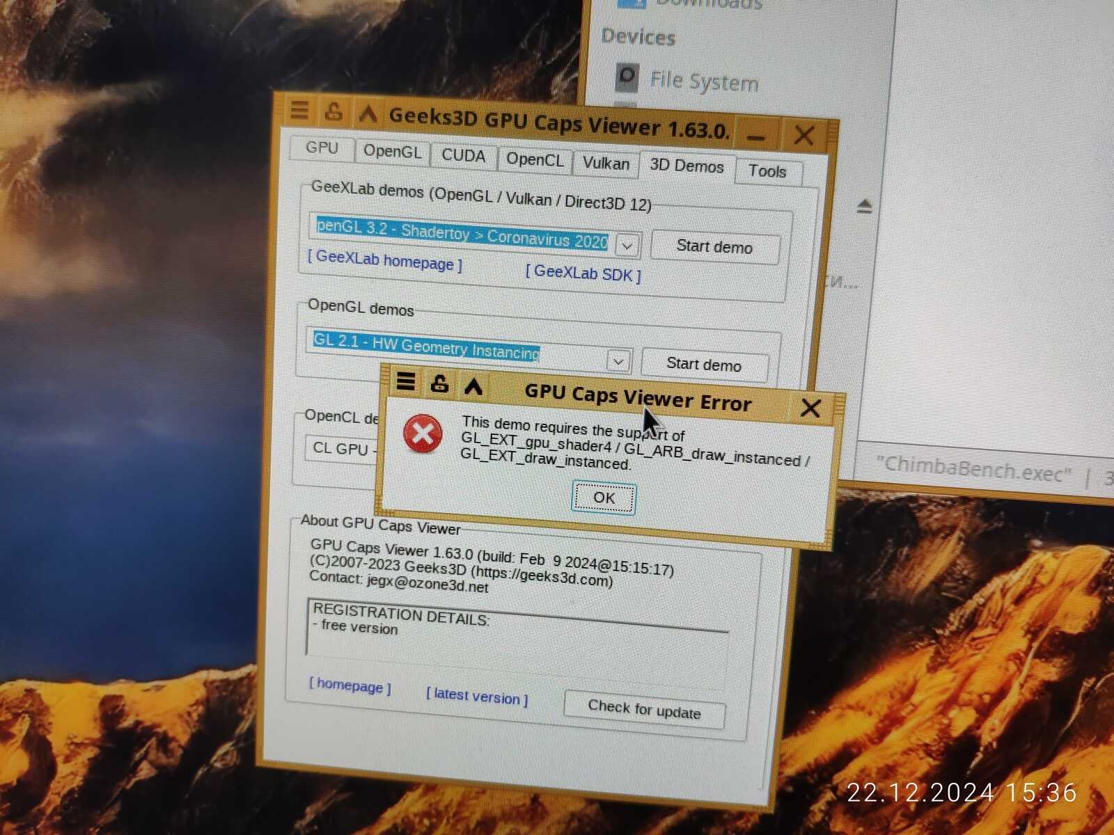 А ещё эта кривая Mesa3D в качестве драйвера графики предоставляющего графические API, даже с Nouveau некоторые тесты в артефактах, хотя выглядят они не так, как с видеокартами Intel / AMD, но суть примерно такая же, особенно позабавили артефакты на весь экран когда отправил систему на перезагрузку, и это с полностью исправным оборудованием. Впрочем, это же линукс...