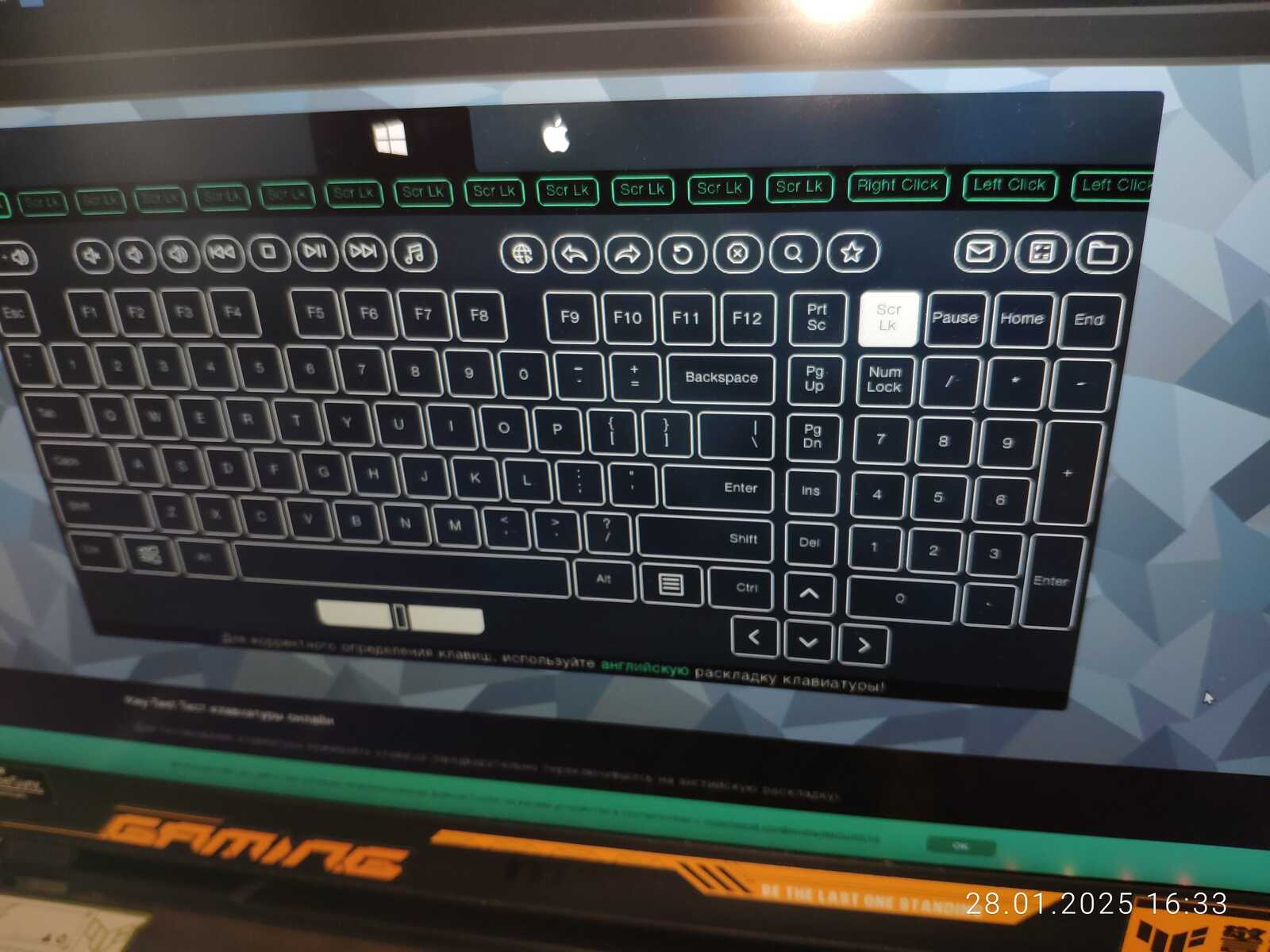Теперь осталось проверить клавиатуру, подсветка должна включаться клавишей Scroll Lock, но Linux не имел бы репутацию кривой поделки на коленке, если бы всё нормально работало как в Windows...