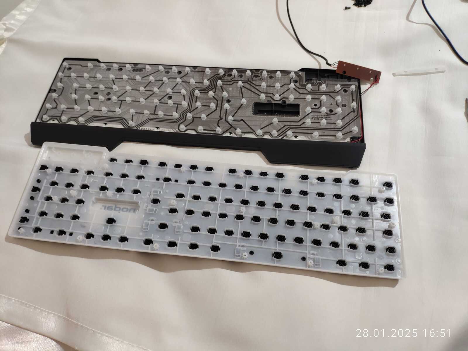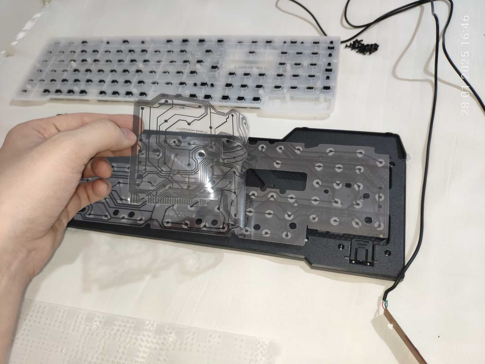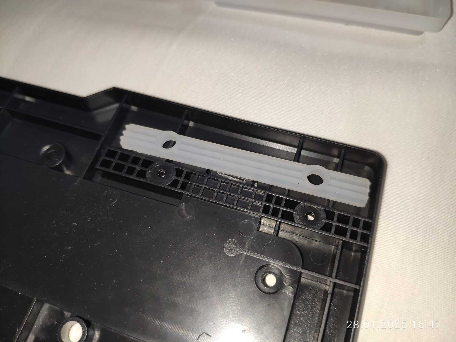 В верхней панели с клавишами можно заметить очень много дополнительных конструктивных рёбер жесткости, моё почтение тому, кто это проектировал корпус, хотя крепление платы тут не очень удачное конечно.
