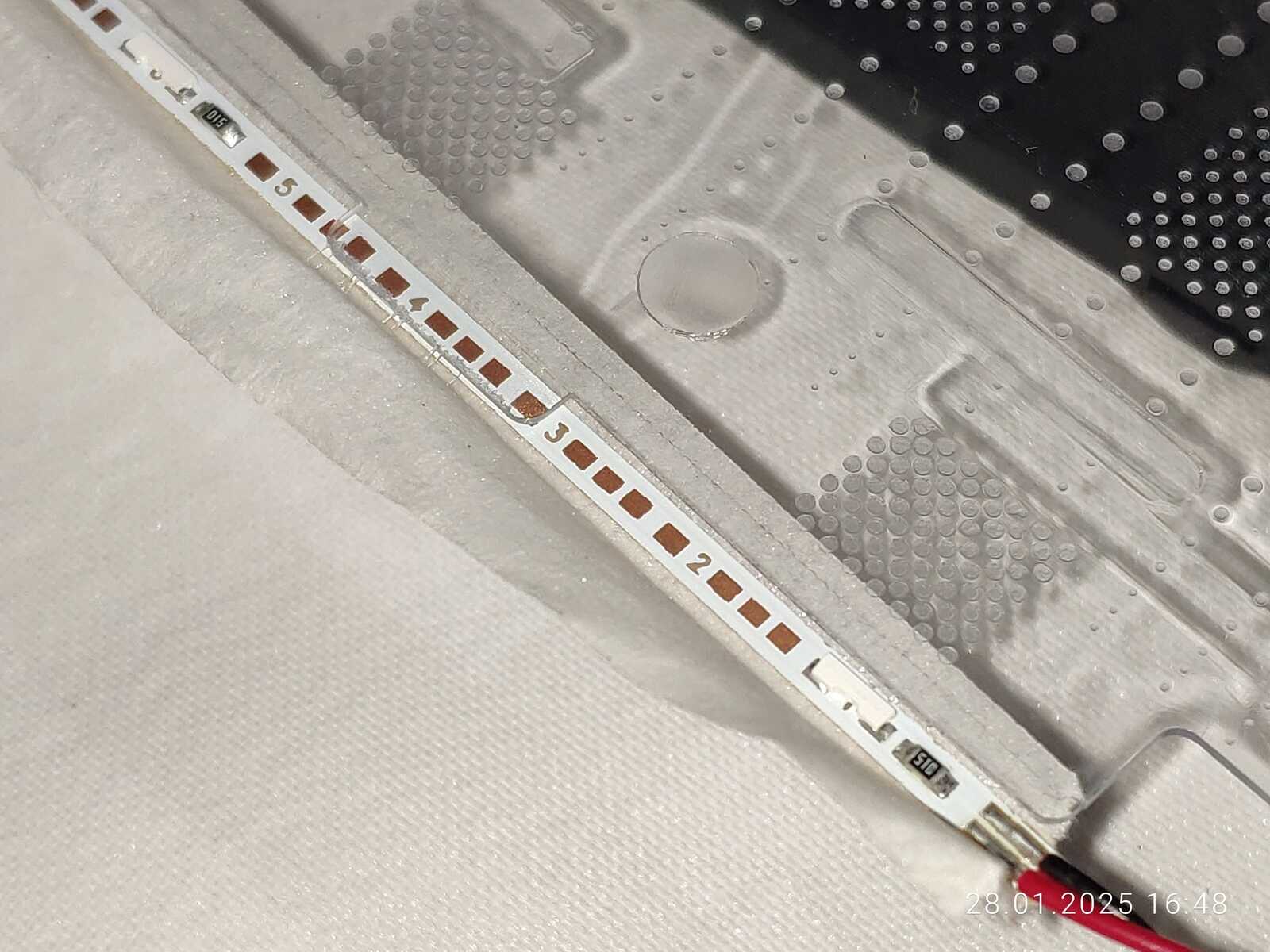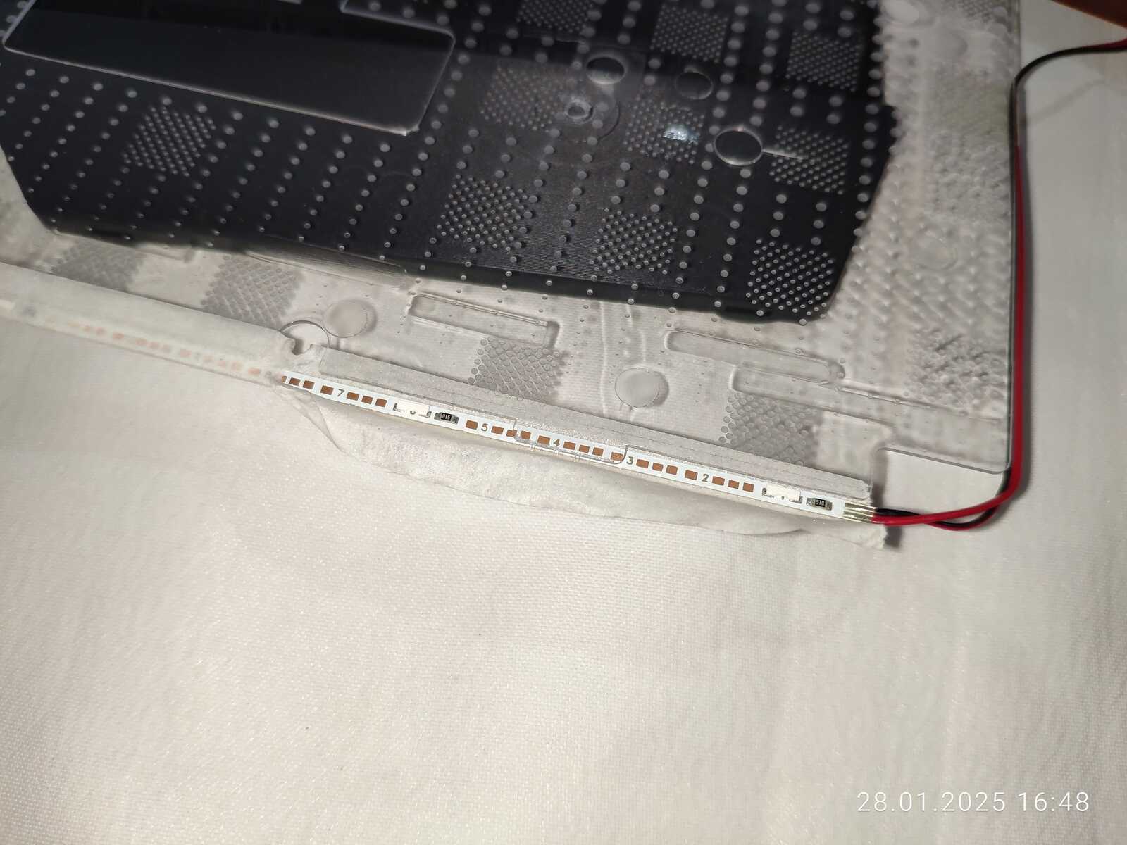 Как можно заметить, подсветка это не просто светодиодная лента где-то приклеенная, а целый модуль с пластиковым рассеивателем.