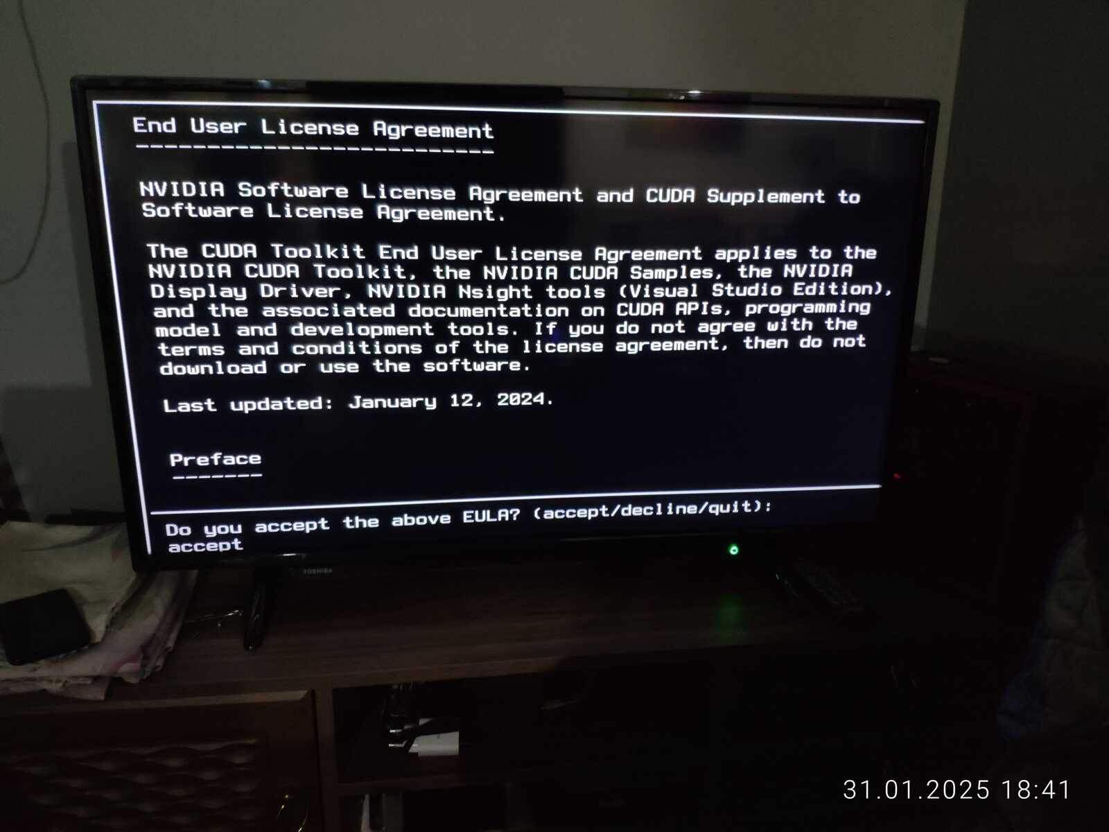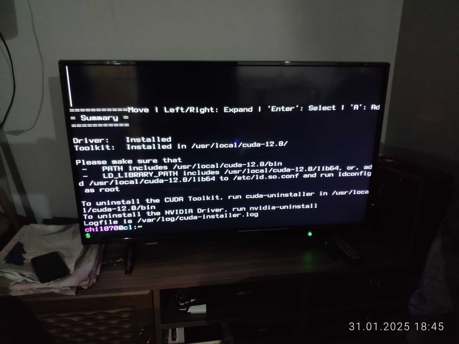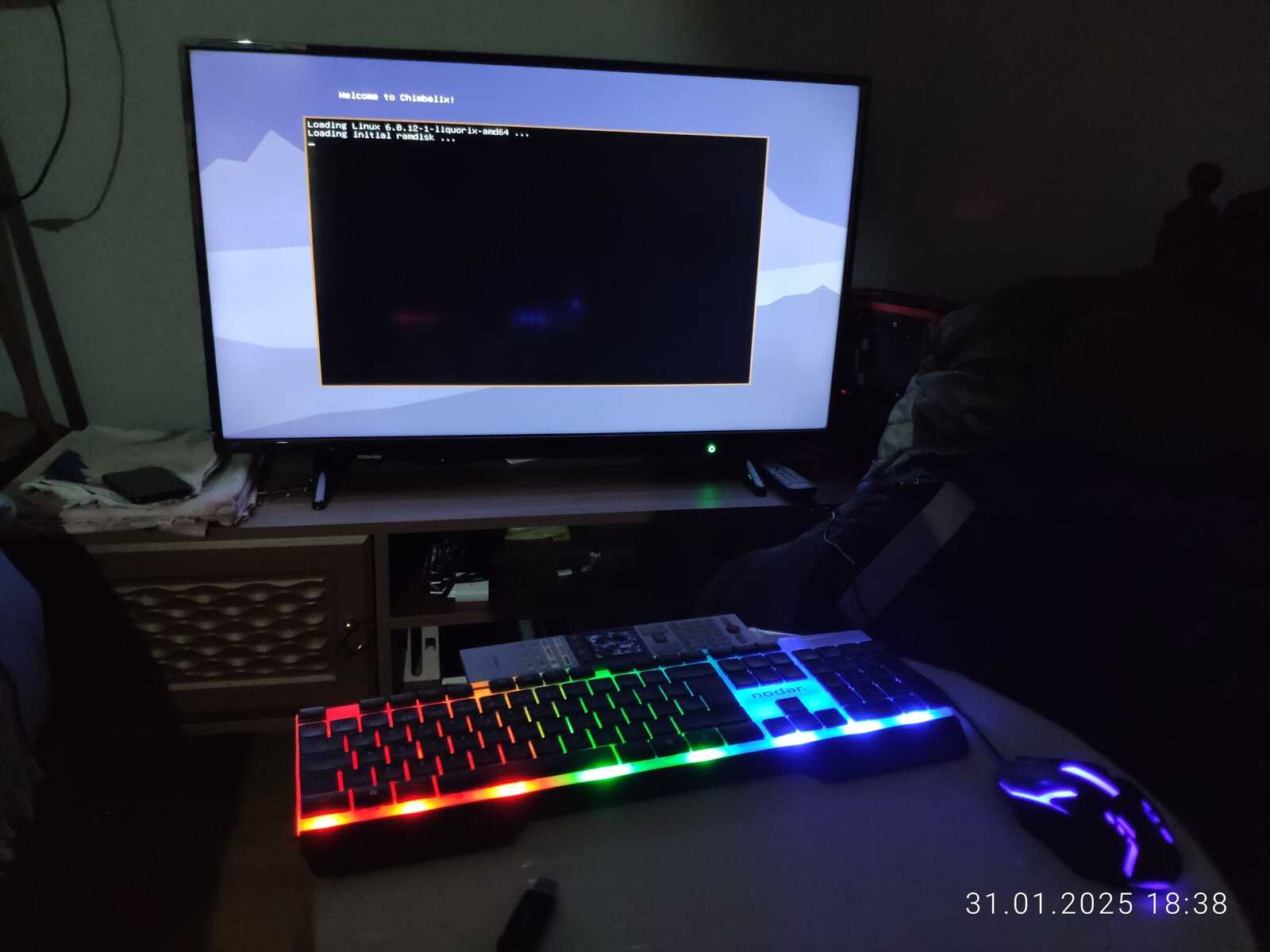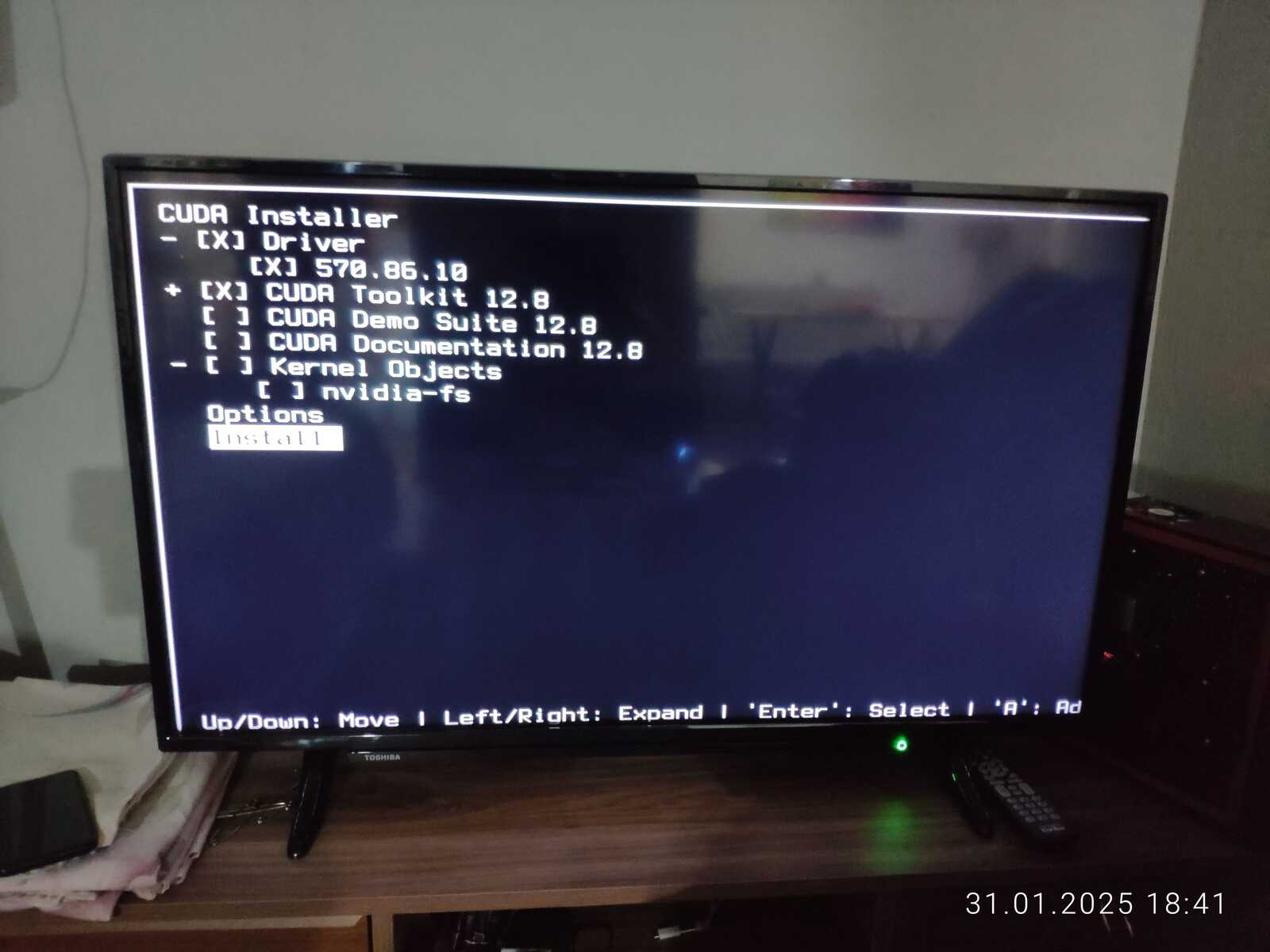 В общем, во время установки линукса у меня телевизор внезапно решил обновиться, ну спасибо, что хоть позволили отказаться от обновлений в столь важный момент...