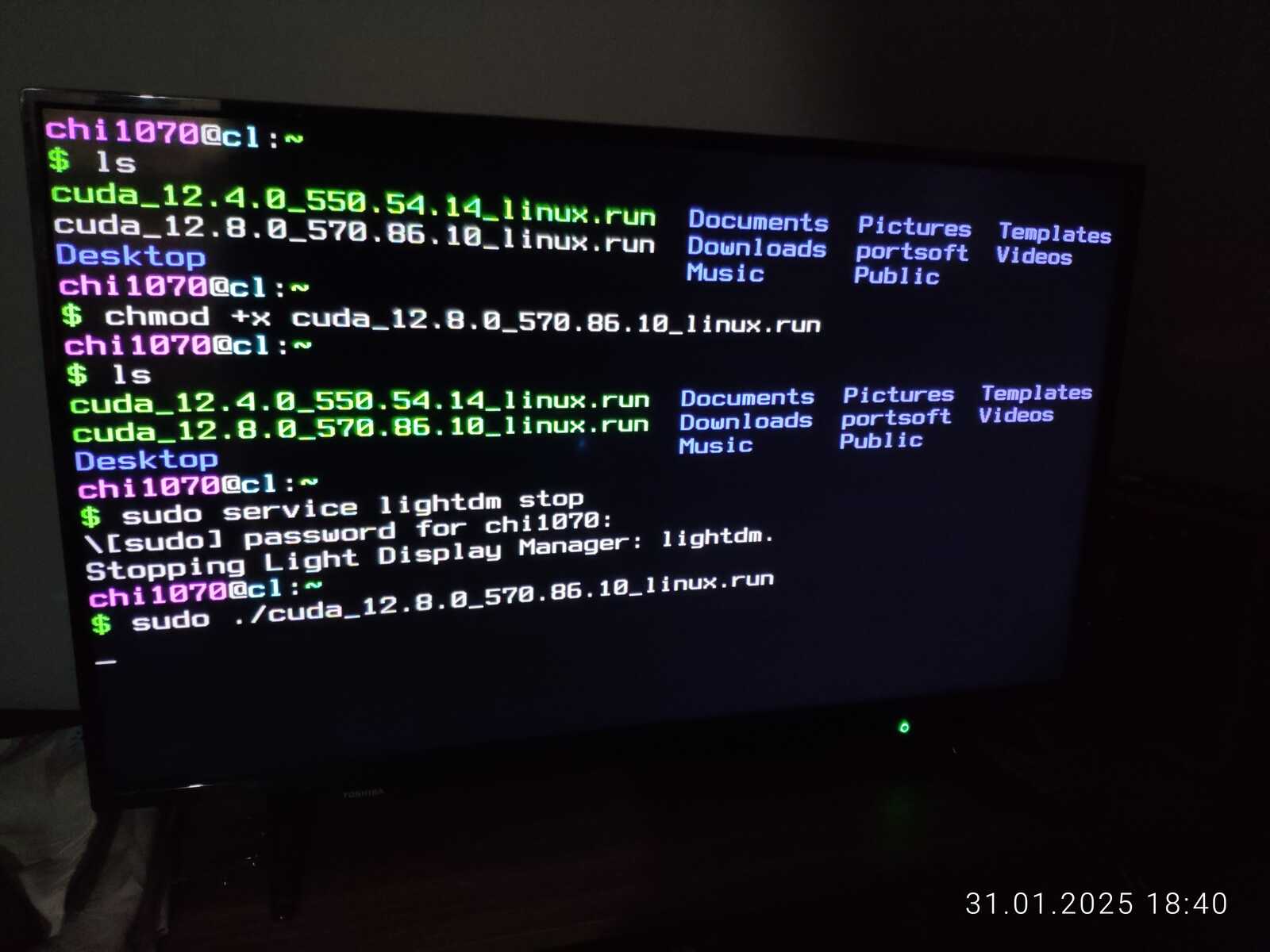 Осталось установить нормальный драйвер NVIDIA, перехожу в tty (ctrl+alt+f1), останавливаю сервис lightdm, и собственно устанавливаю драйвер, всё, готово, только перезагрузить систему осталось.