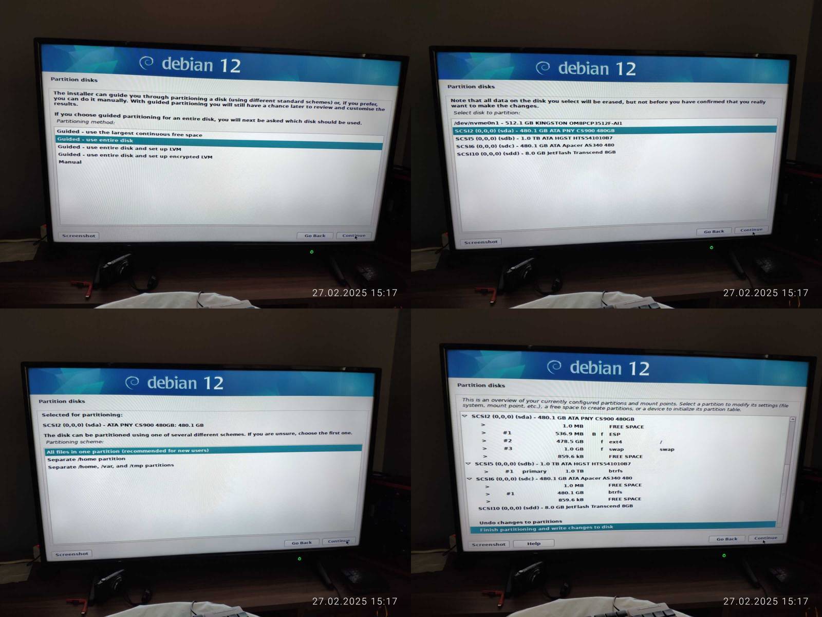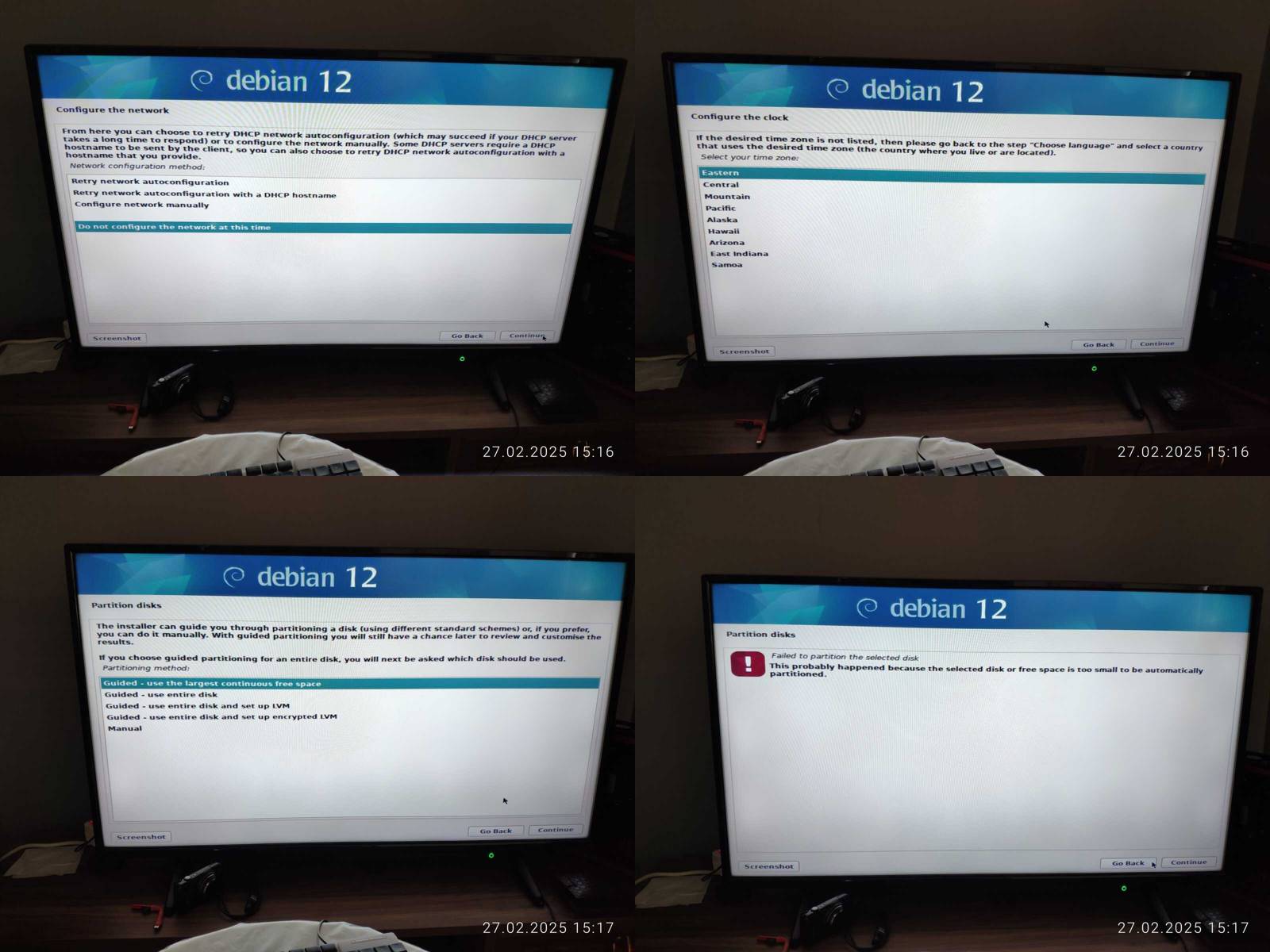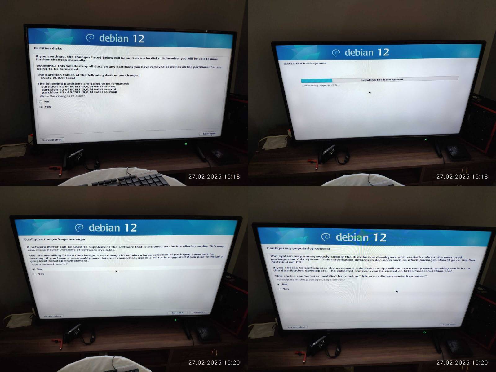 Если в дистрибутиве Chimbalix установка была довольно простым занятием, то в Debian программа установки еще более муторная, чем в Ubuntu, и тут нельзя настроить более одной раскладки клавиатуры, за что жирнейший минус в копилку, конфигурация сети намекает на то, что в будущем будут проблемы при подключении к интернету, но не будем за это выписывать минус, ибо не проверял данный нюанс досконально...