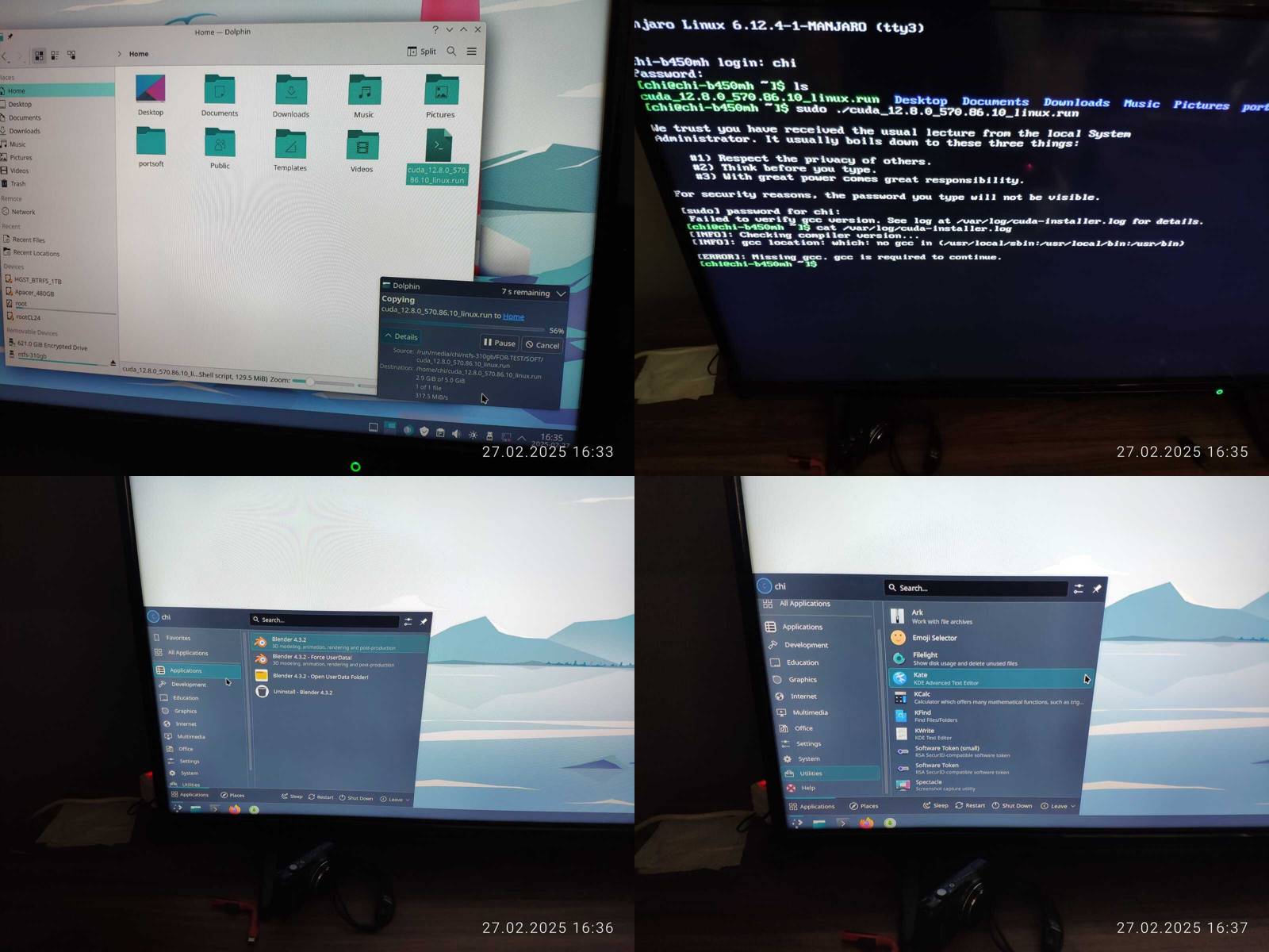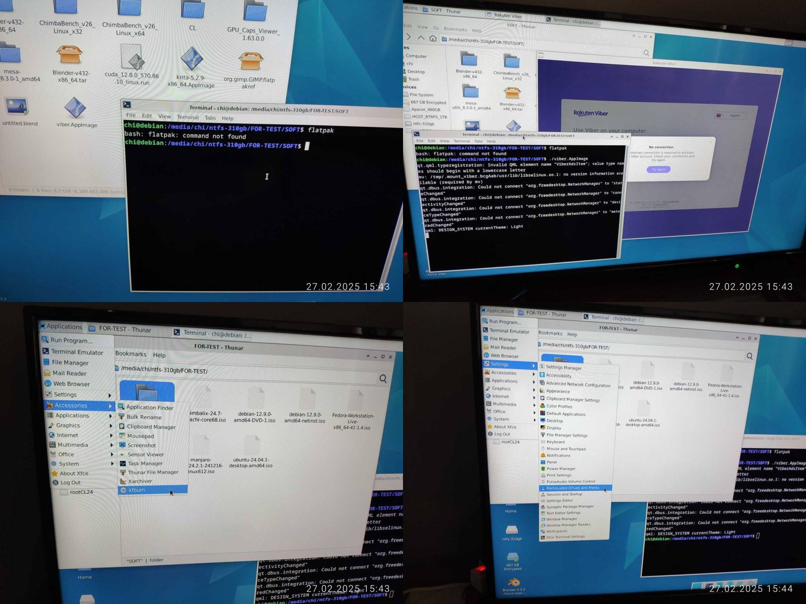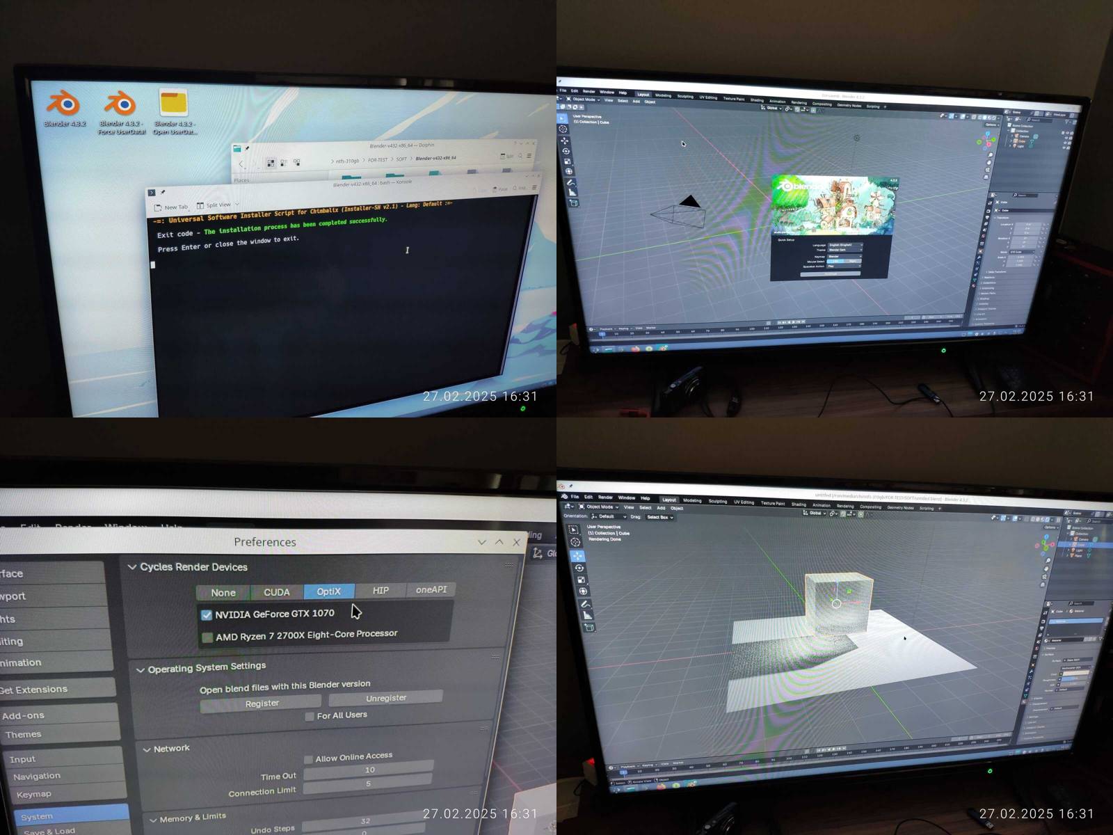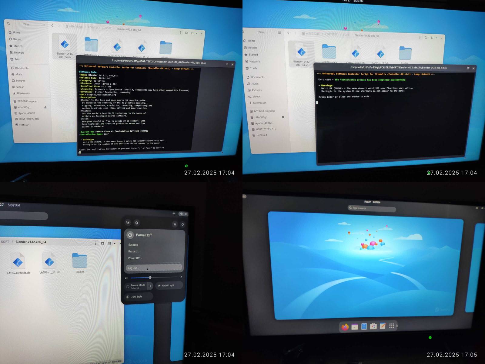 Отлично, Blender работает, но опять же, OpenCL не работает, и это печально, с форматом даты и времени проблем не нашёл, хотя меню приложений не поддерживает вложенные категории, что конечно же минус.