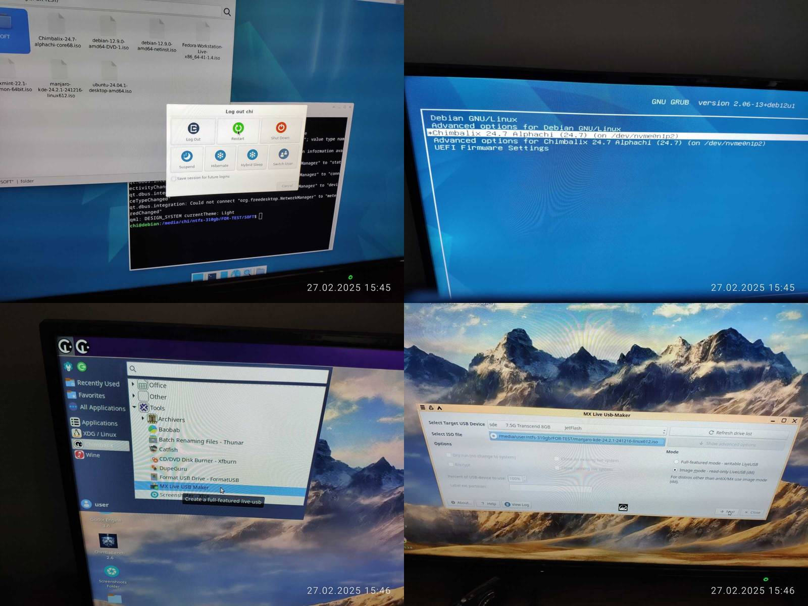 AppImage работает, это радует, а вот утилит нет для записи загрузочных накопителей, потому пришлось загружать основной Chimbalix для записи USB накопителя со следующим дистрибутивом...