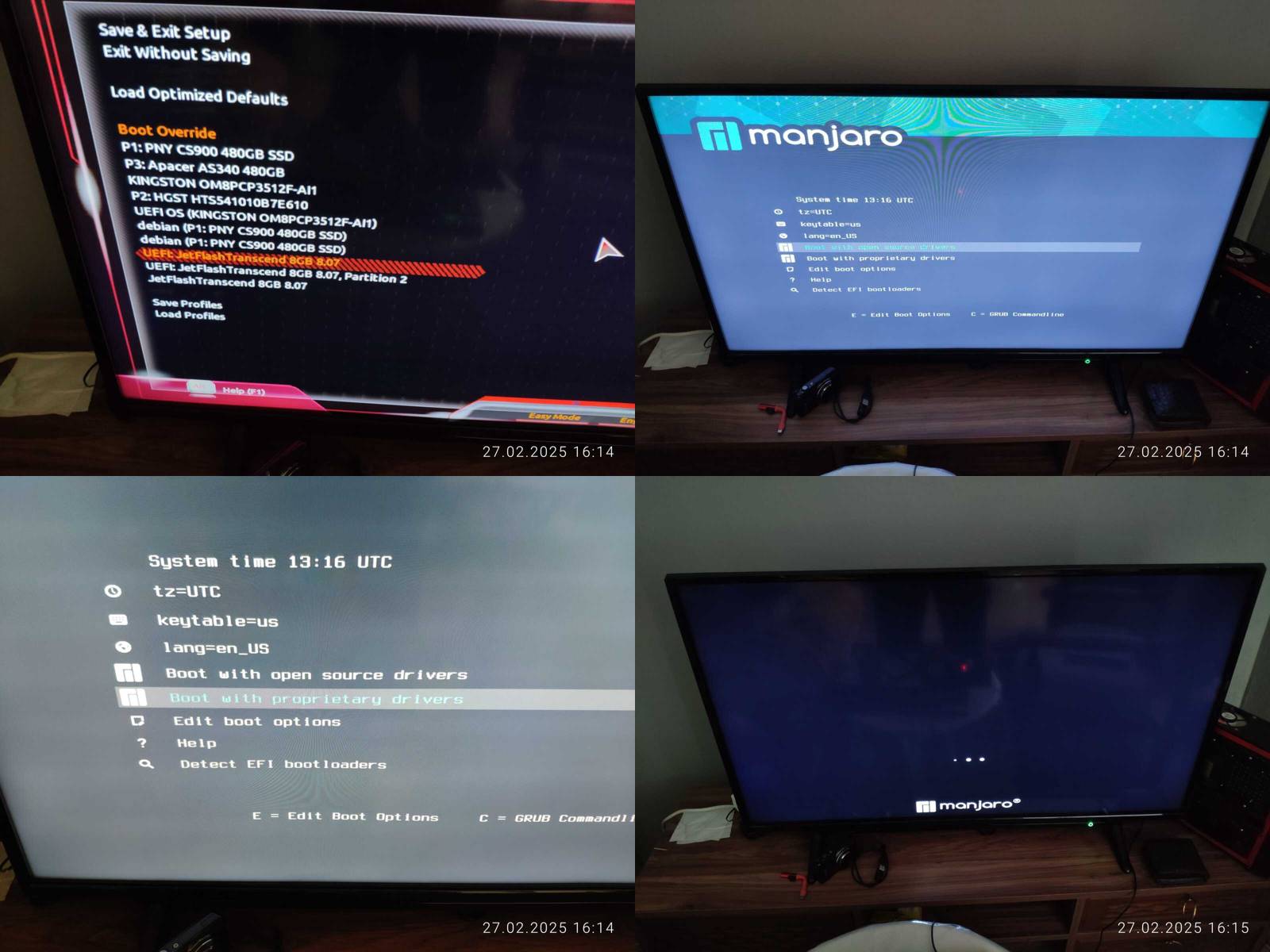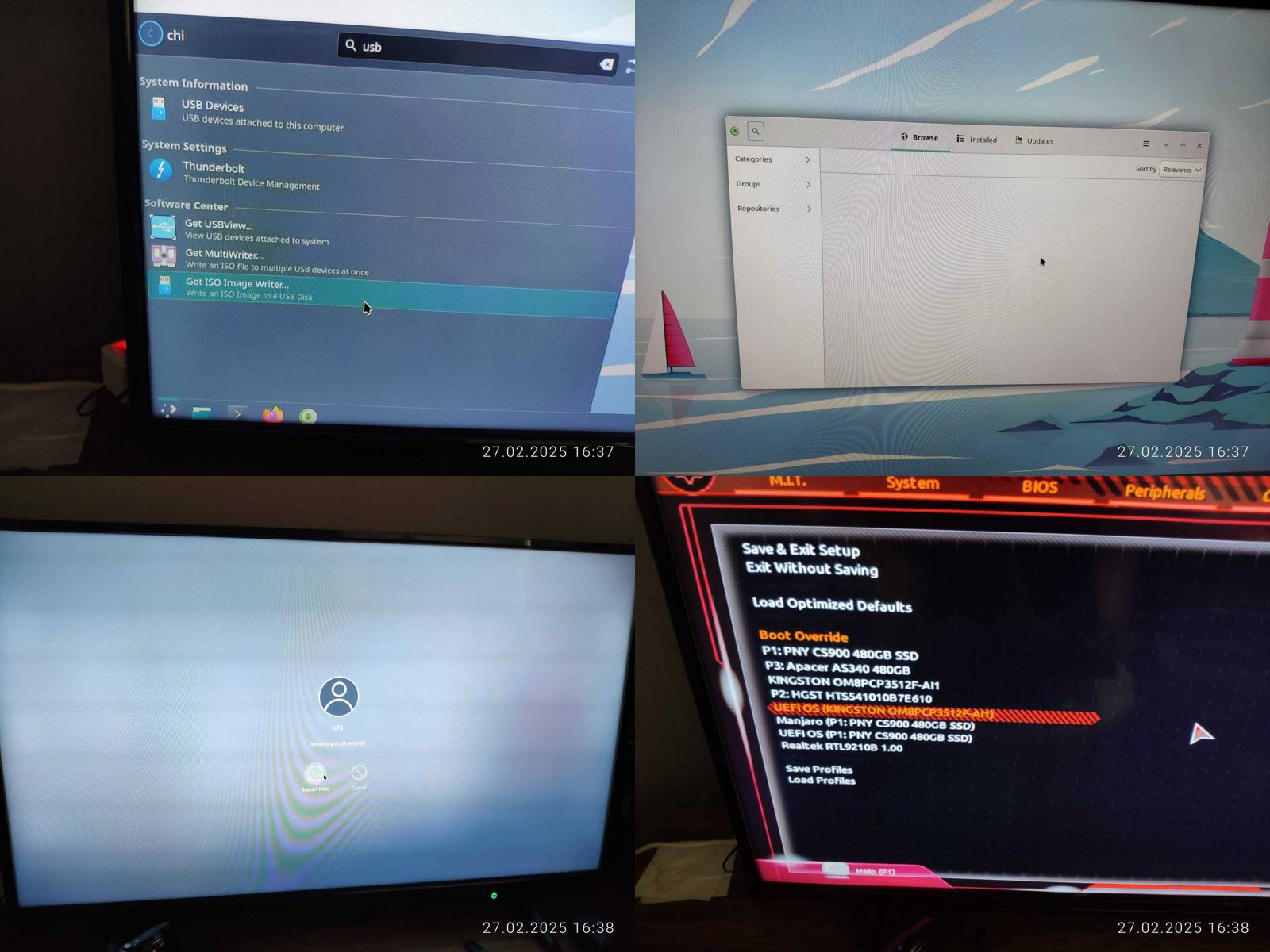 Ладно, пробую установить нормальный драйвер NVIDIA, и дистрибутив Manjaro не проходит проверку компилятора GCC, его просто нет в наличии, а значит будут серьёзные проблемы при компиляции модулей ядра VirtualBox и т.п., так же не нашлось утилит для записи загрузочного USB накопителя, вернее нашлась одна в меню приложений, но это просто обманчивая ссылка на линуксоидные репозитории в интернете, то есть фактически нет приложения, так что пришлось загрузить Chimbalix и записать флешку уже из своего дистрибутива.