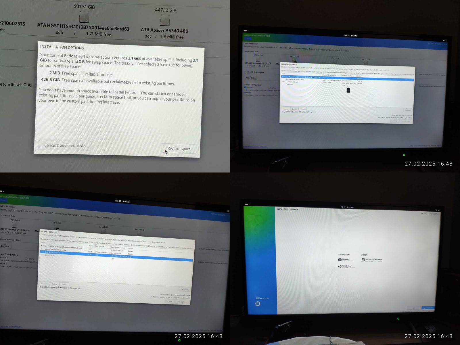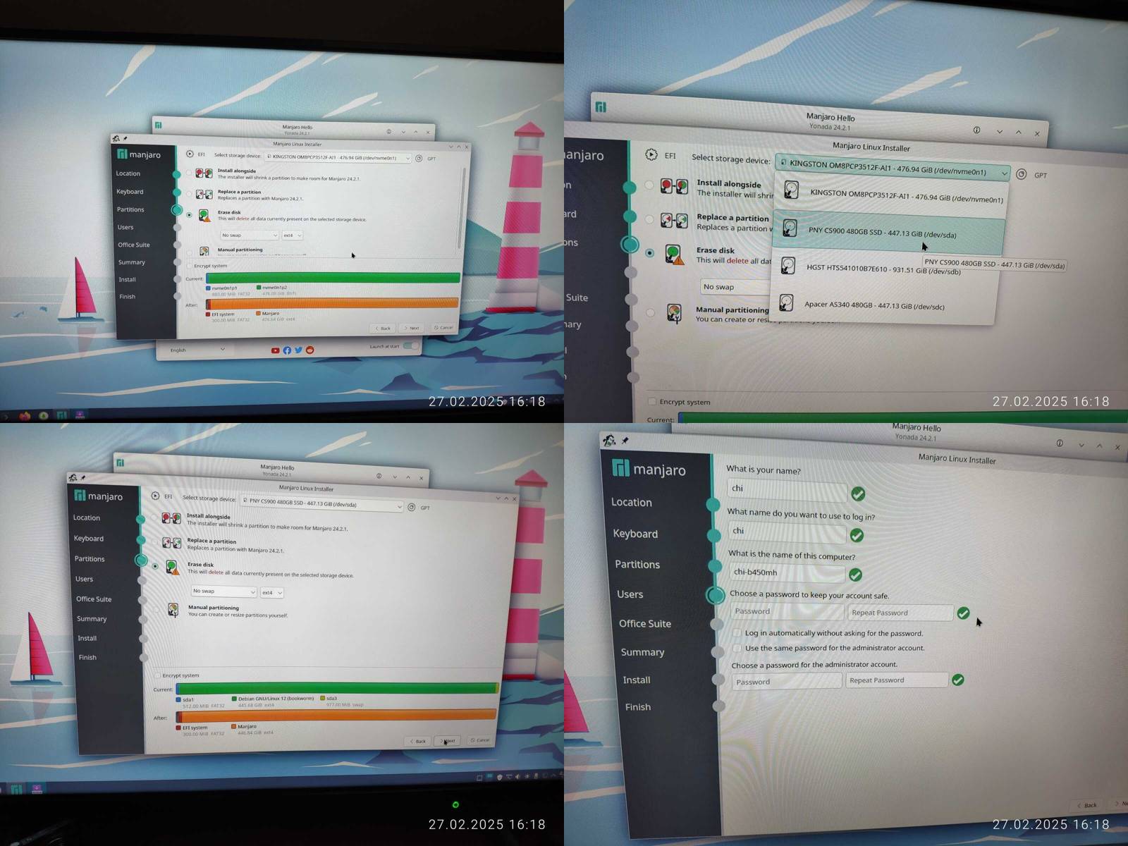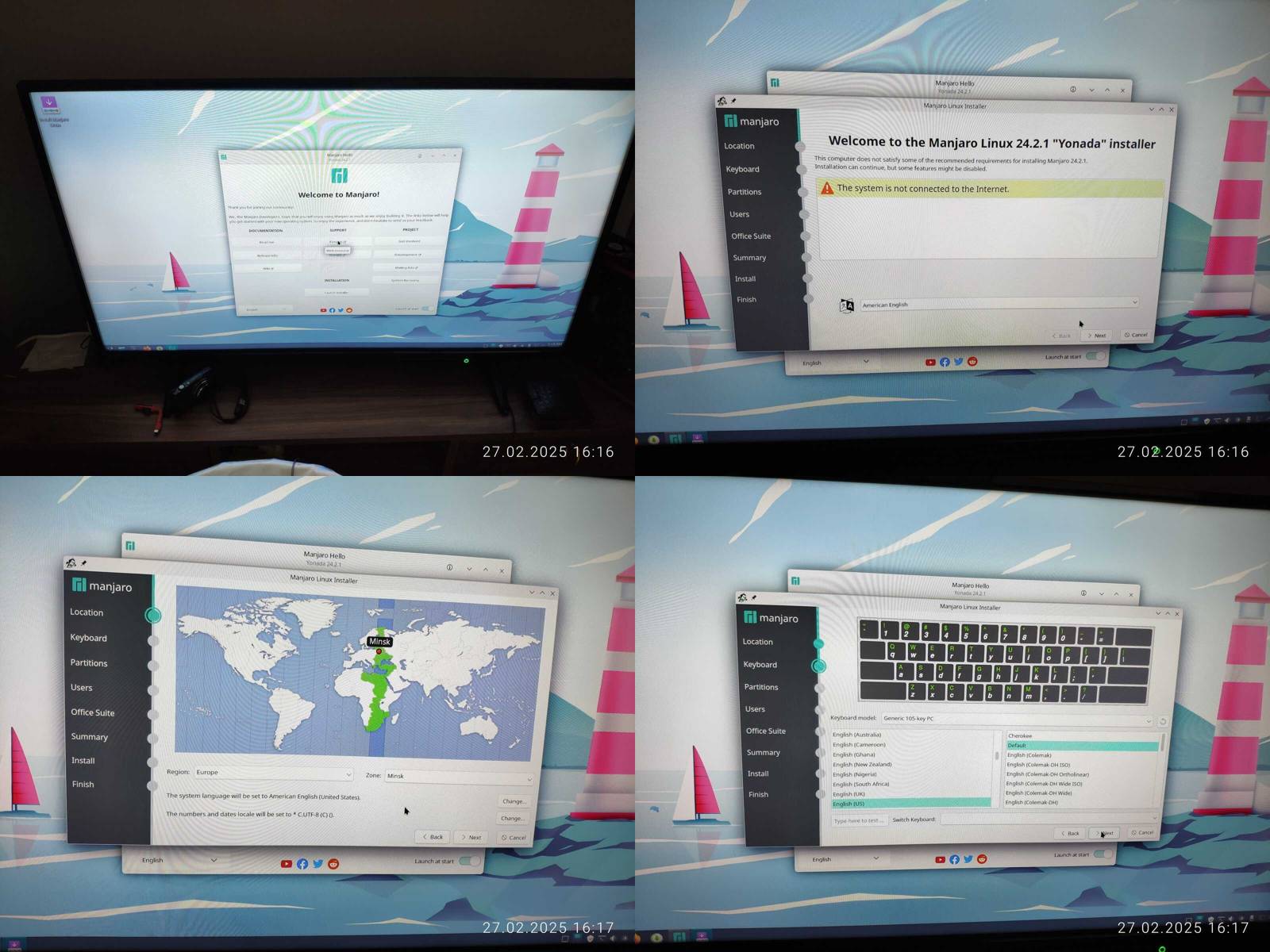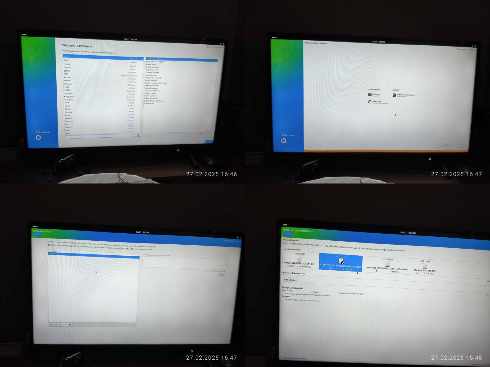 Начинаем с установки, можно настроить раскладки клавиатуры, и с разметкой дисков в принципе нет особых проблем, можно выбрать конкретный SSD, тыкнуть пару кнопок для удаления содержимого и оно само всё сделает как надо, но вот интерфейс максимально уродливый, просто нет других слов чтобы это описать, так что тут не постесняюсь выписать минус чисто за максимальную уродливость графического интерфейса.