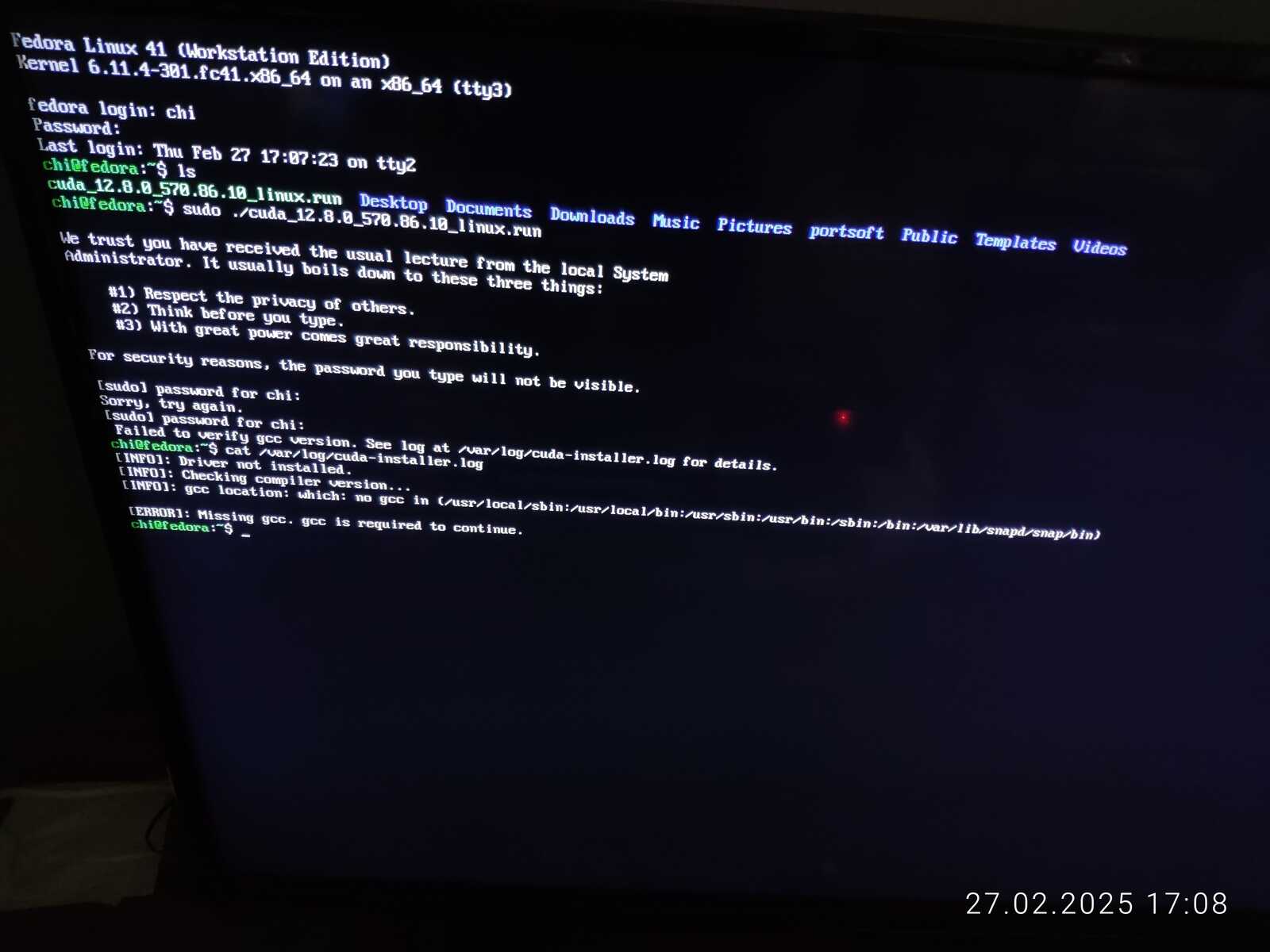 Установить нормальный драйвер видеокарты тоже невозможно, ведь в Fedora отсутствует крайне необходимый для компиляции модулей ядра GCC, а значит будут проблемы и с VirtualBox, и вообще всем, что требует компиляции модулей ядра Linux для работы...