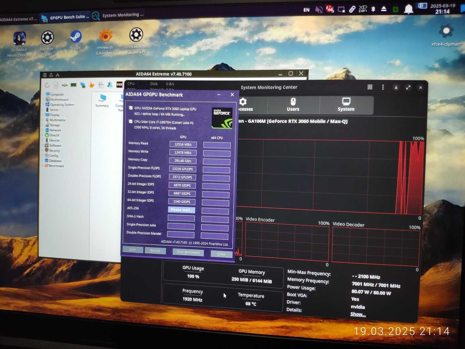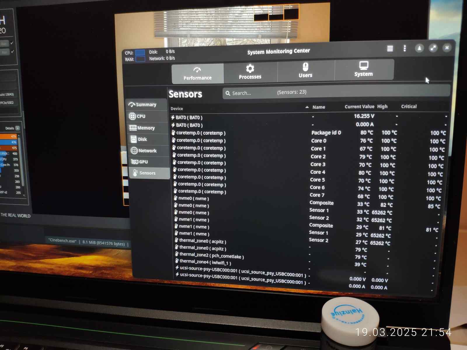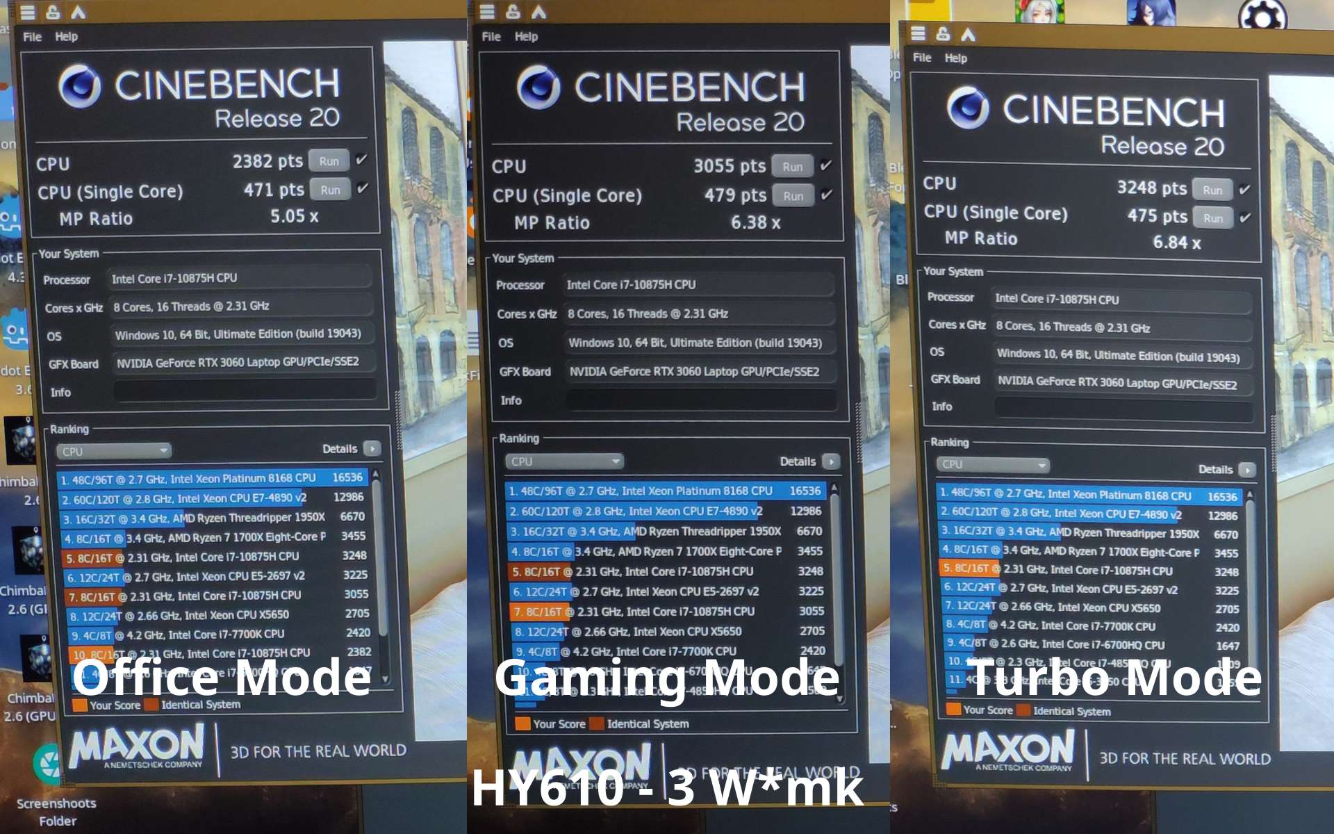 У ноутбука три режима работы, Office, Gaming и Turbo, во всех трёх режимах видеокарта работает при 80 Вт, ибо Linux вместо операционной системы, а вот процессор изменяет свои лимиты примерно до ~15 Вт, ~60 Вт и ~75 Вт в Turbo режиме соответственно, будут протестированы все три режима.
