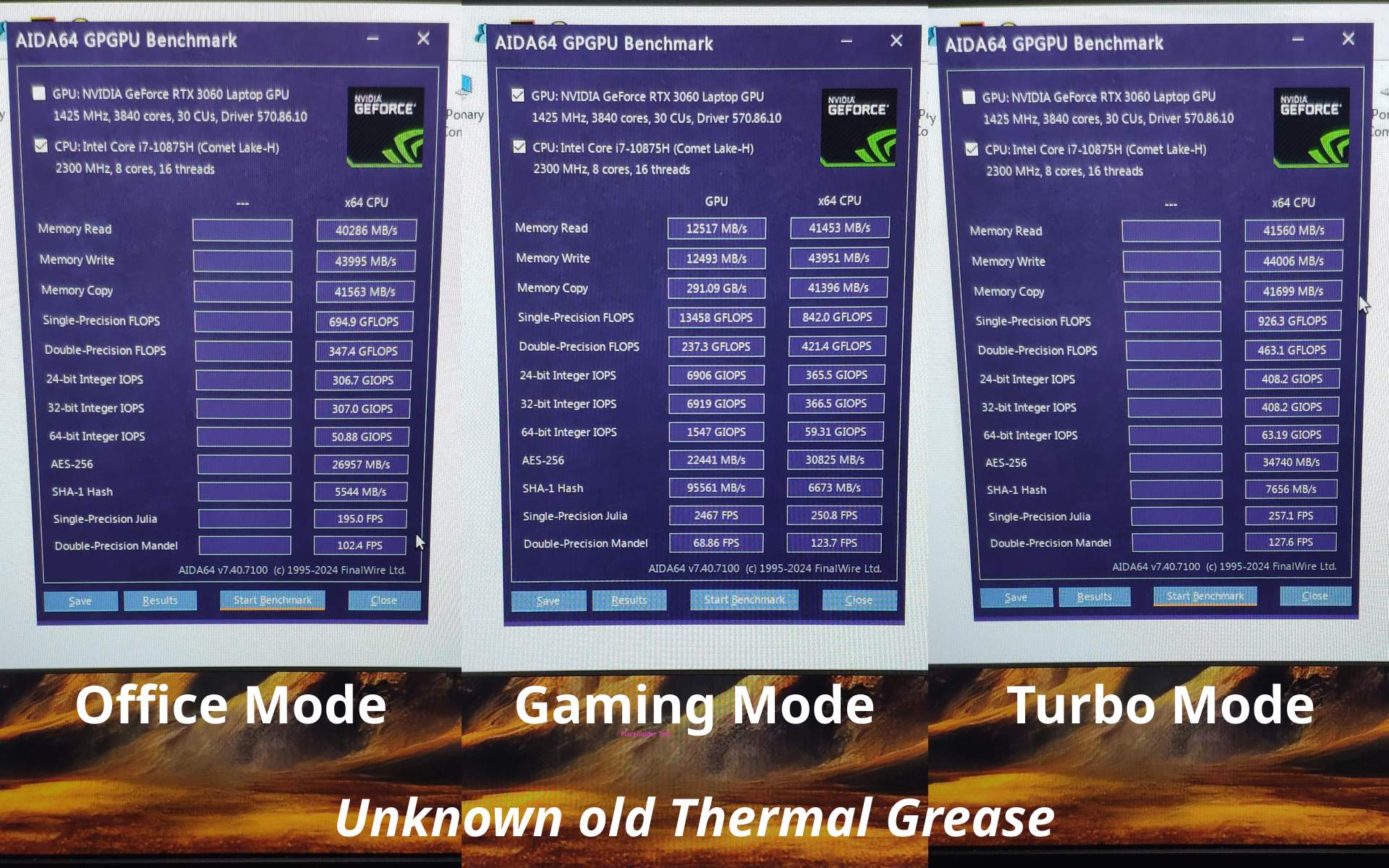 Видеокарта под управлением Linux ограничена по мощности в пределах 80 Вт, в среде Windows до 120 Вт можно увеличить, считается на всю карту включая VRM, потому результаты RTX 3060 не будут сравниваться, ведь даже с очень дешёвой пастой остается всё в районе погрешности так как упор в мощность.