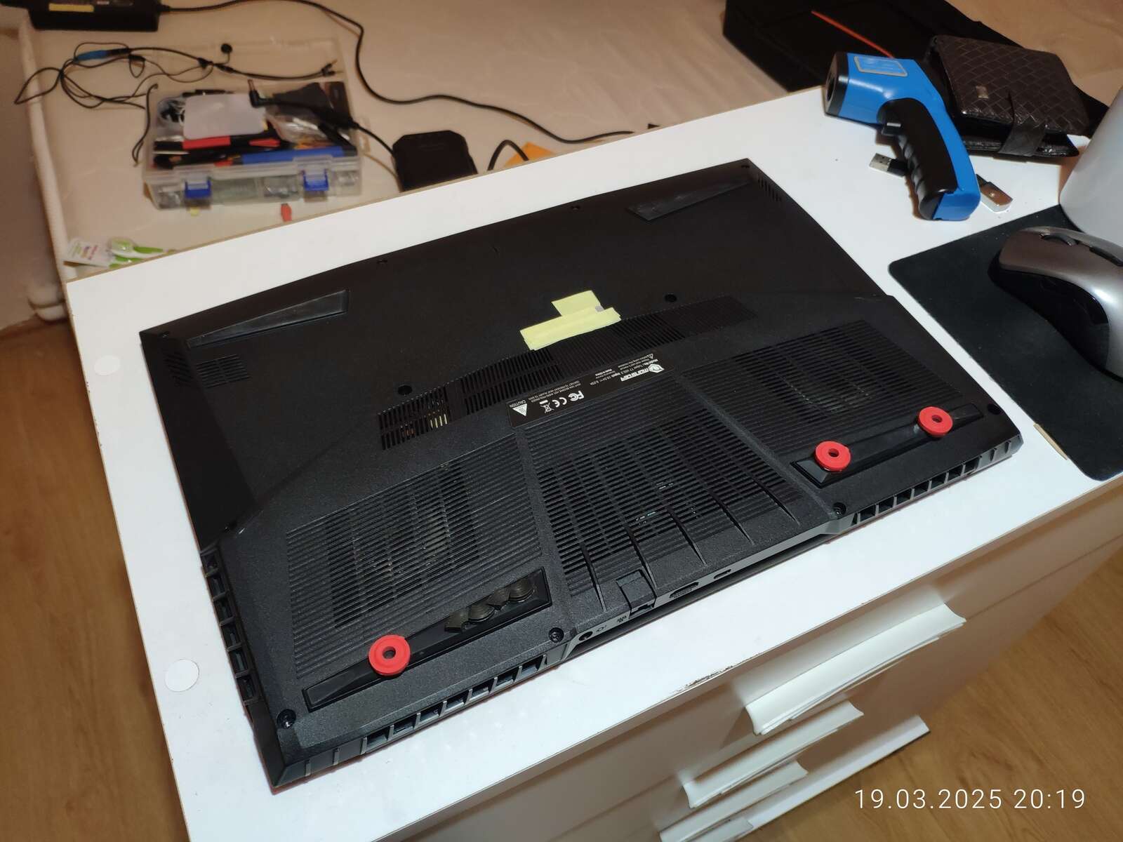 Напомню, ноутбук практически сразу после покупки был установлен на дополнительные прокладки, ибо без прокладок температура ГП была примерно на 10 градусов выше.