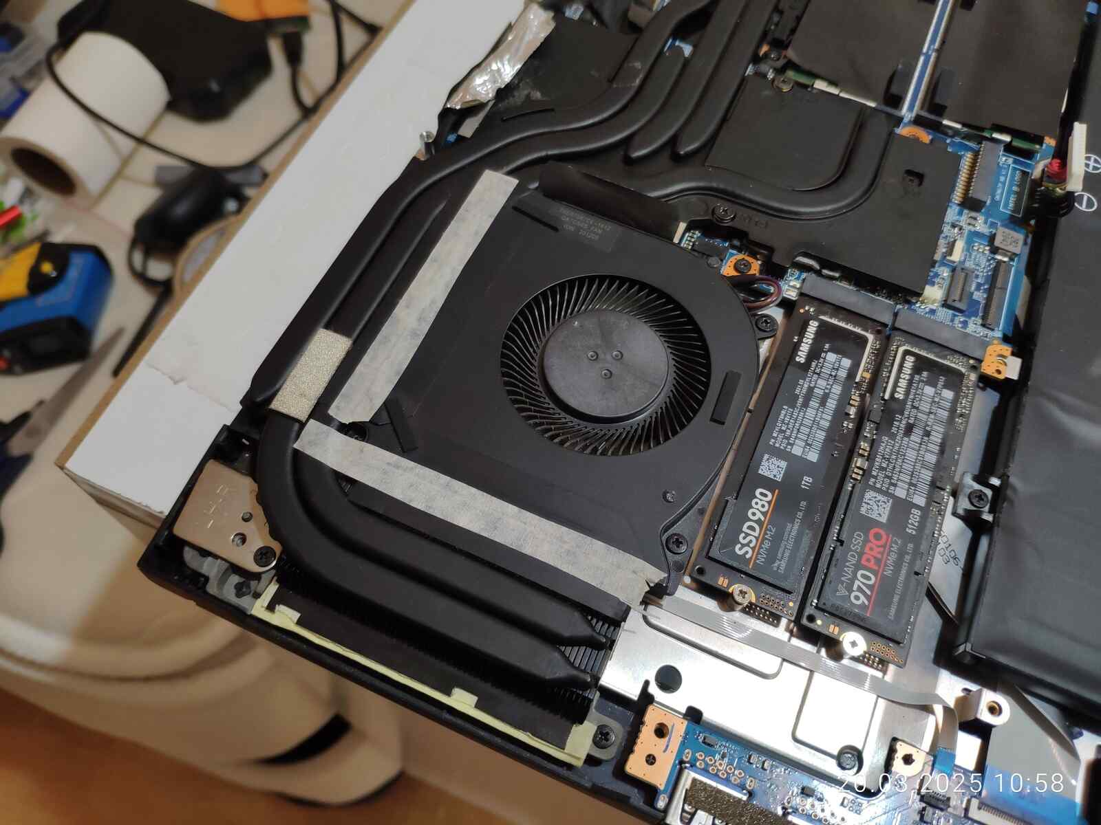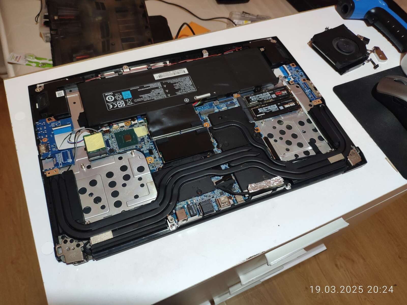 Не забываем отключать аккумулятор, первое правило при любом вмешательстве в ноутбук, даже если оно совсем незначительное, ну и спокойно разбираем систему охлаждения, и да, специально для любителей поворчать за отсутствие скриншотов, удачи зафиксировать разборку ноутбука скриншотами, хотя я могу даже так, просто сделать скриншоты фотографий...