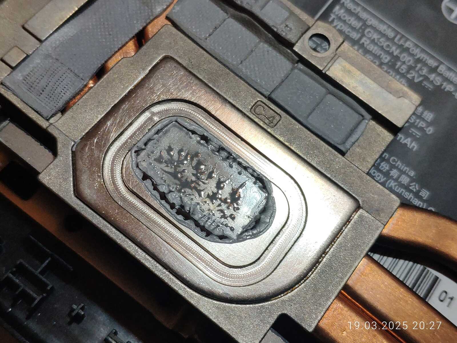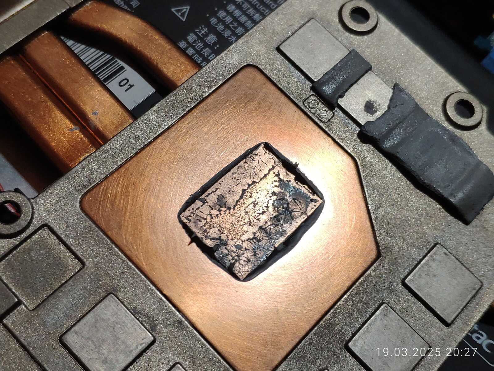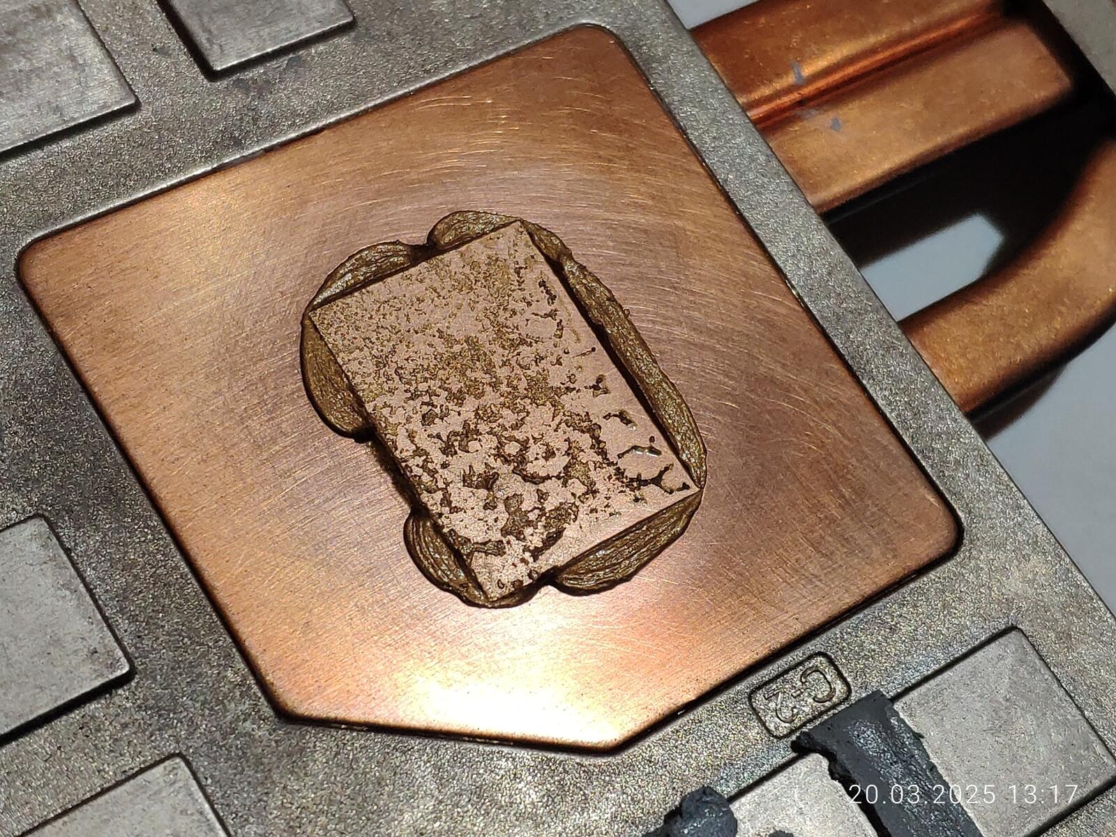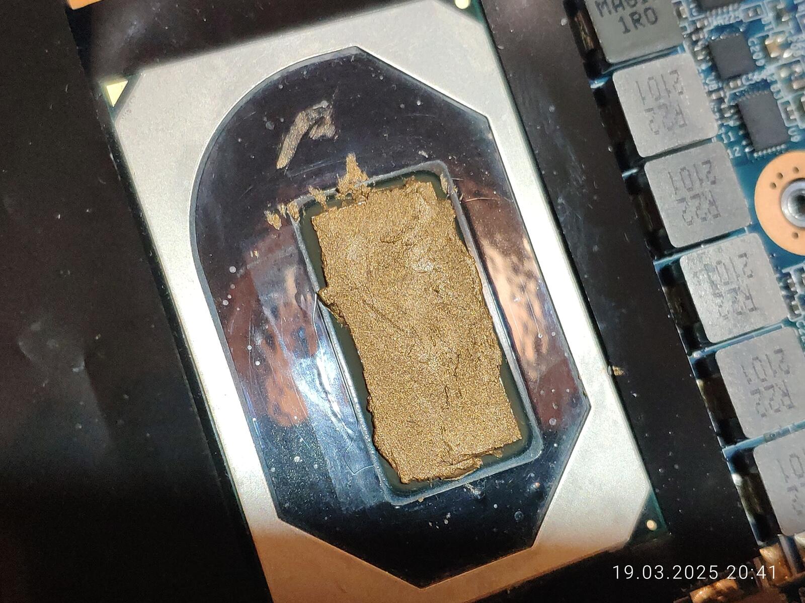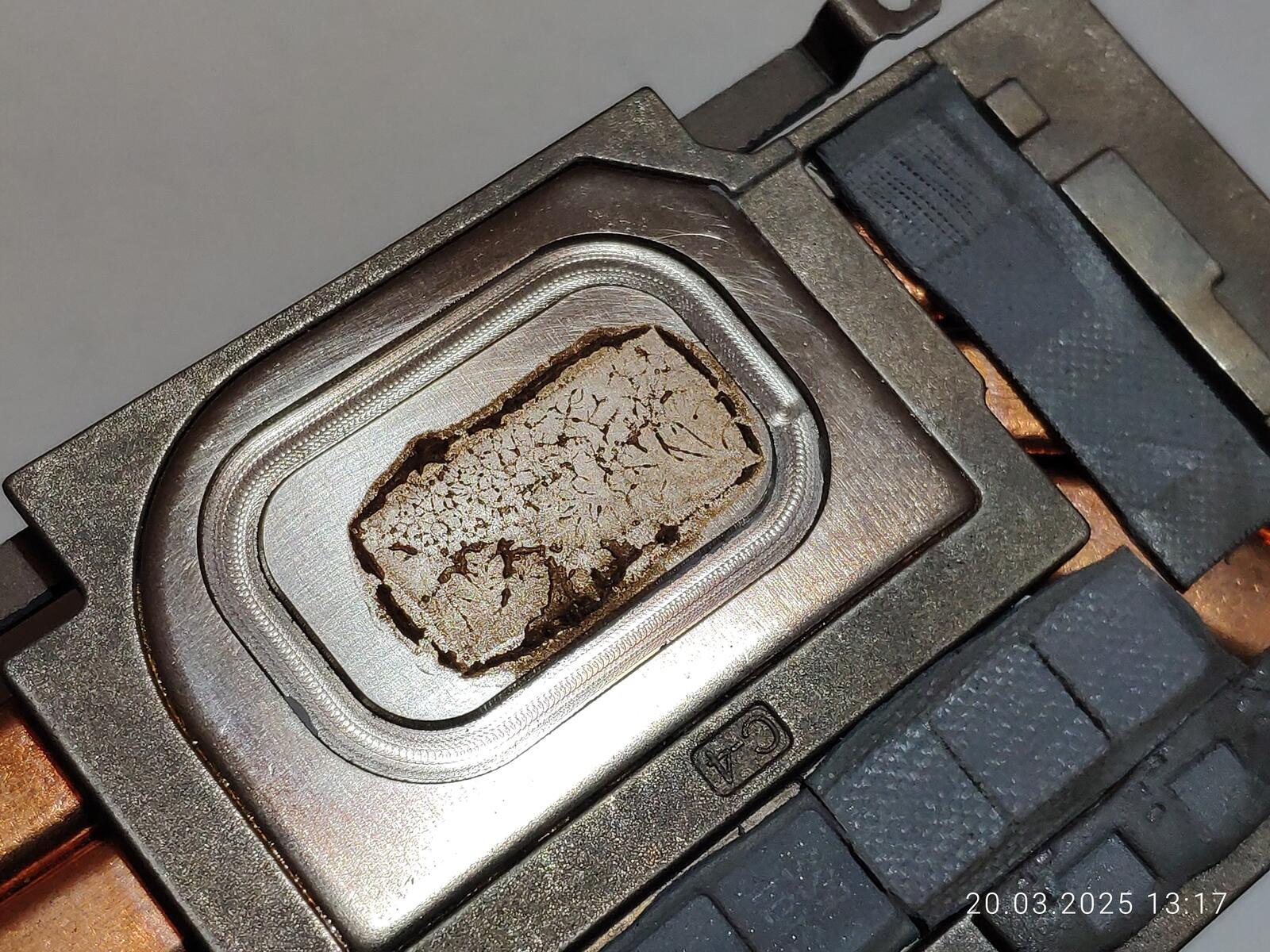 Изначально думал что проблема в самой пасте, когда в прошлый раз разбирал и осматривал, но судя по всему не в пасте дело, но в чём именно непонятно, такое ощущение, что паста на процессоре просто сварилась и разделилась на компоненты.