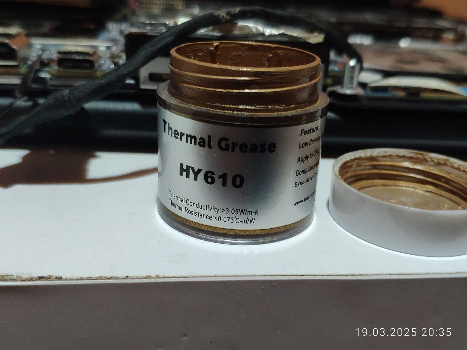 Ладно, достаём баночку китайской пасты HY610, именно её намажу в первую очередь, чисто ради интереса.