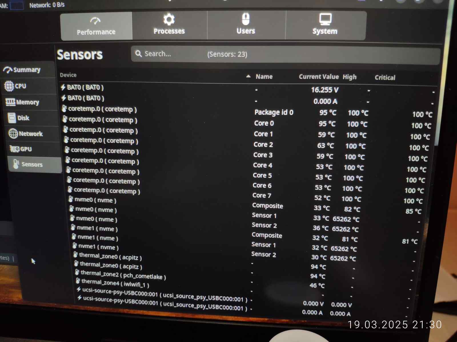 Да, в среде Linux не изменяется лимит мощности видеокарты при переключении режимов, с одной стороны это минус, ведь всегда 80 Вт на ГП лимит, но с другой стороны позволяет получать умеренную производительность при ограниченном энергопотреблении ЦП, при этом уровень шума минимальный, хотя и температуры на уровне 83 градусов...