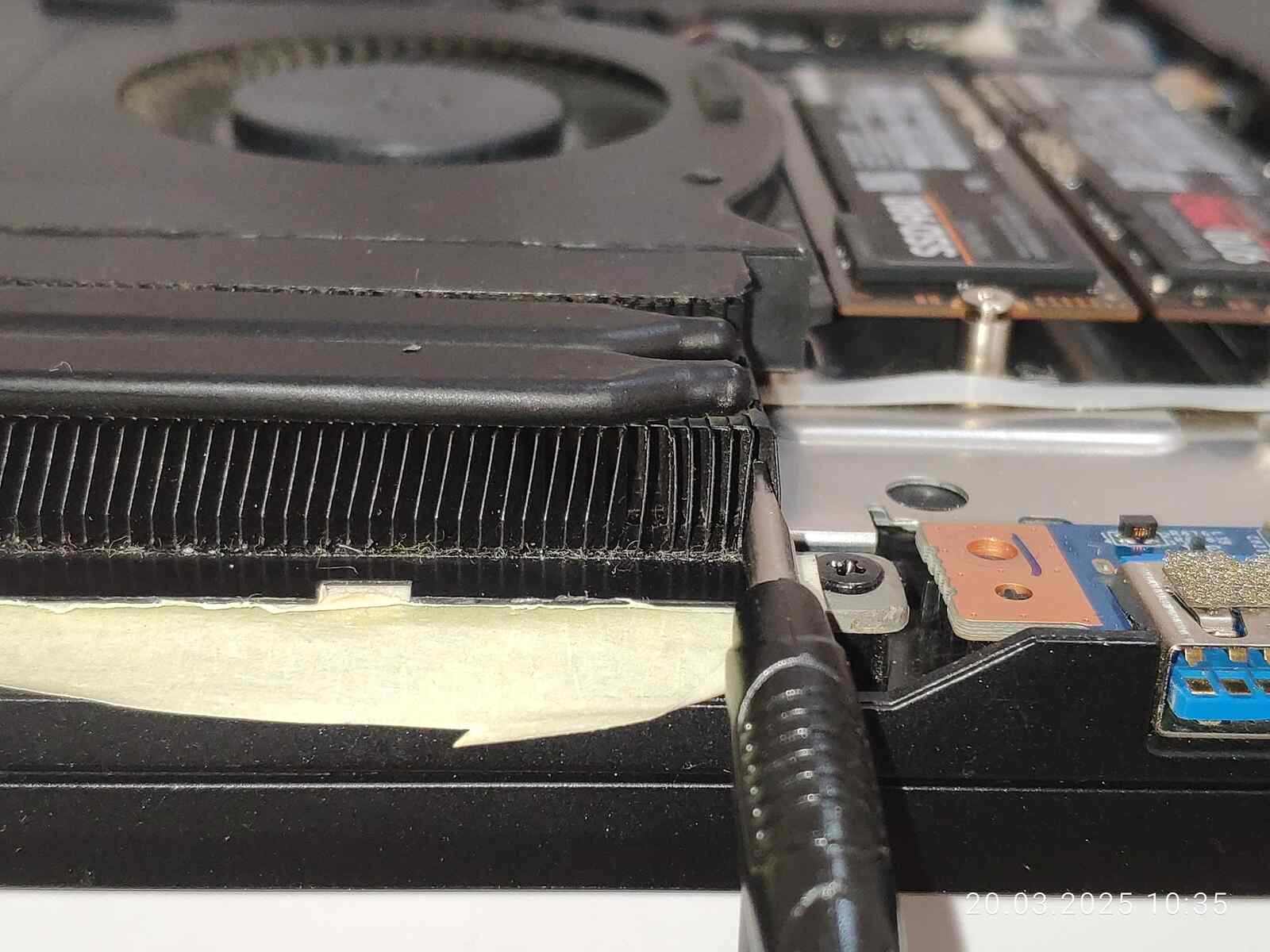 У меня есть конечно неплохая идея проверенная на старом MSI CX500, так же страдавший одно время от высоких температур, состоит она в вырезании рёбер перед радиаторами, это позволит значительно увеличить воздушный поток за счёт исчезновения лишних преград.