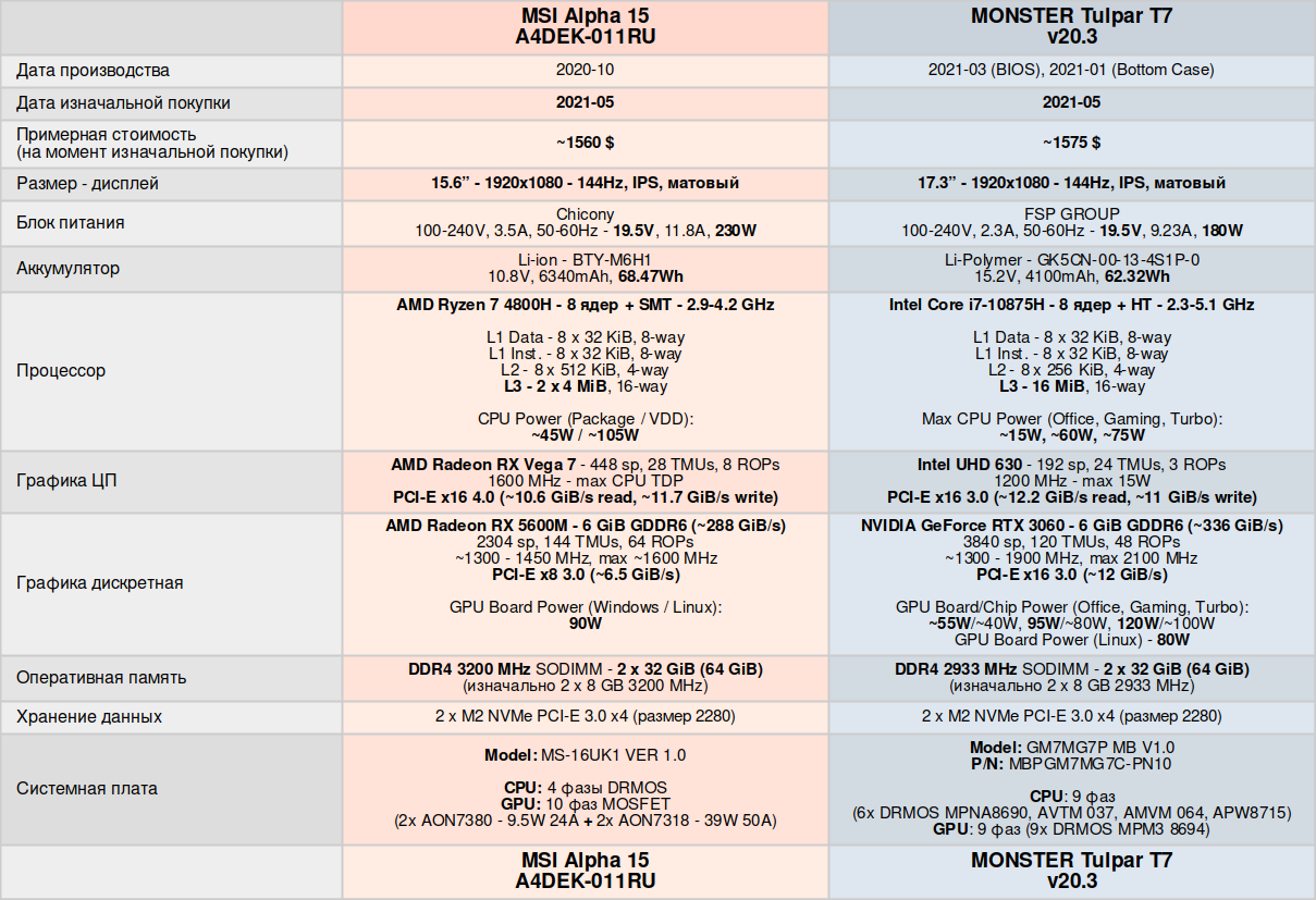 Ну да ладно, вернёмся к "новому" ноутбуку, по сути MONSTER Tulpar T7 одногодка с MSI Alpha 15, даже куплены были оба в 5 месяце 2021 года, и стоили практически одинаково, при этом MONSTER хоть и не всем известный бренд, но качество изготовления на голову выше чем у MSI, даже пятки системы охлаждения дорабатывать не пришлось, ибо изначально обработка на высшем уровне, вот тут есть разборка и сравнение если кому интересно.